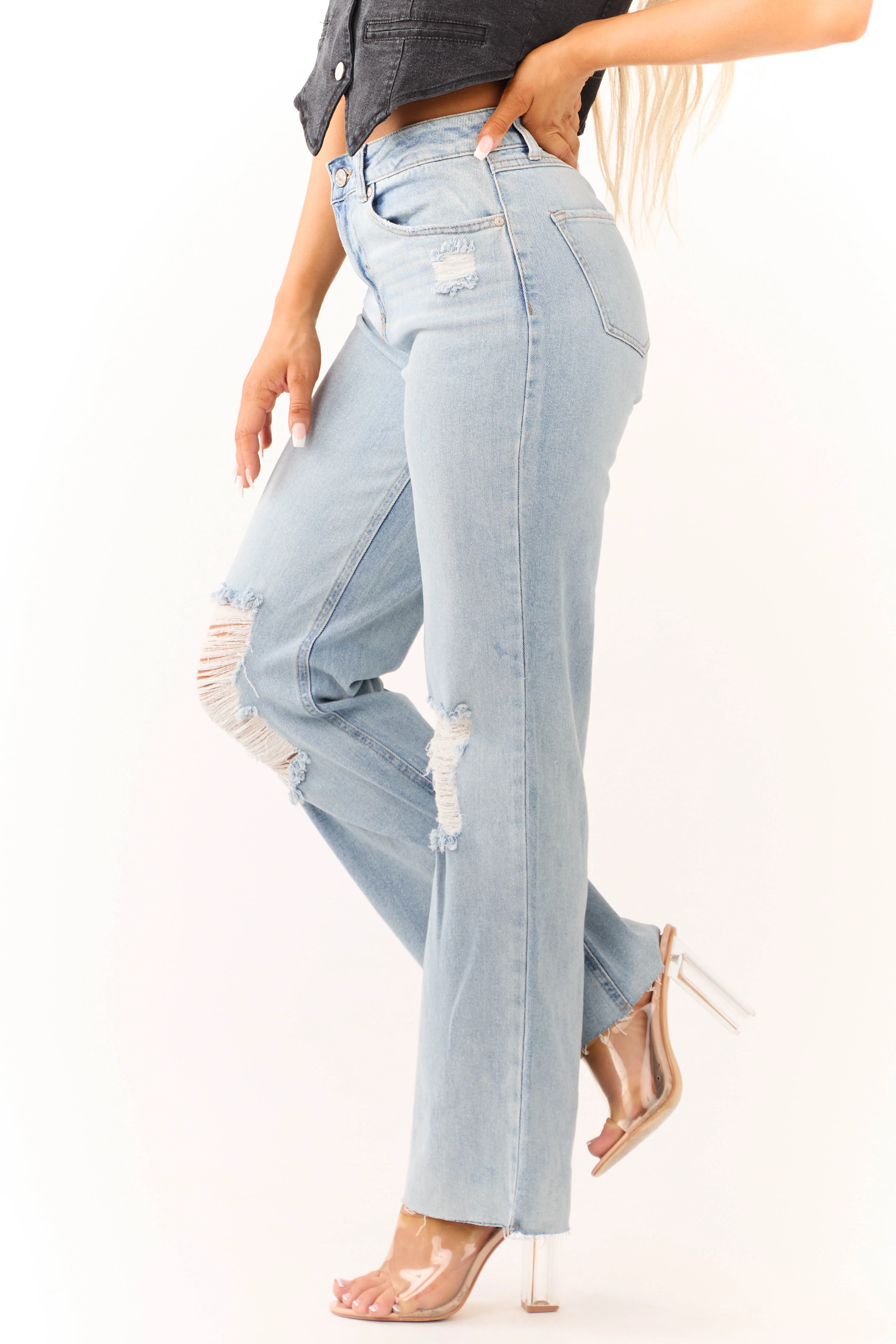 Judy Blue Light Wash Distressed 90's Straight Jeans