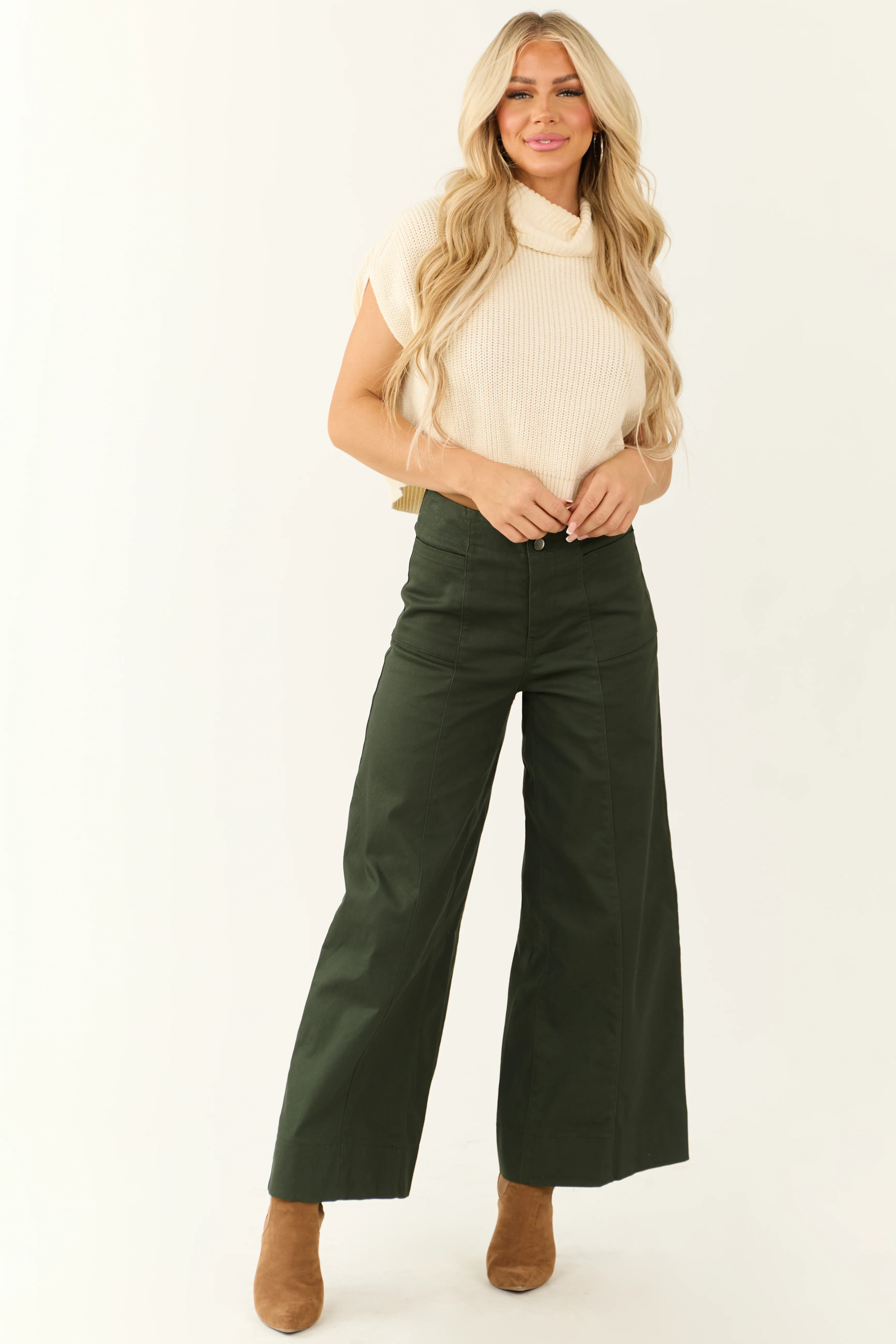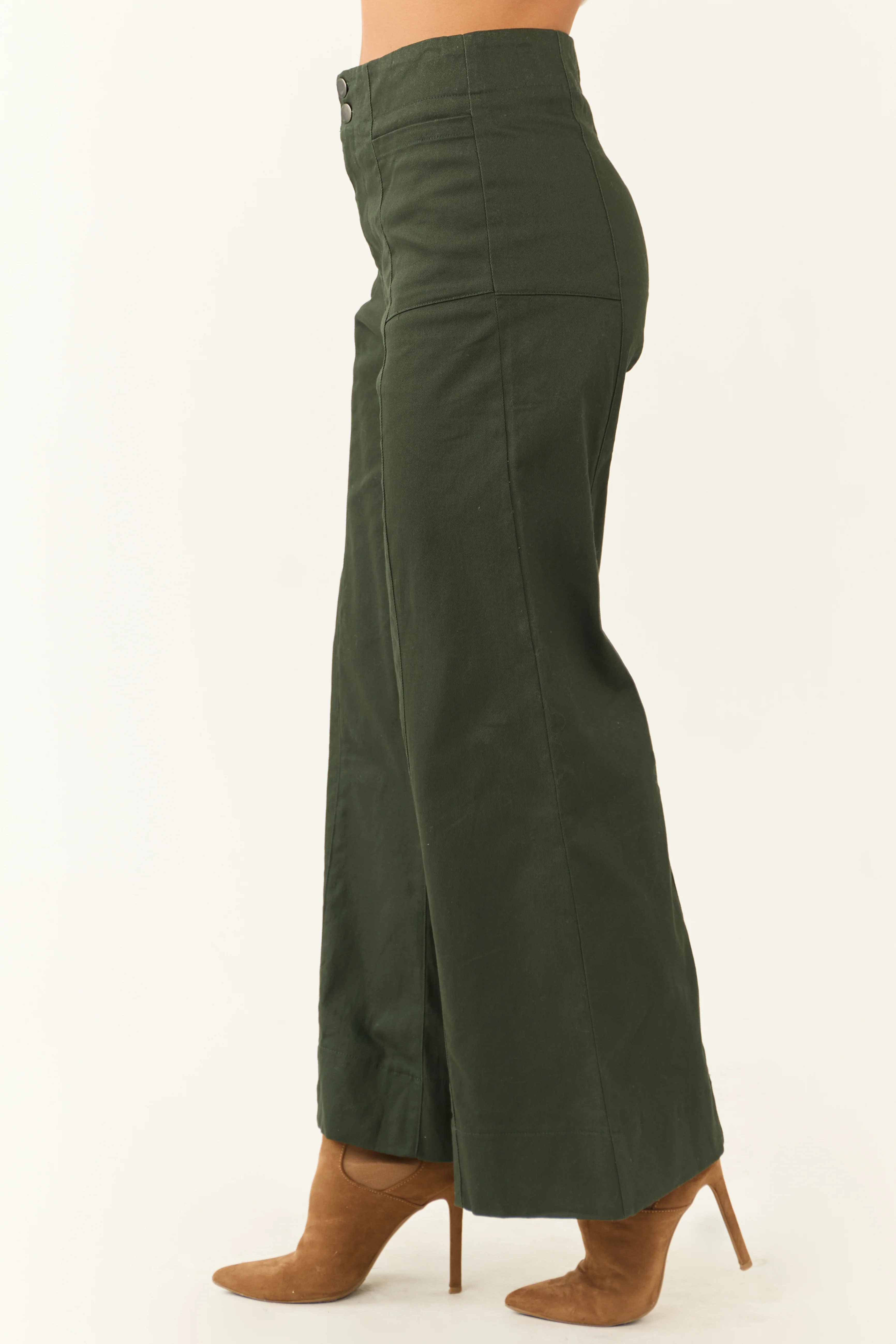 Deep Pine High Rise Wide Leg Ankle Length Pants