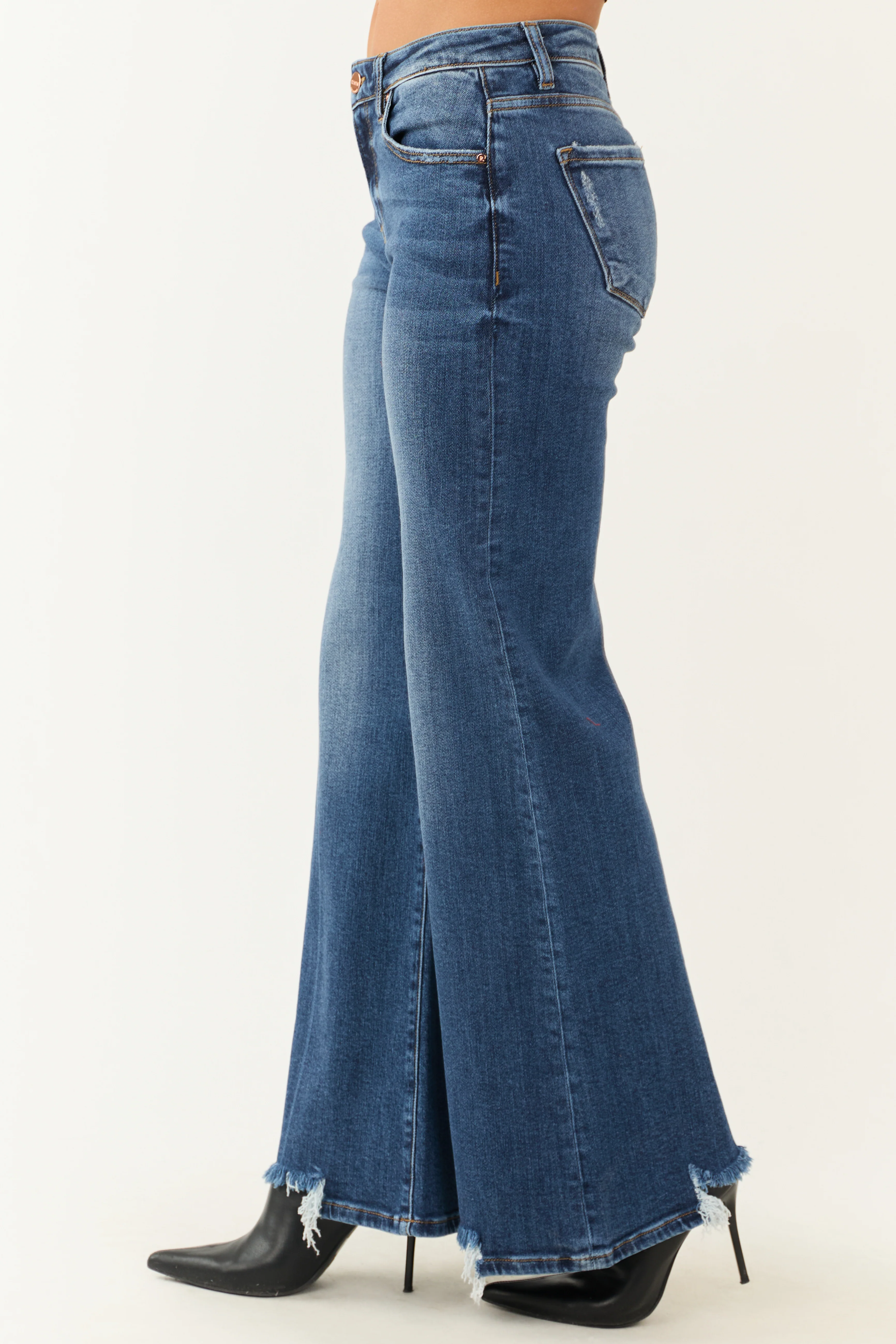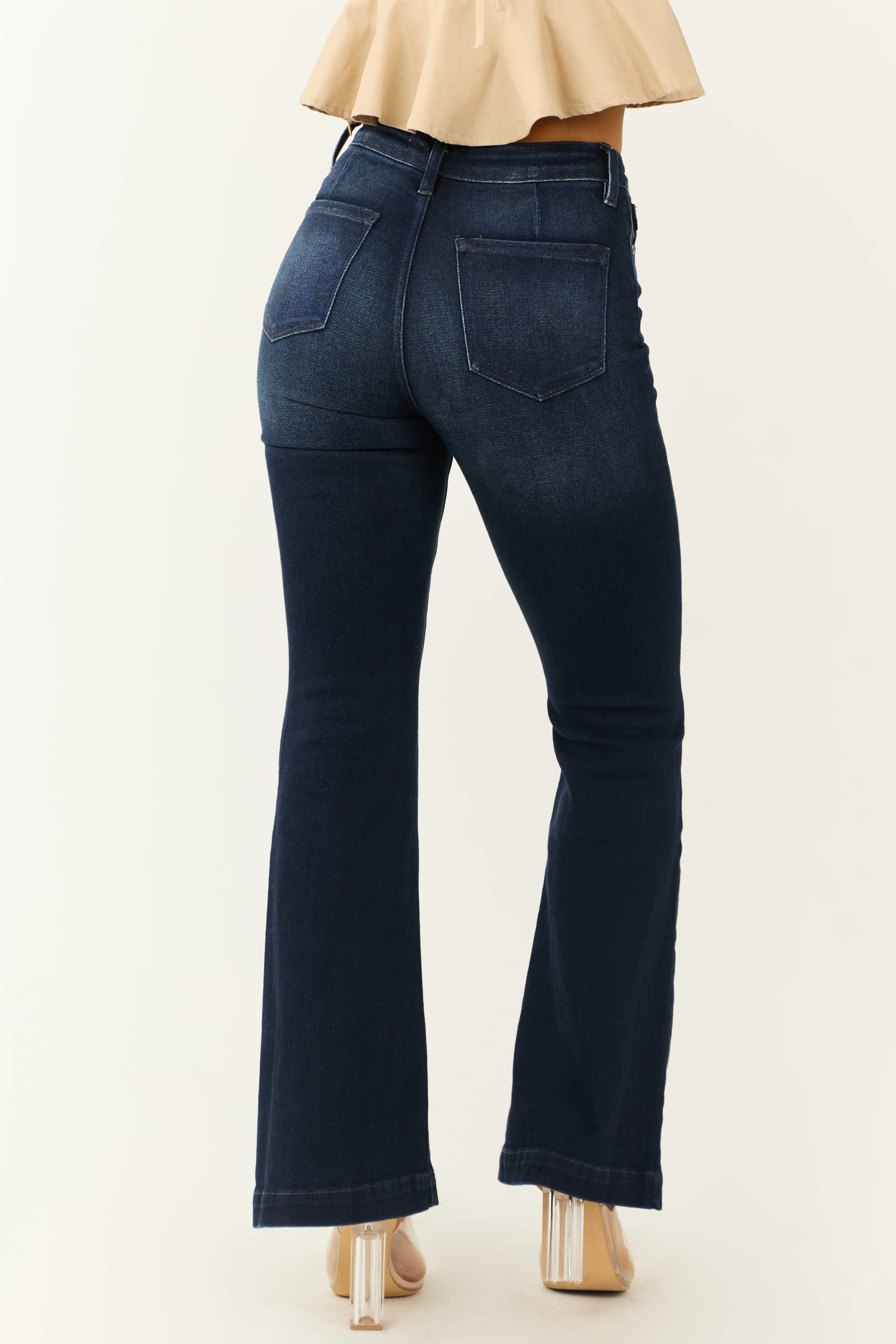 Risen Dark Wash High Rise Wide Flare Leg Jeans