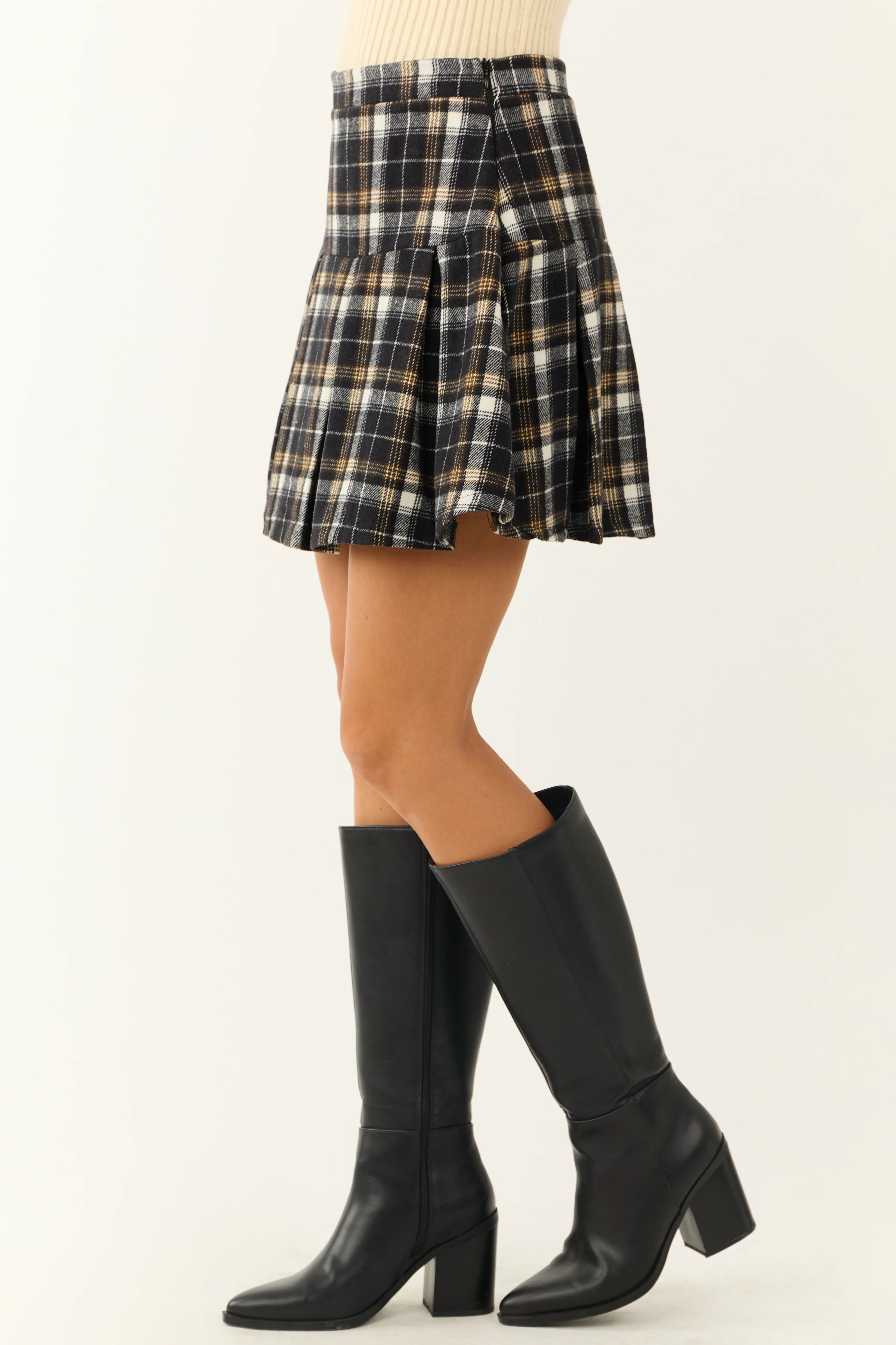 Taupe Plaid Double Buckle Pleated Mini Skirt