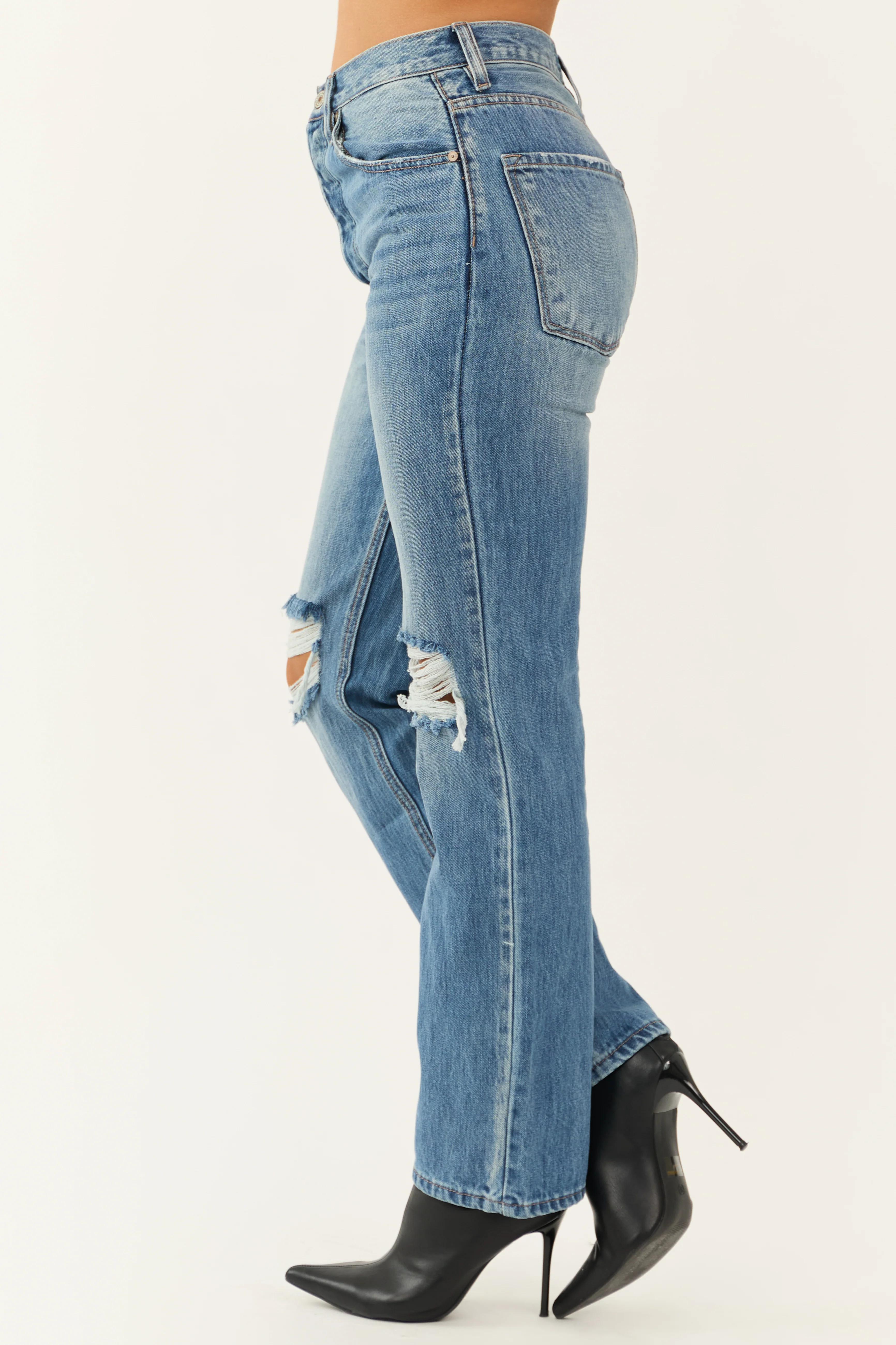 KanCan Medium Wash Distressed 90's Straight Leg Jeans