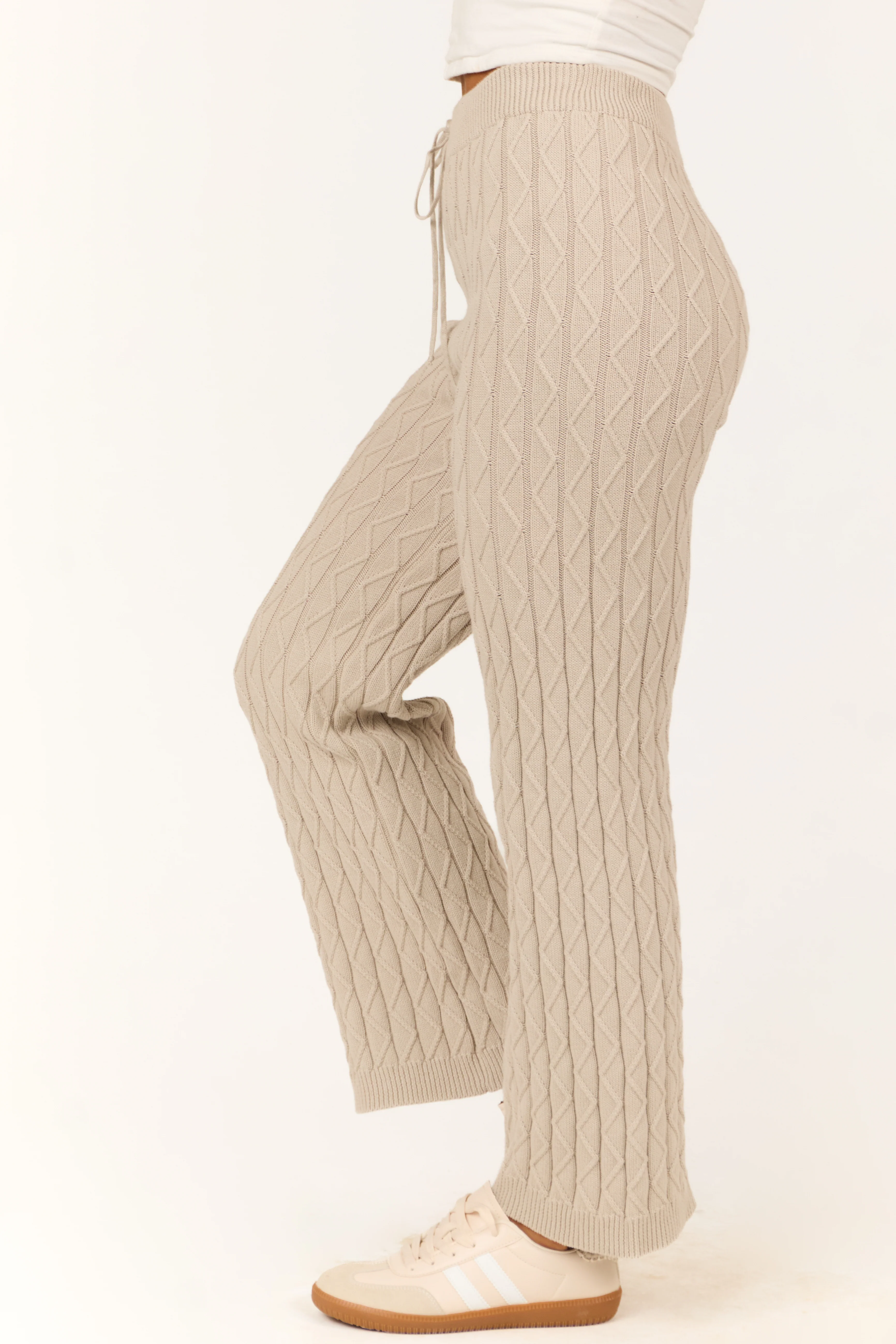 Pewter Grey Zig Zag Knit Drawstring Loose Pants