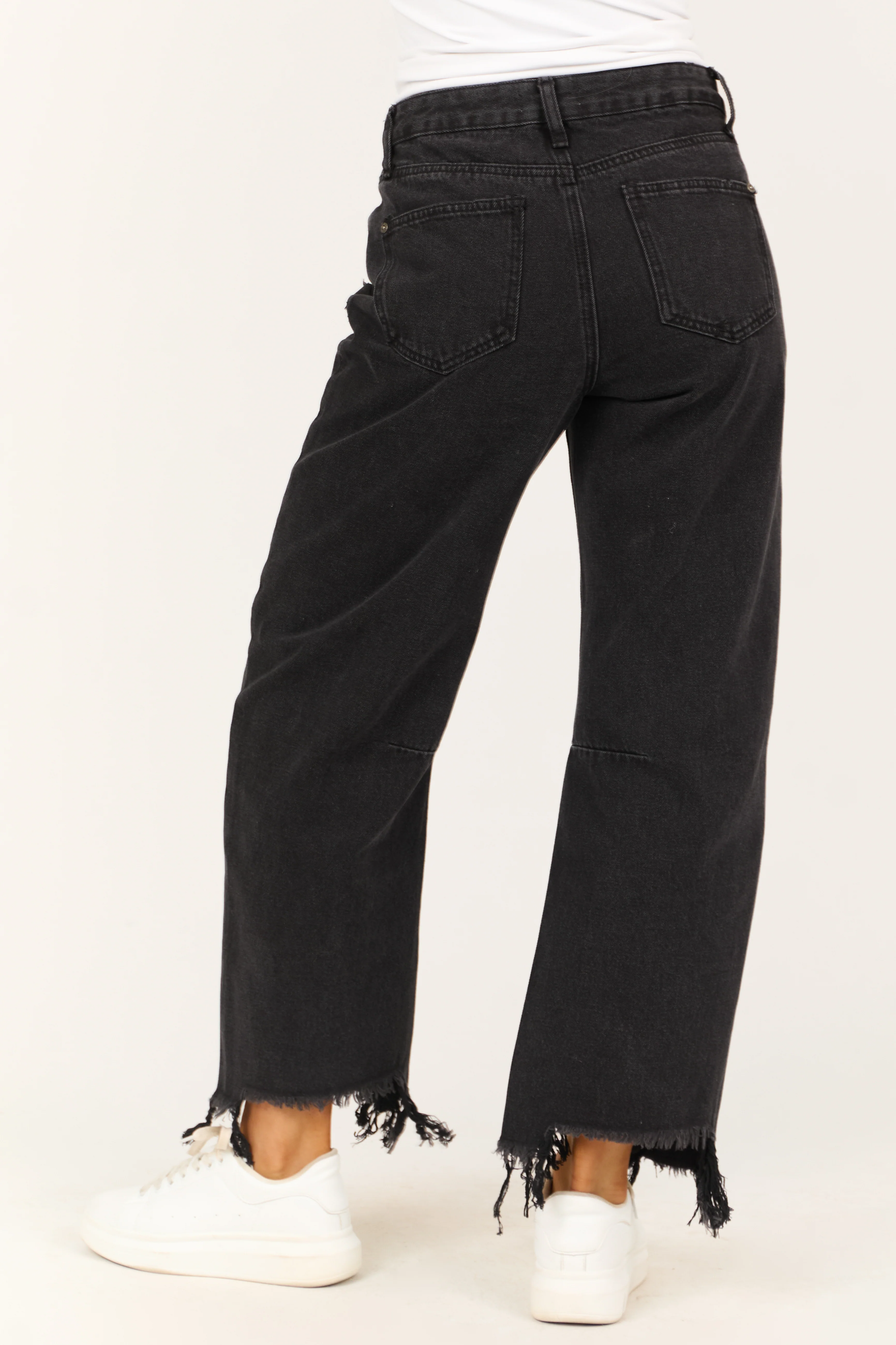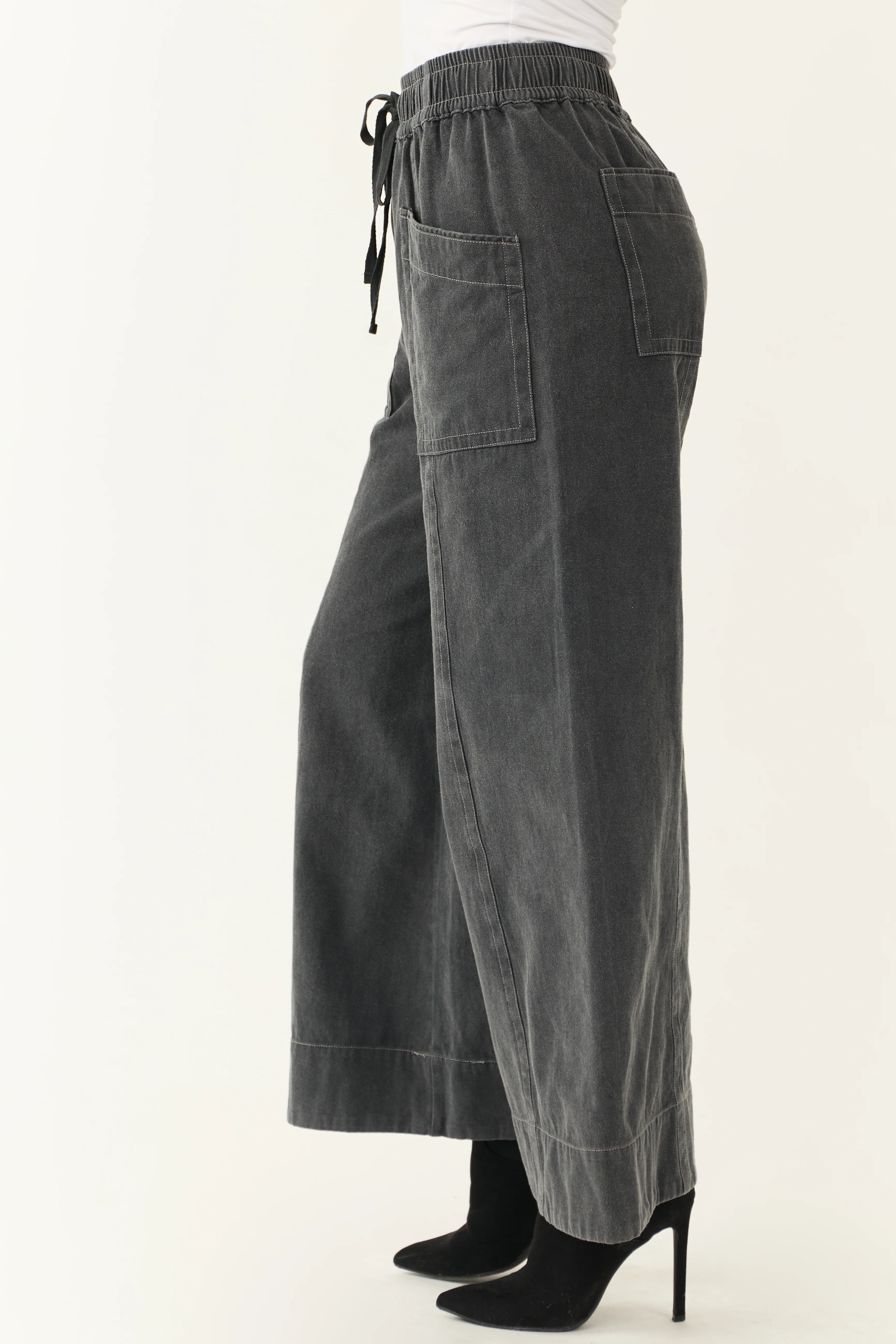 Charcoal Mineral Wash Elastic Waist Wide Leg Pants
