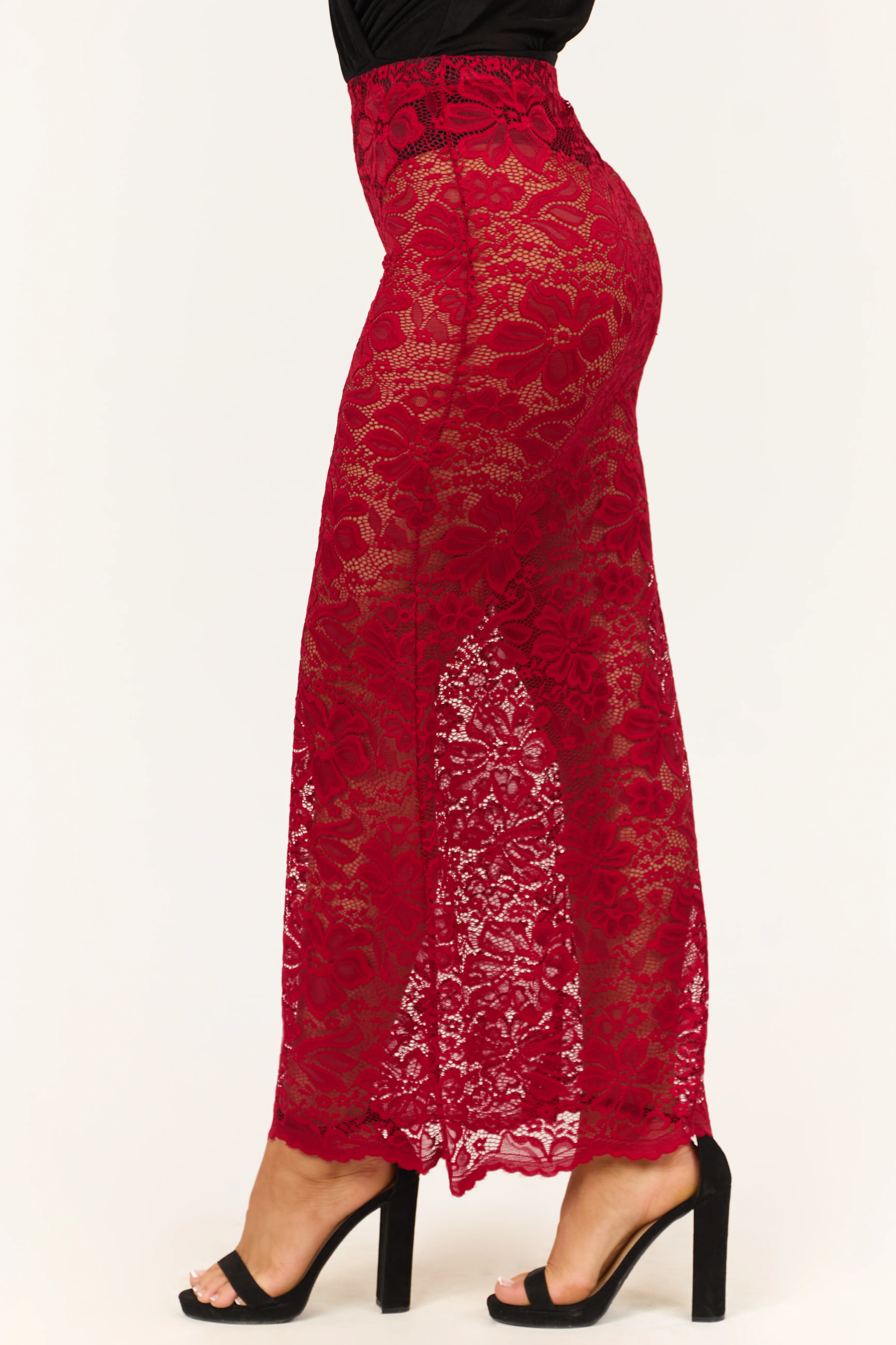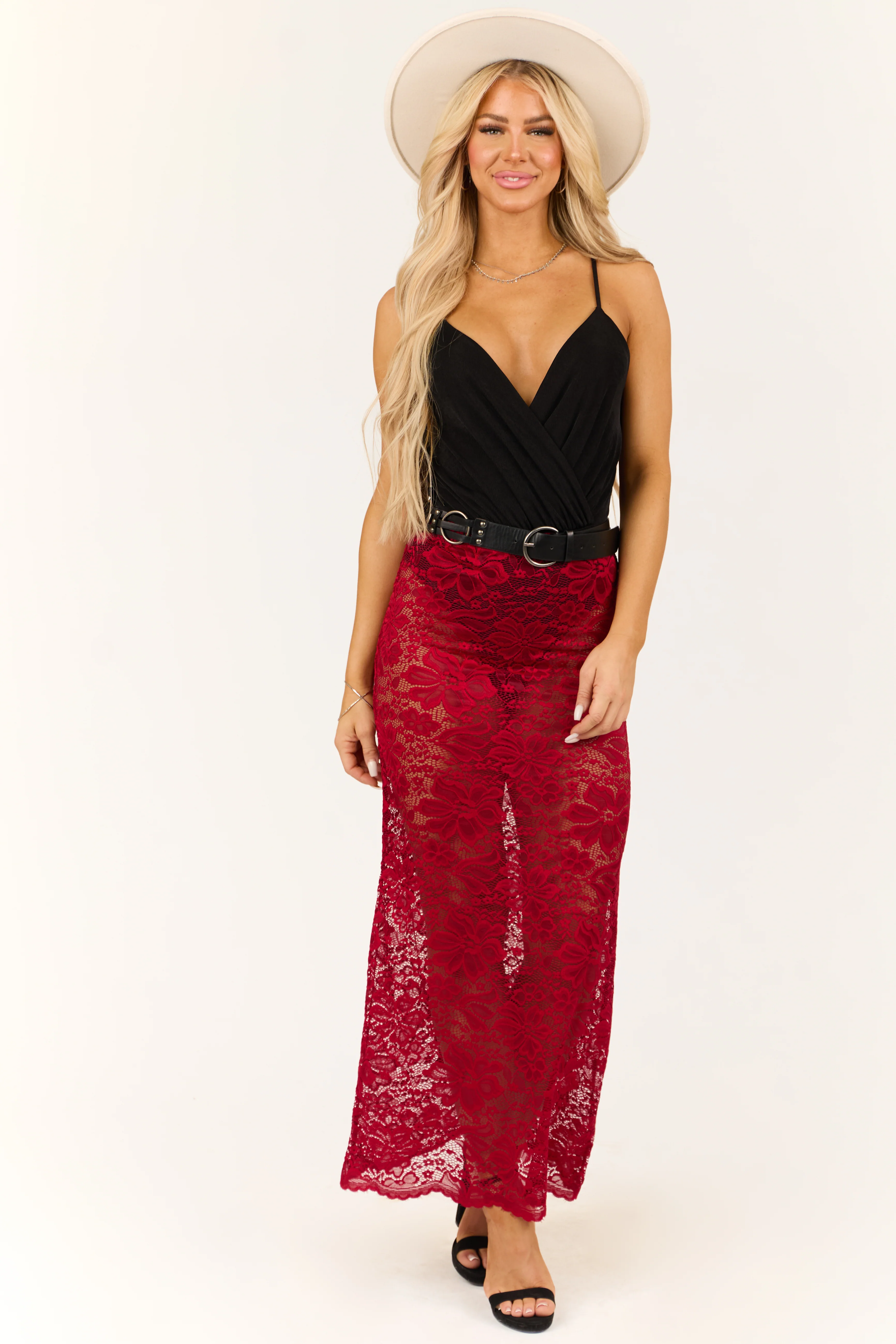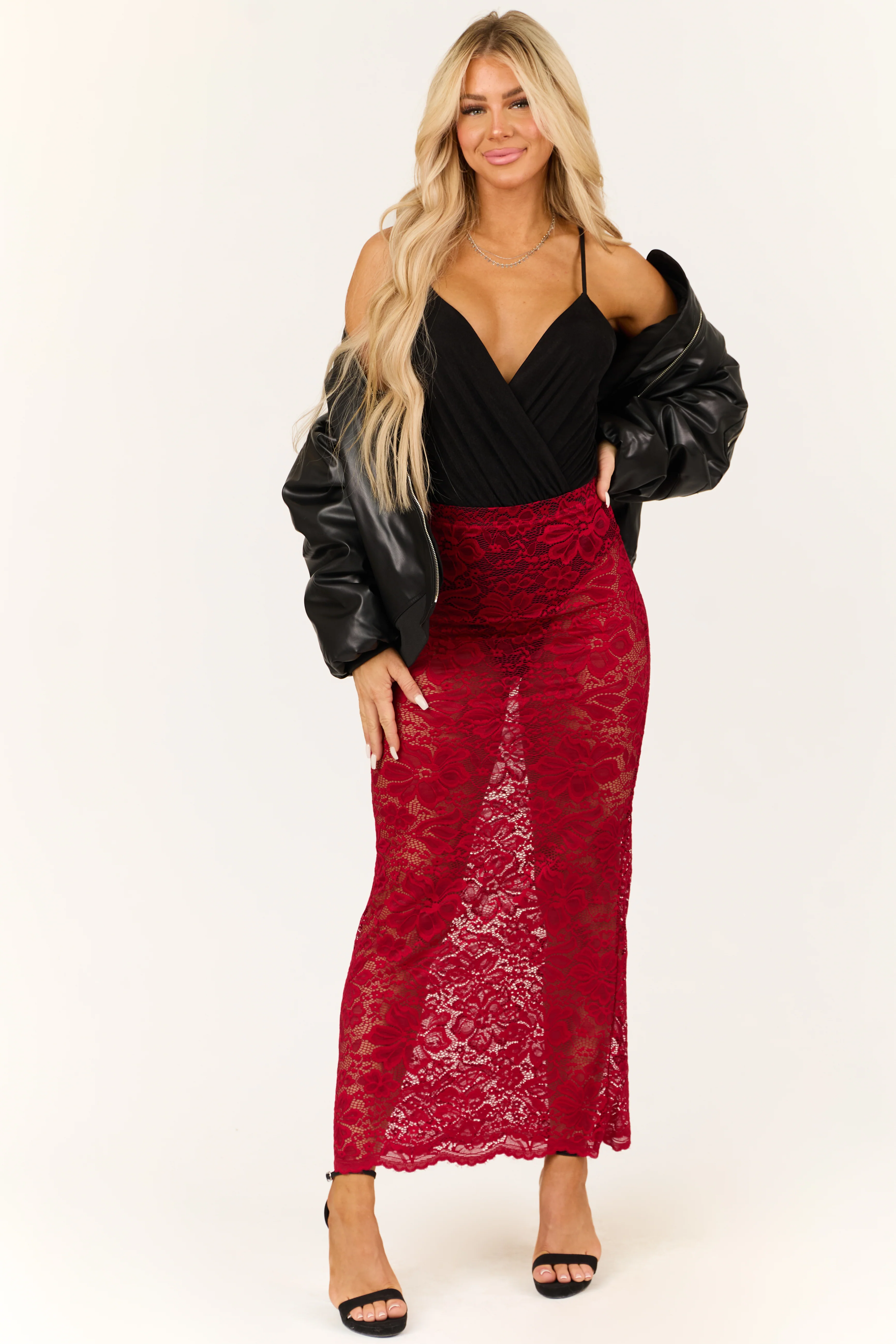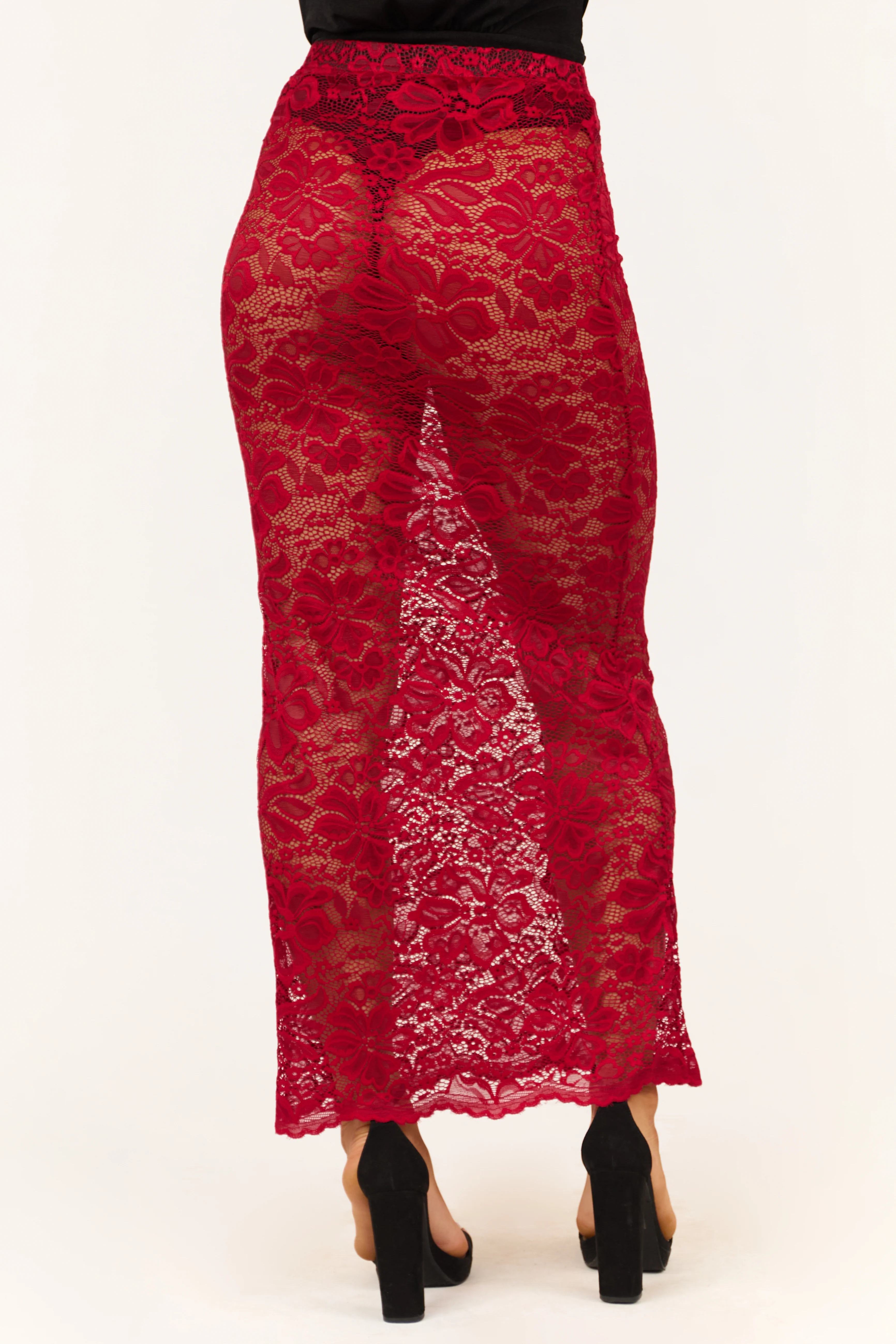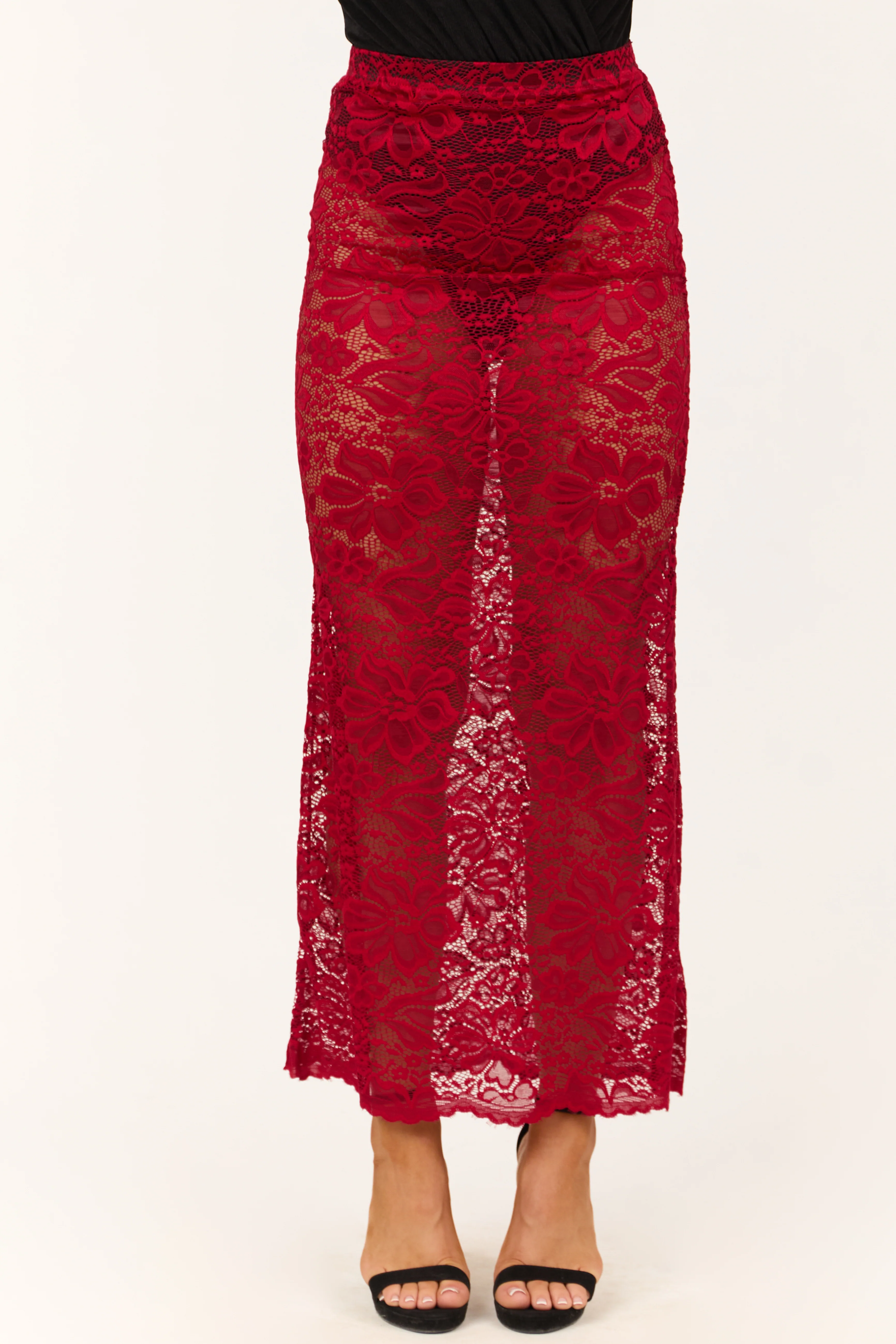 Cherry Sheer Floral Lace Slight Flare Maxi Skirt