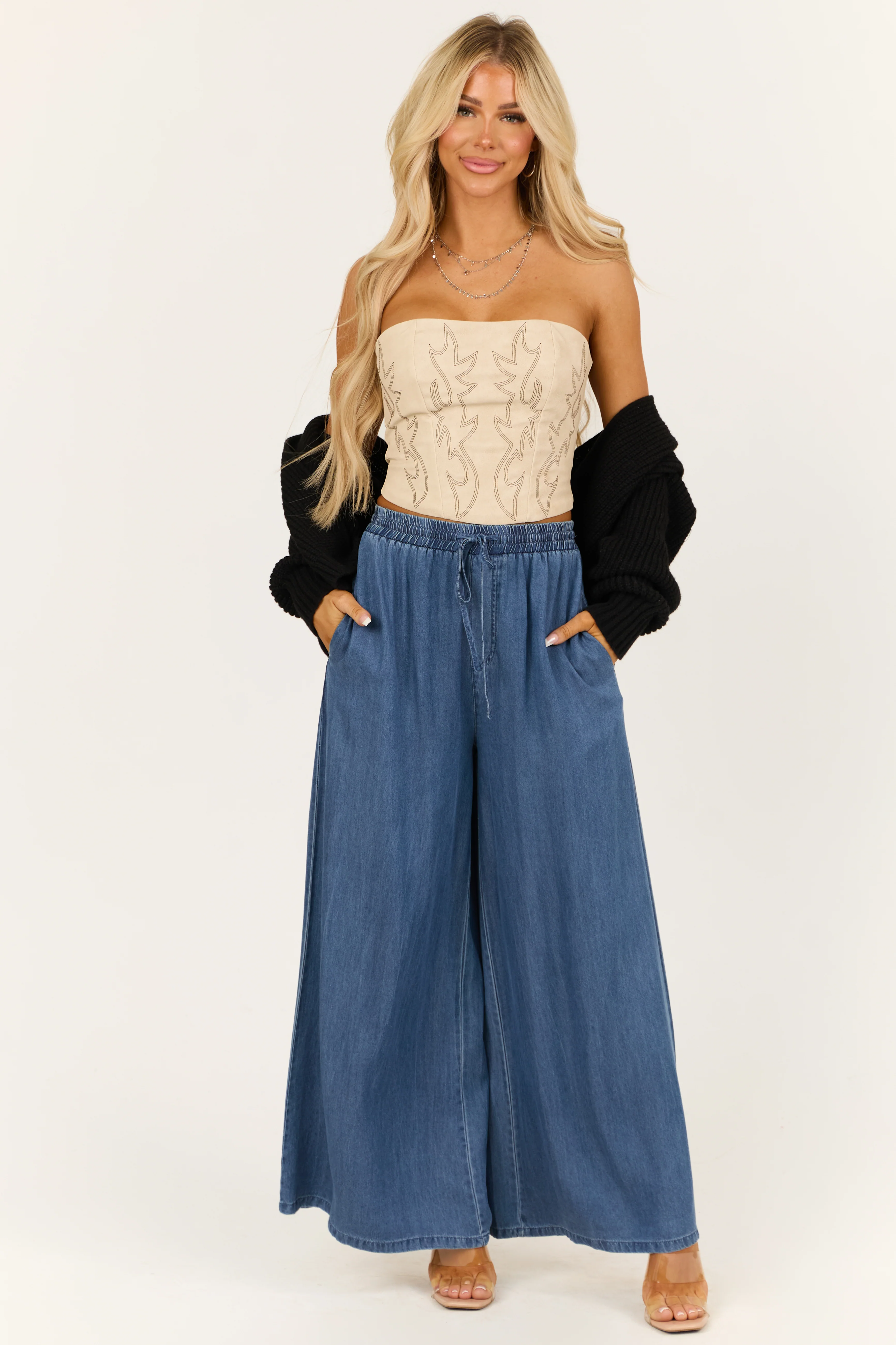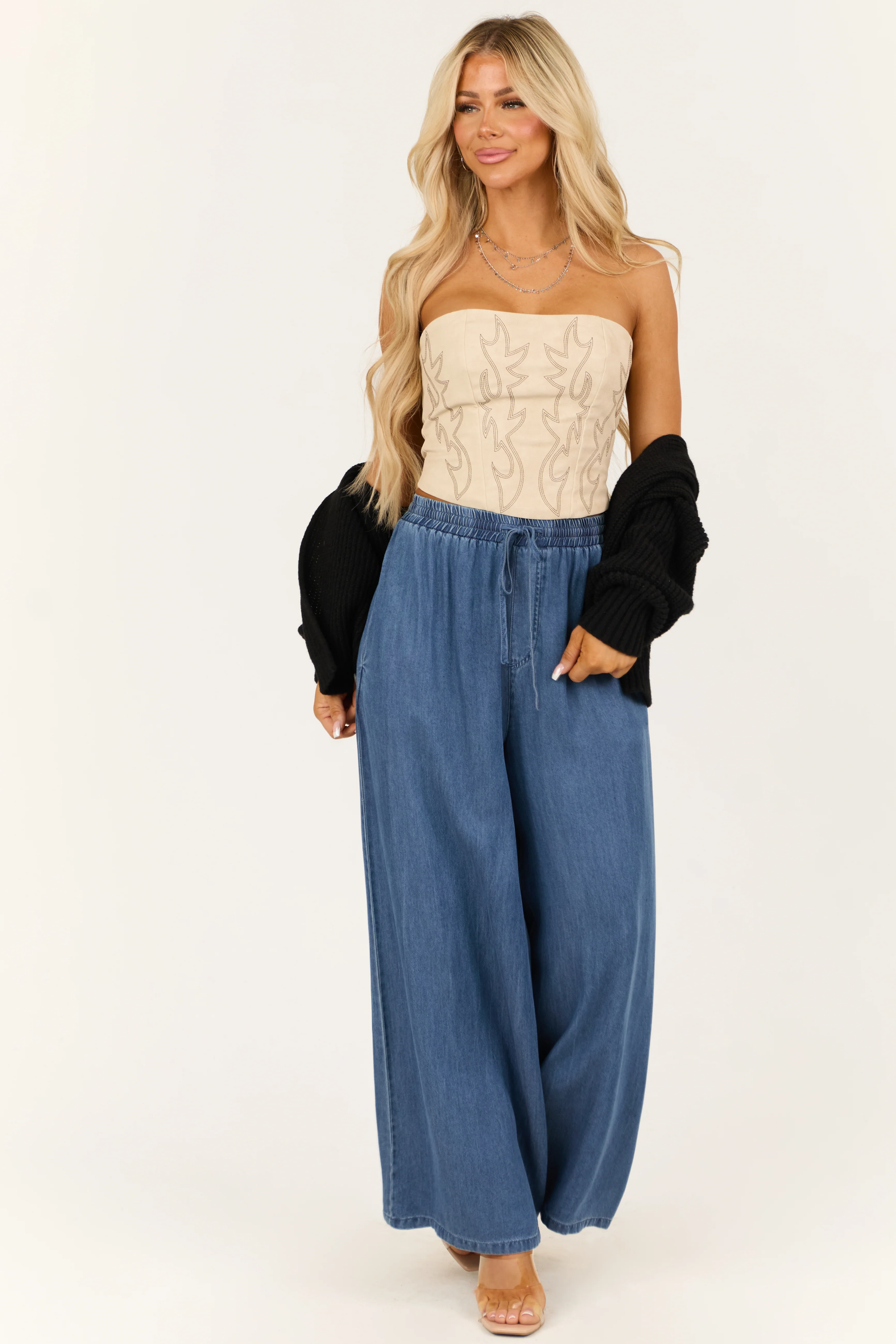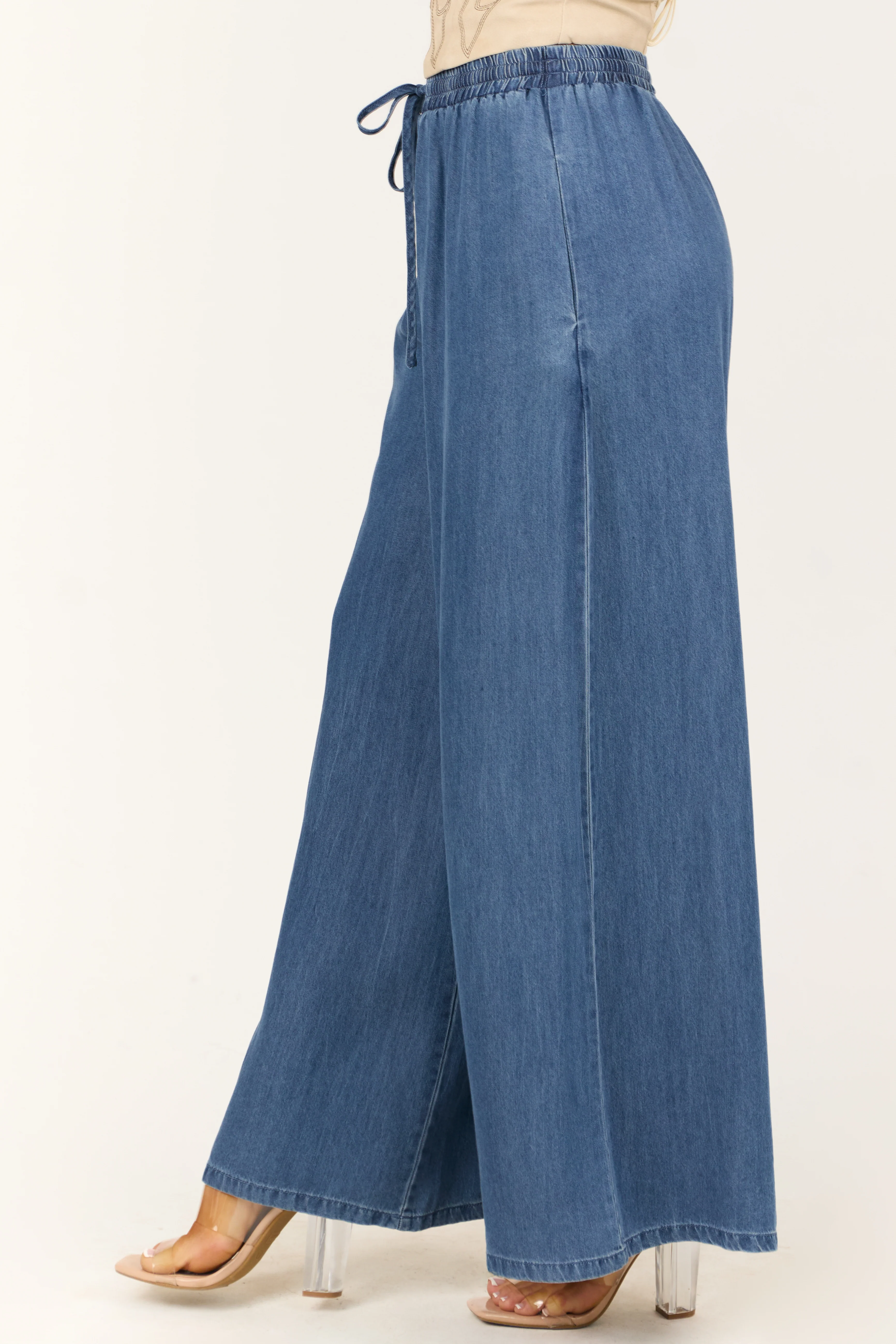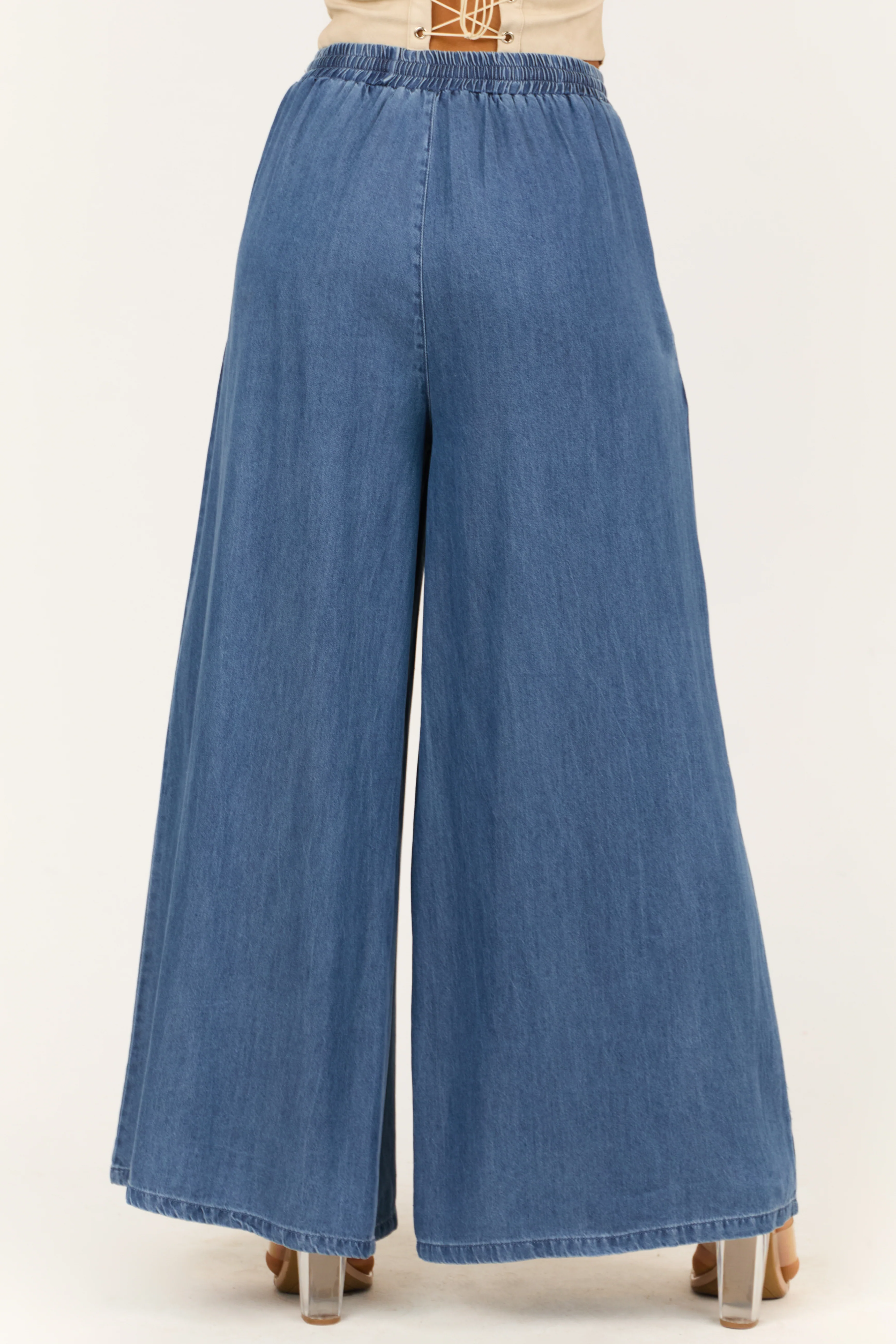Dark Wash Tencel Denim High Rise Wide Leg Pants