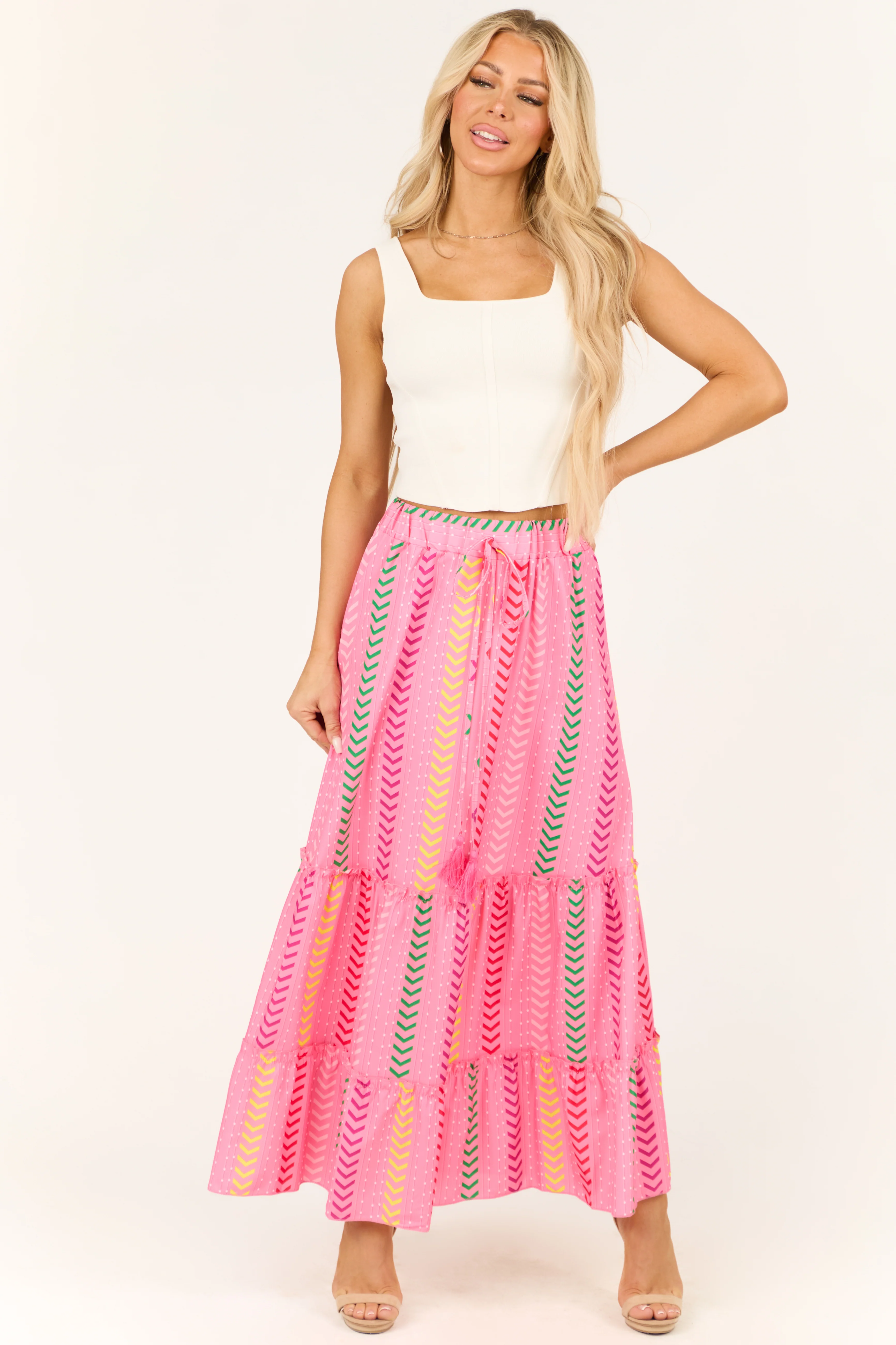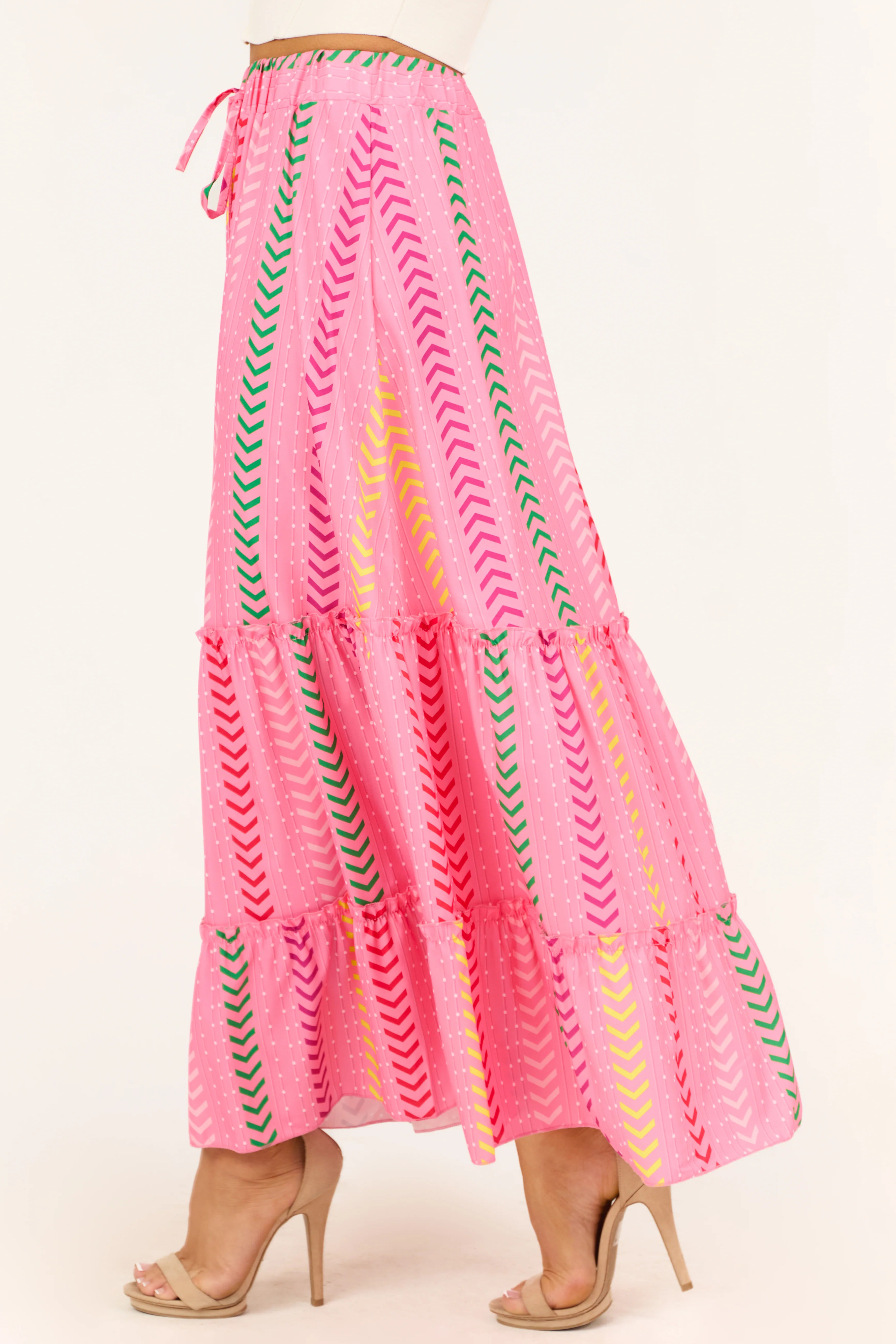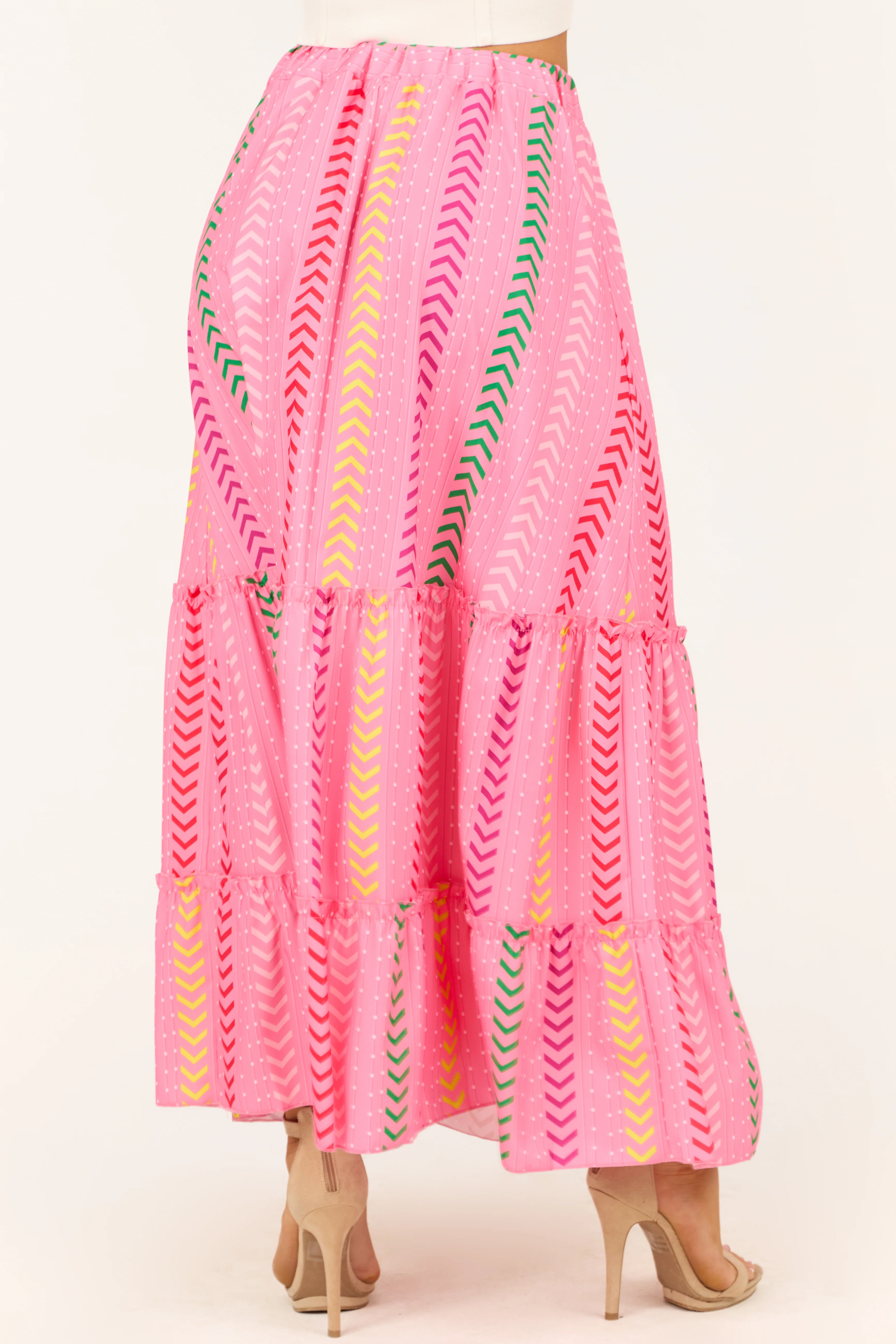 Bubblegum Chevron Print Ruffle Tiered Maxi Skirt