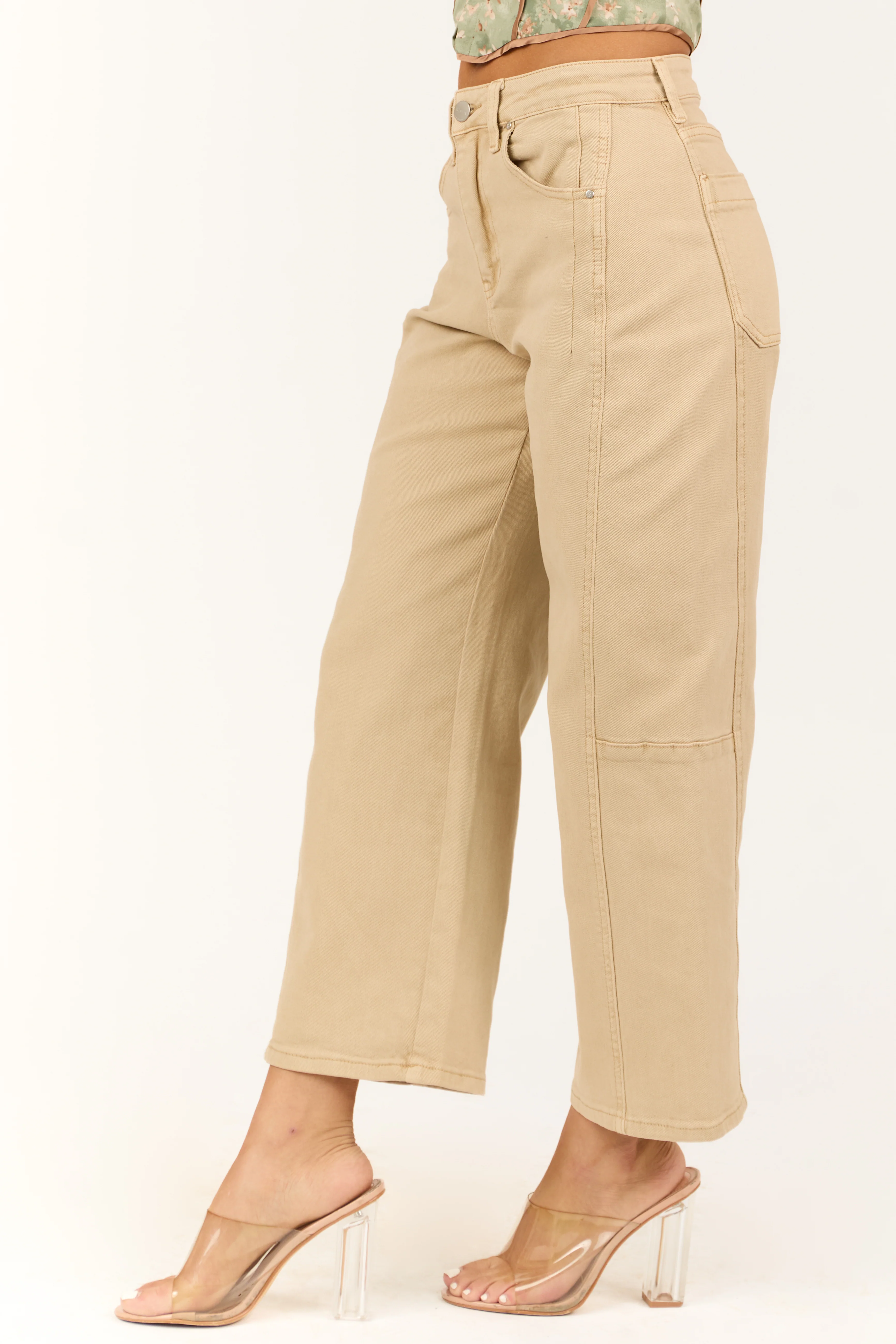 Risen Sand Wide Leg High Rise Cropped Jeans