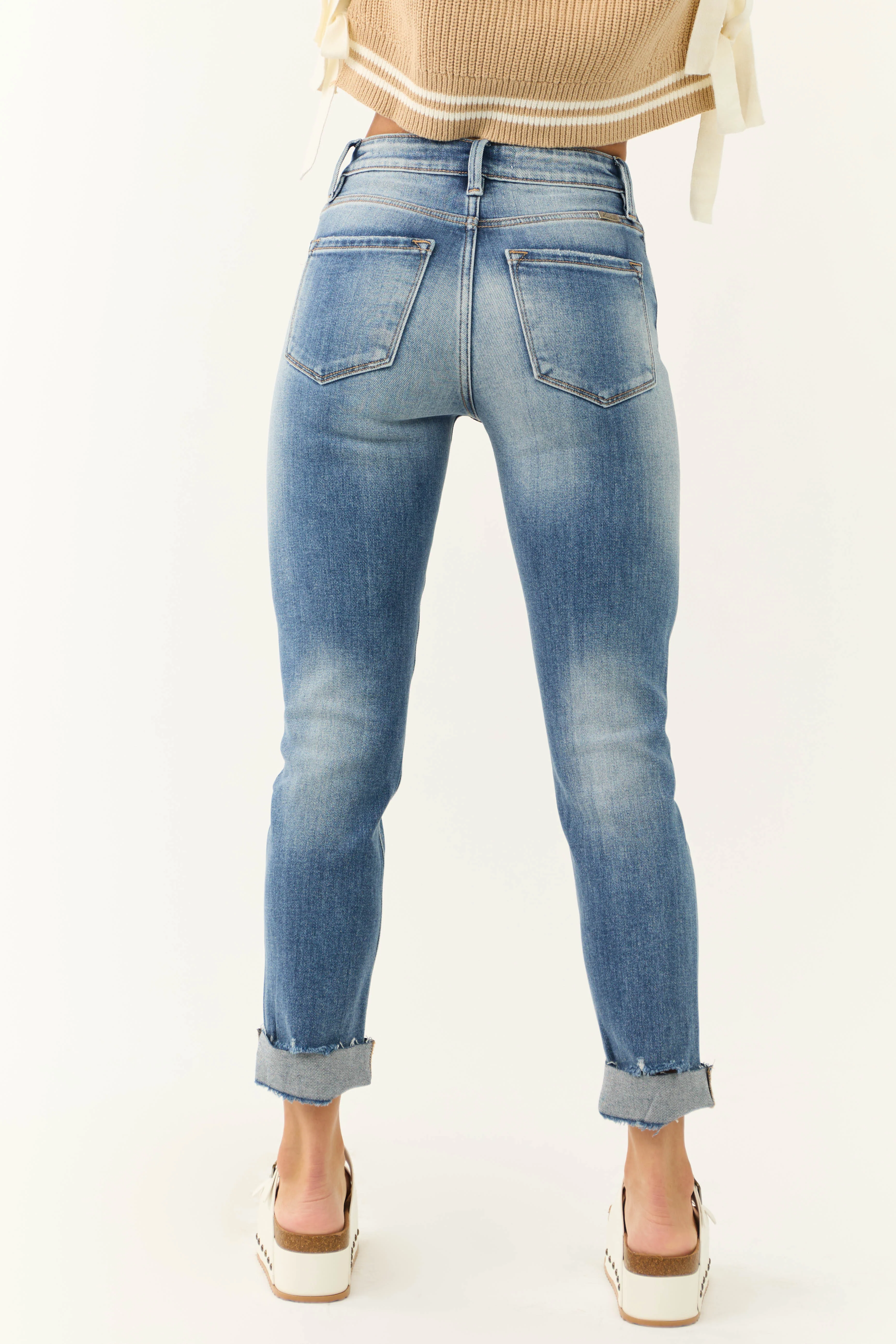 KanCan Medium Wash Cuffed Slim Straight Jeans