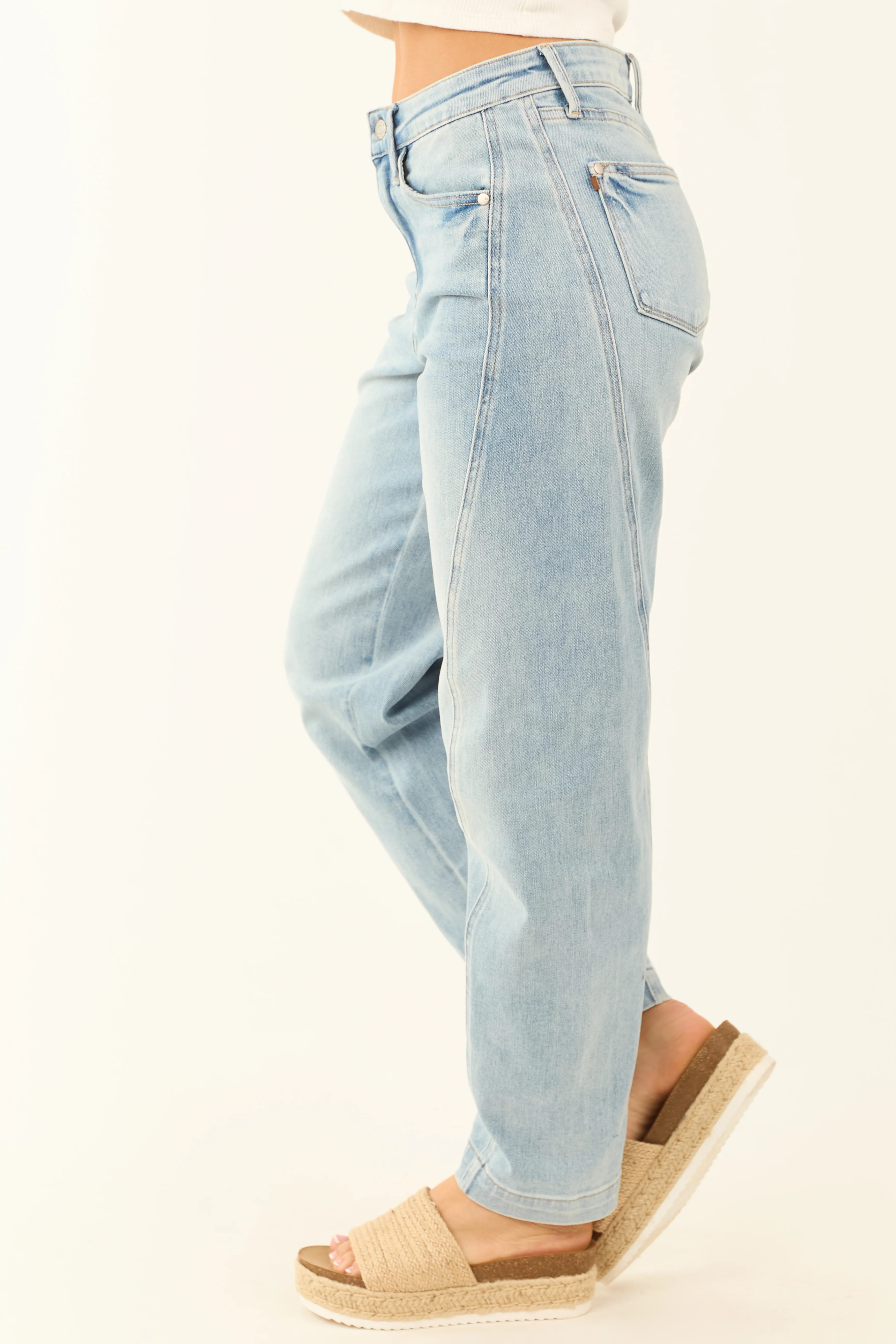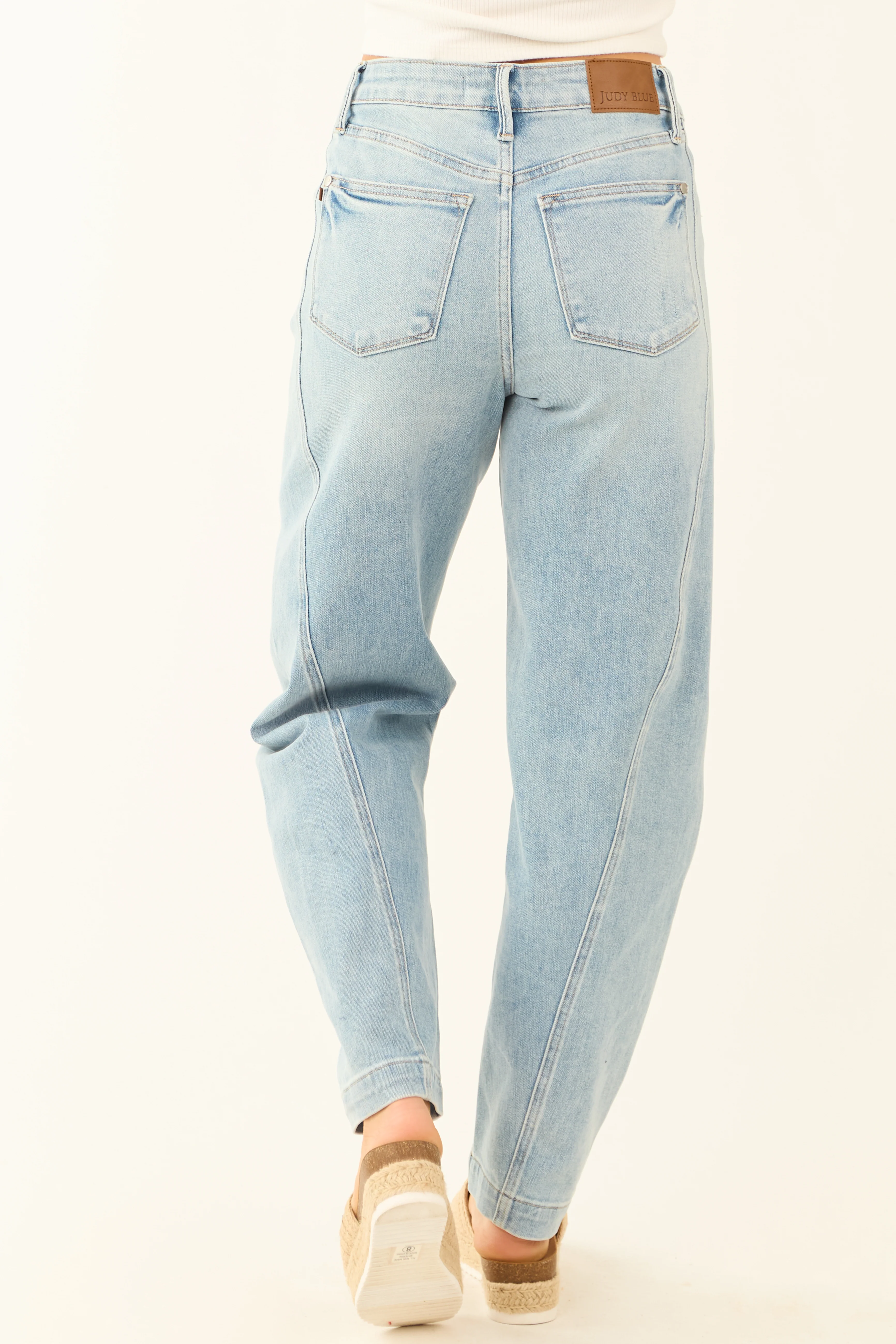 Judy Blue Light Wash Panel Stretchy Barrel Jeans
