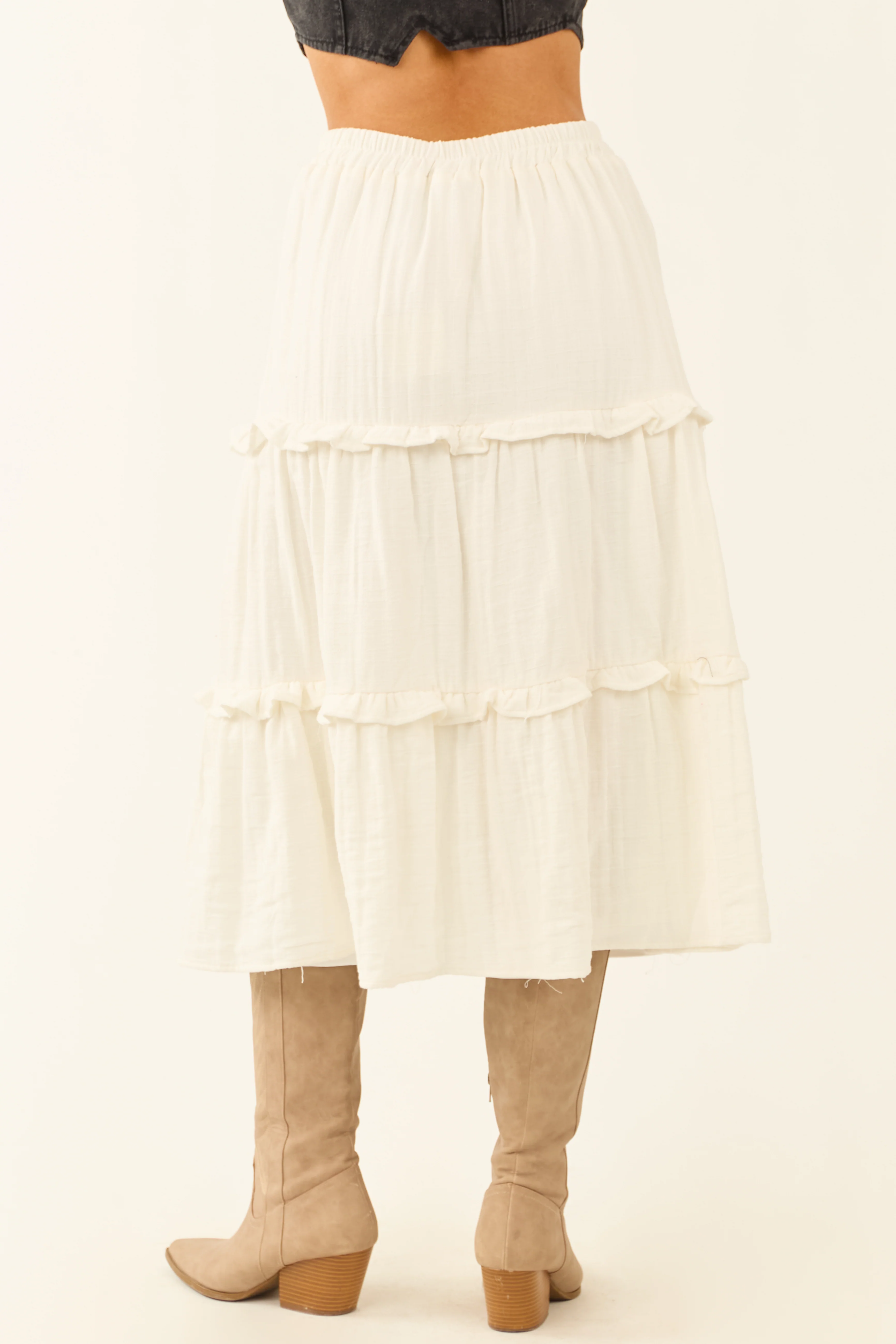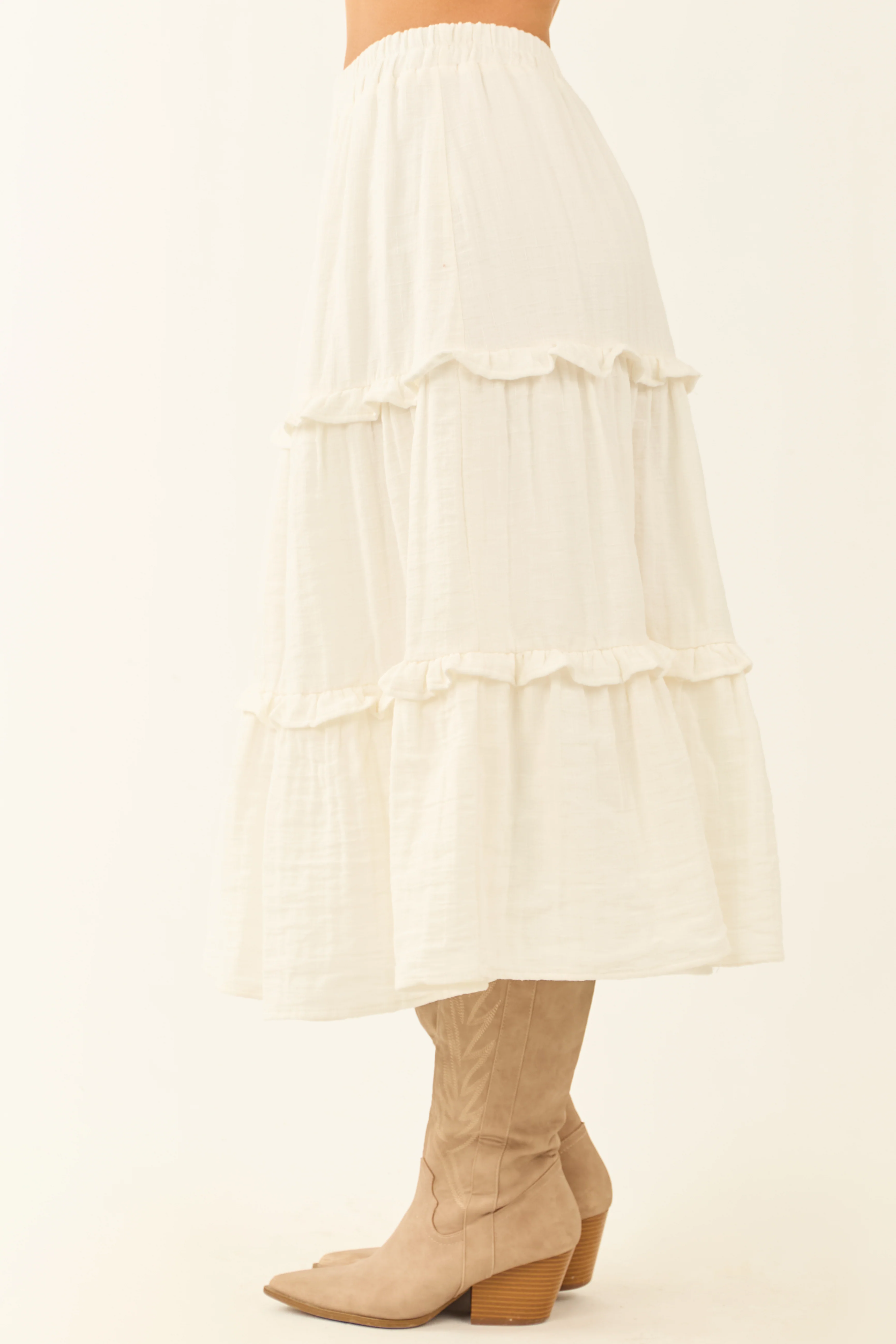 Ivory Tiered Frill Smocked Waist Midi Skirt