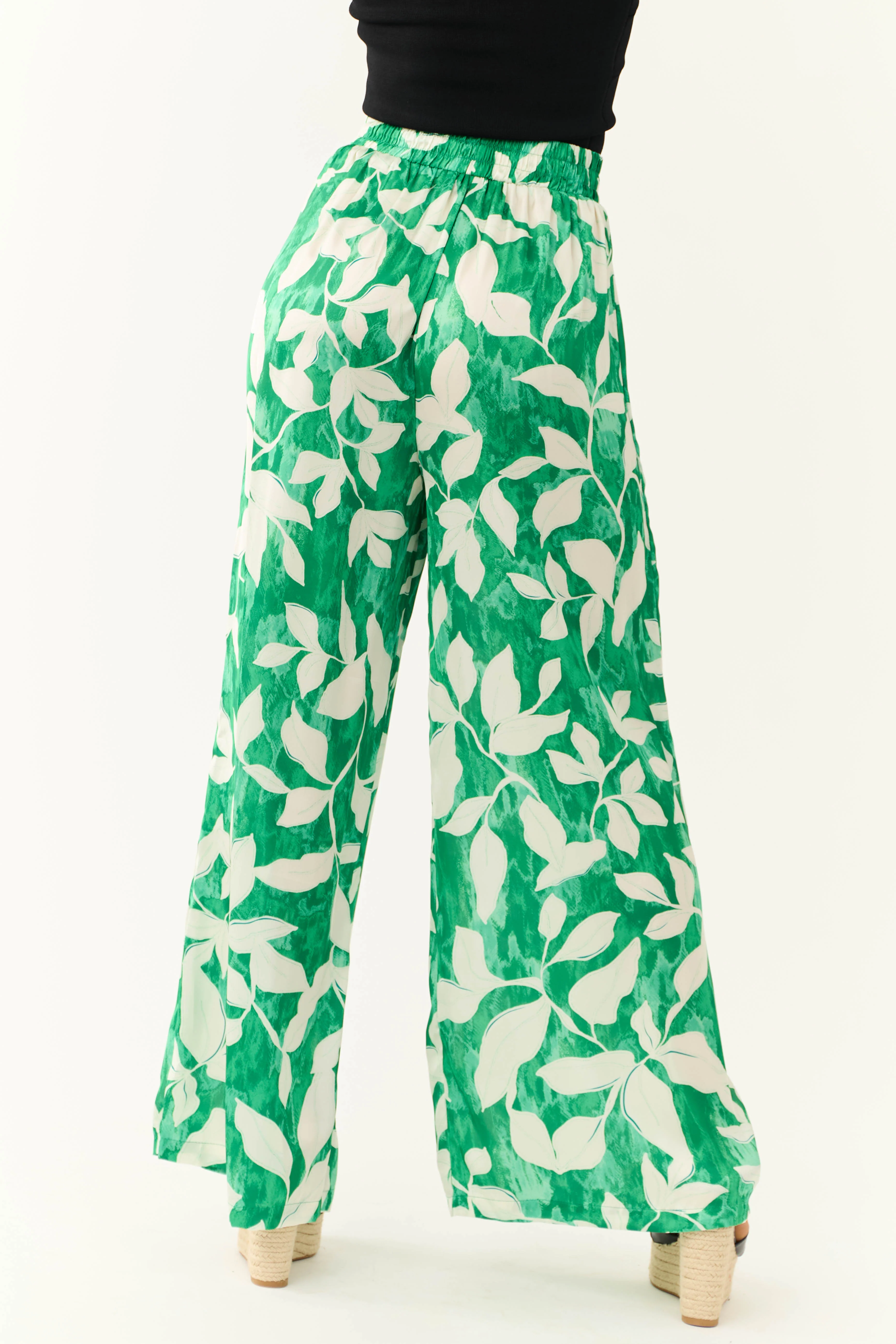 Flying Tomato Jade Leaf Print Satin Pants