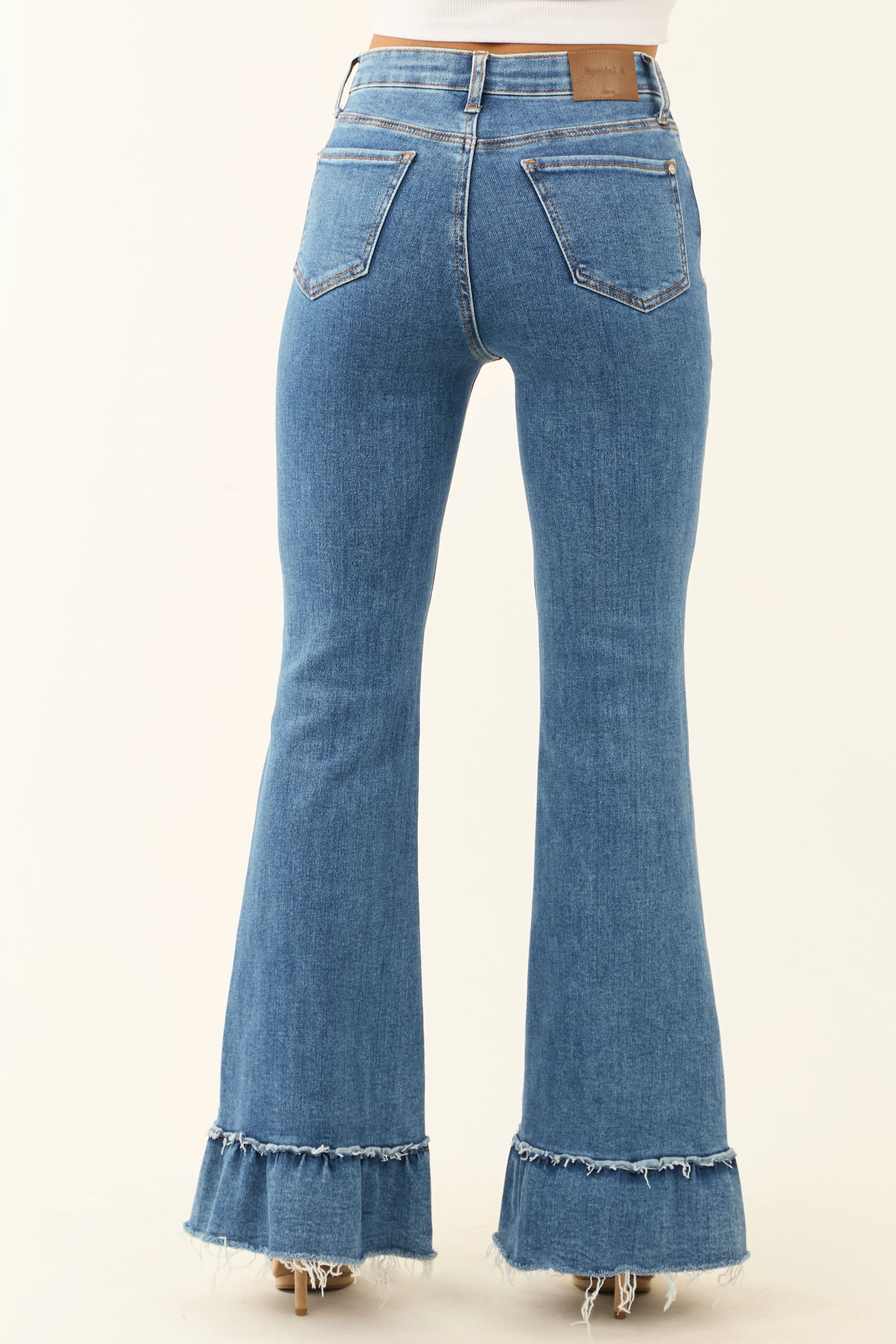 Special A Tummy Control Ruffle Flare Stretchy Jeans