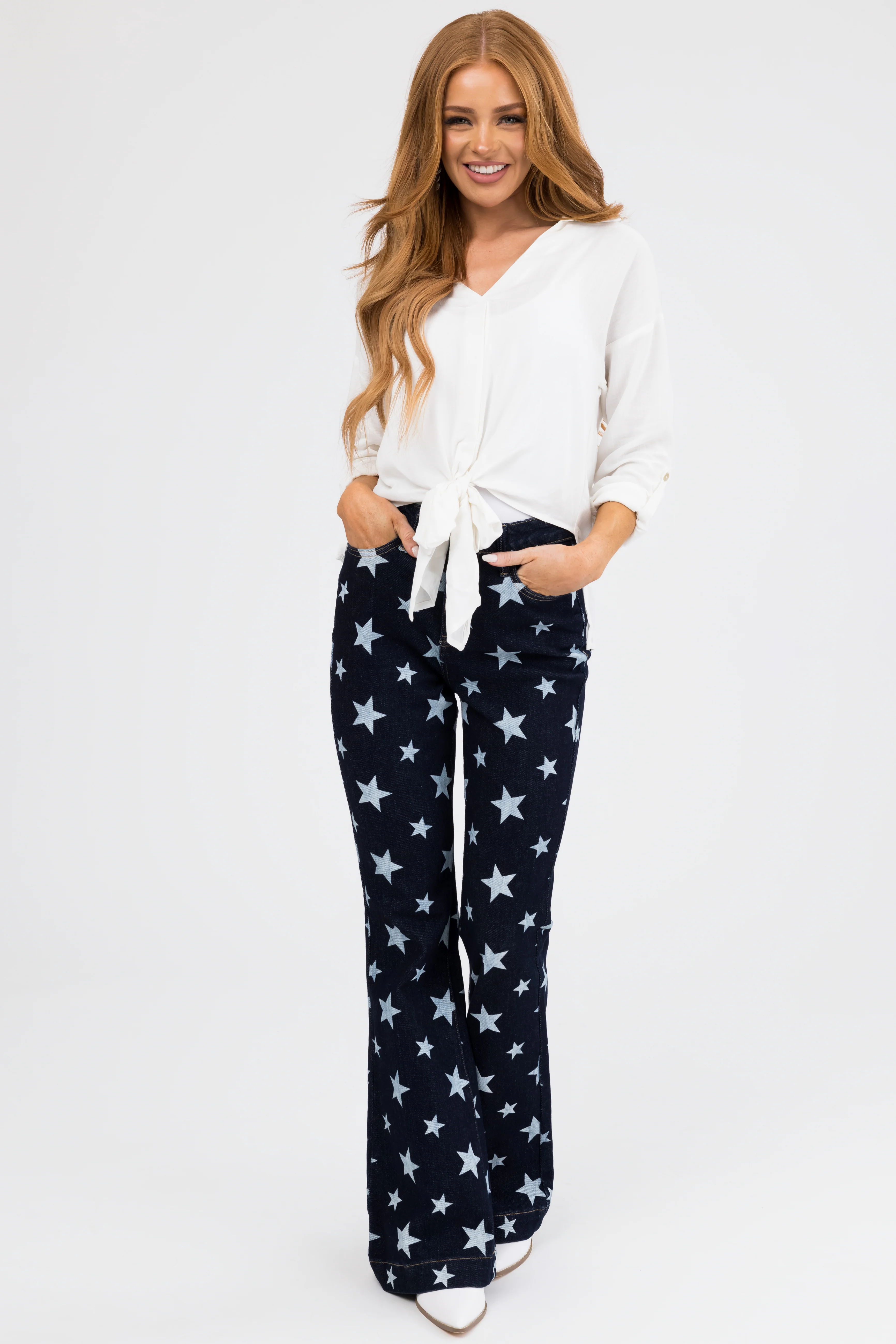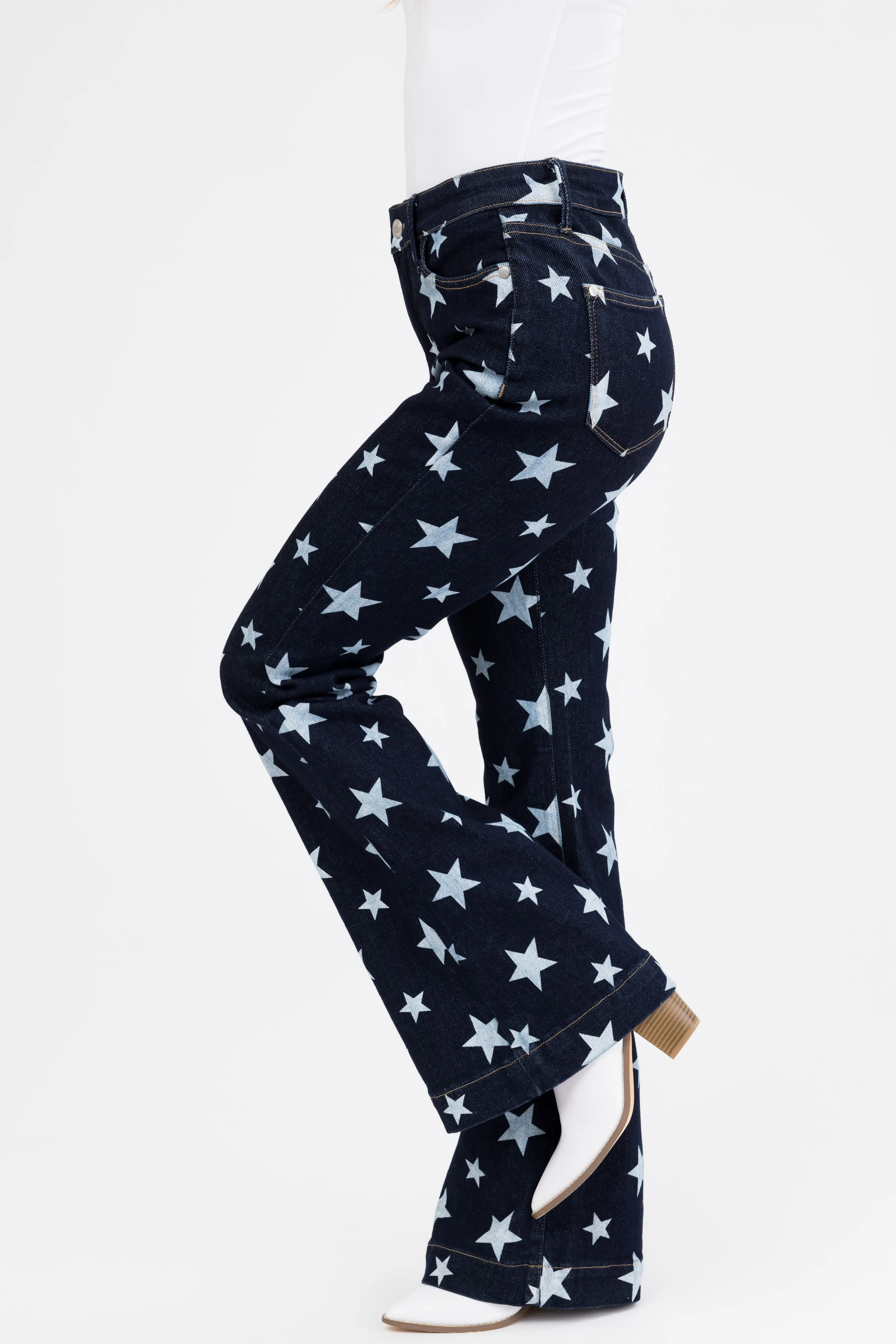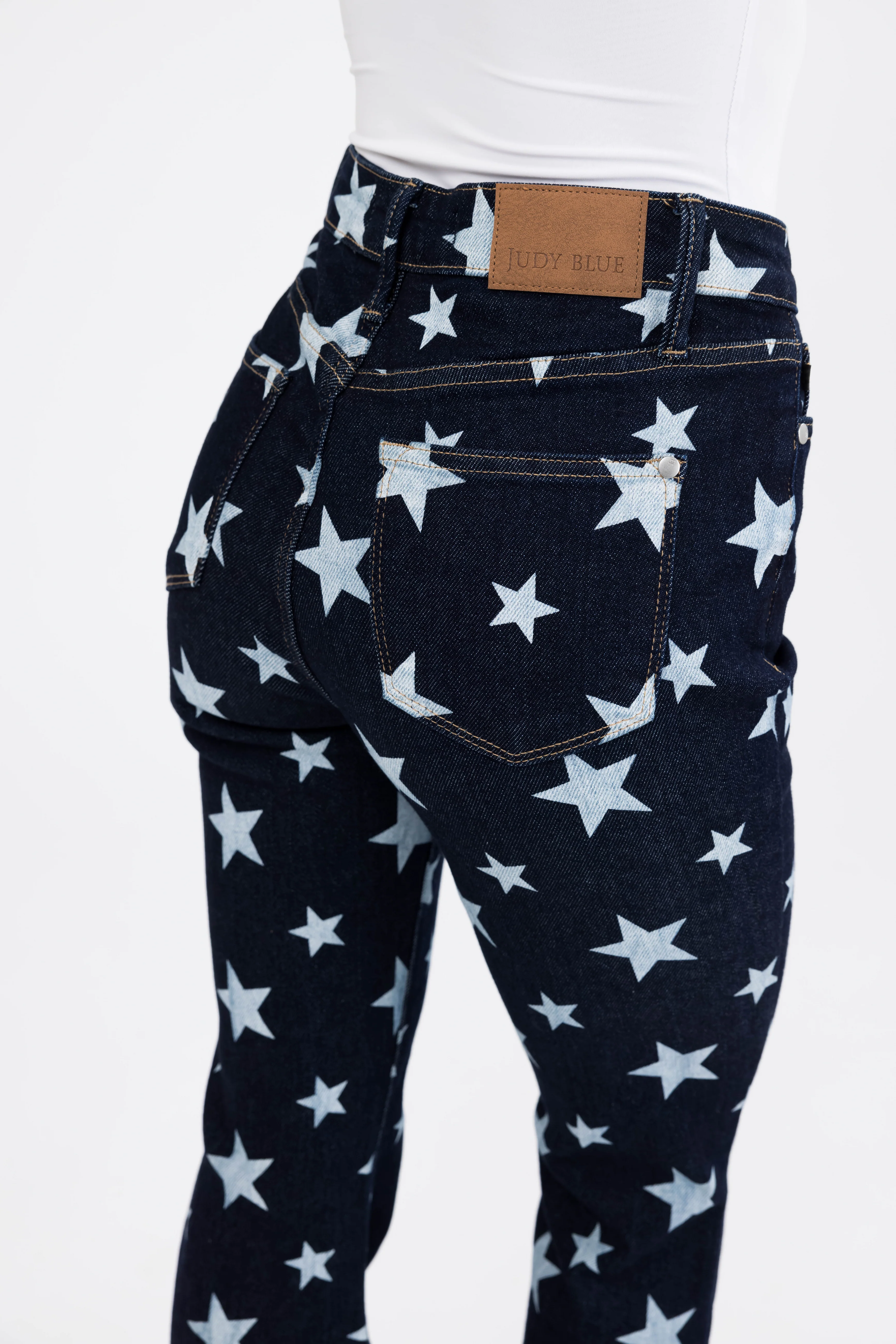 Judy Blue Dark Wash Star Print Flare Leg Jeans