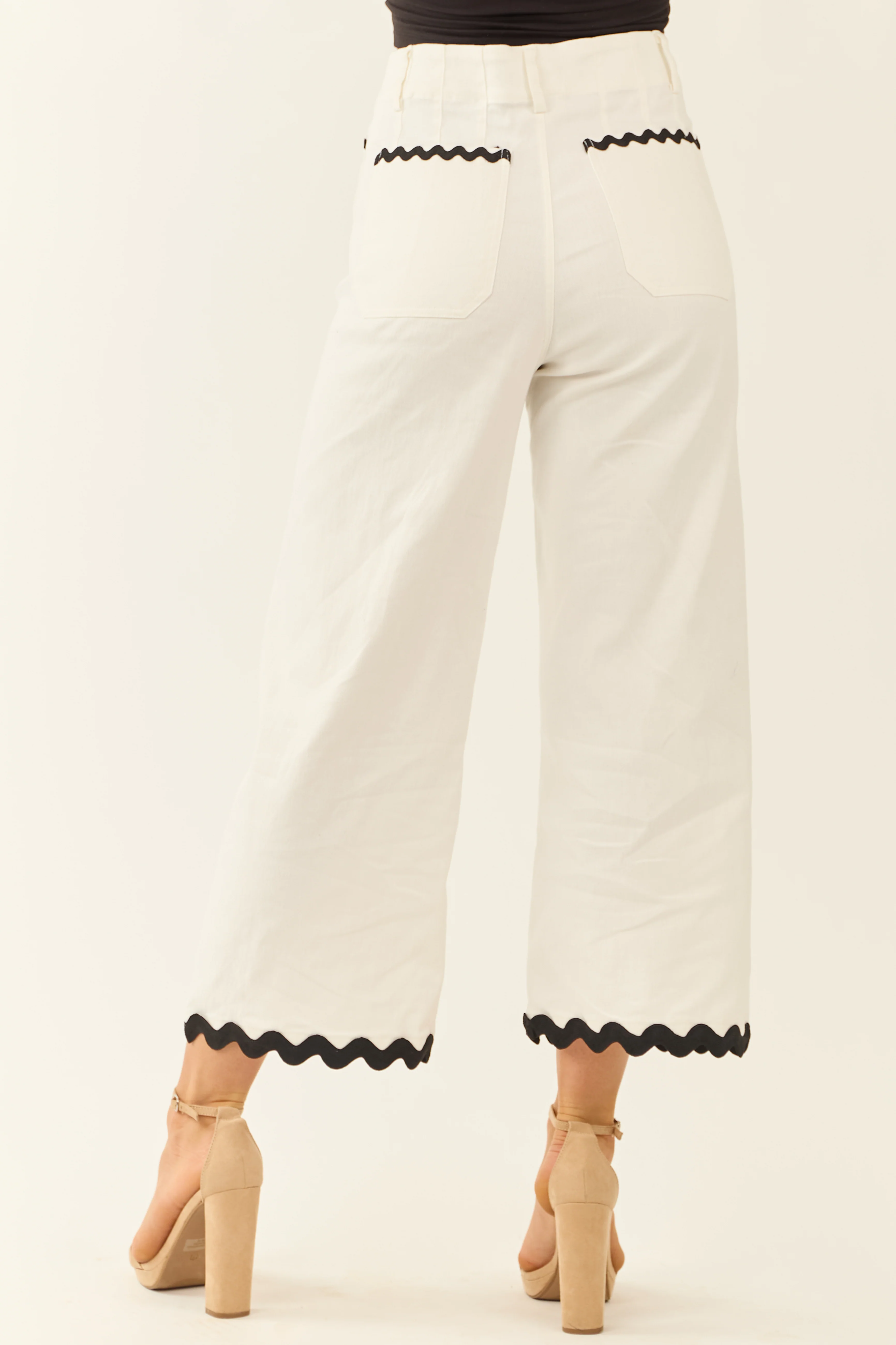 Ivory Denim Ric Rac Trim Cropped Straight Leg Jeans