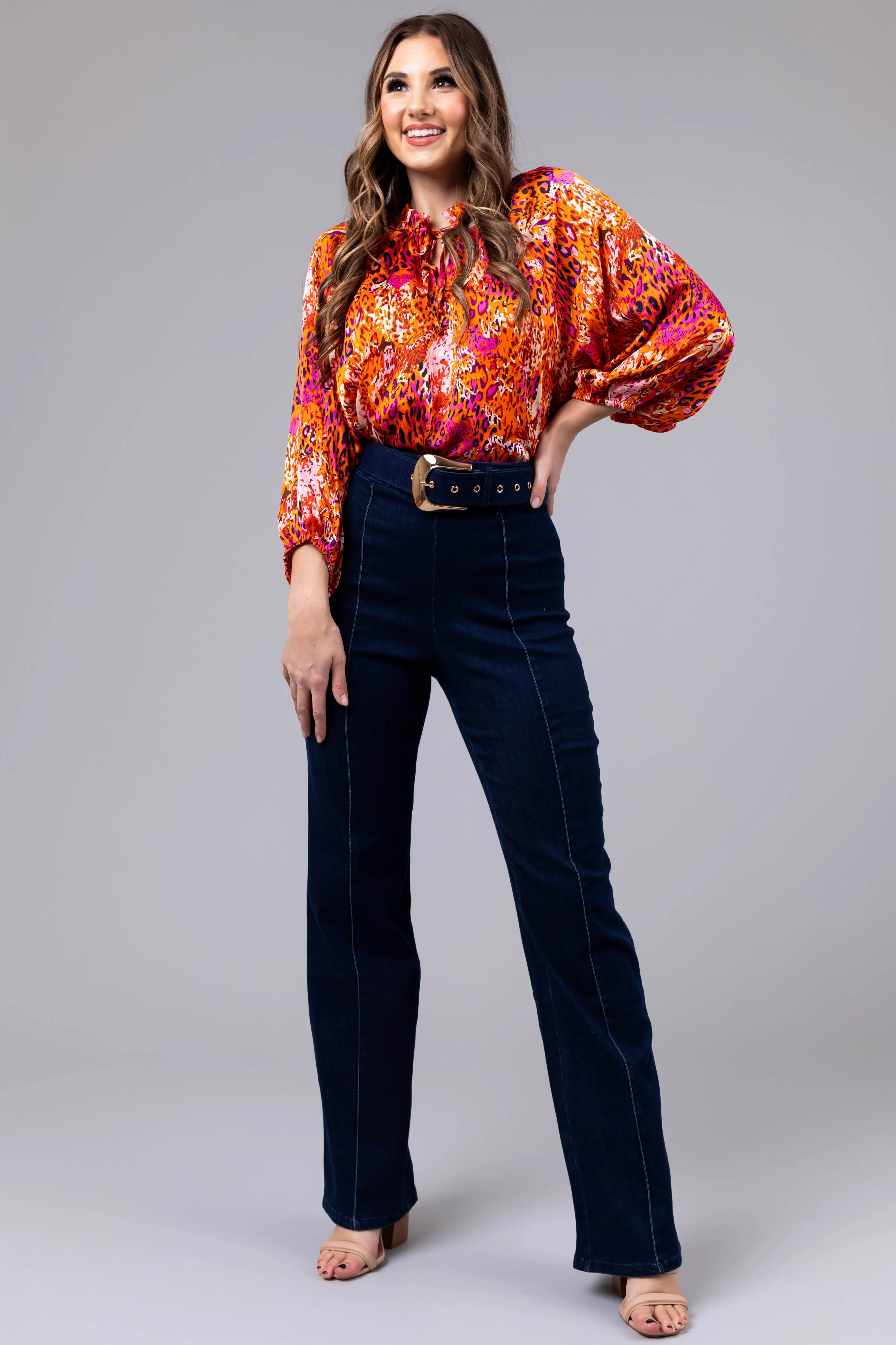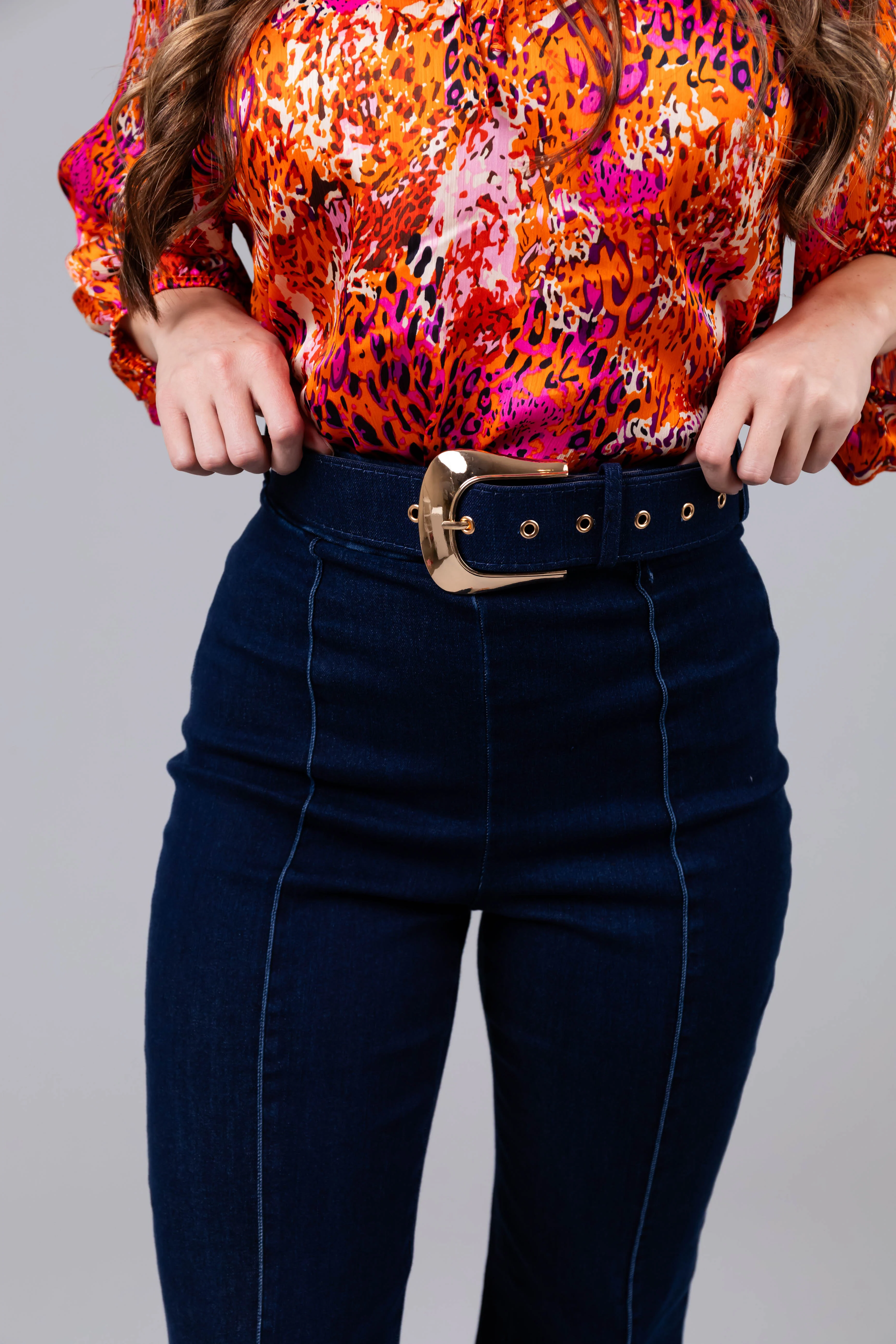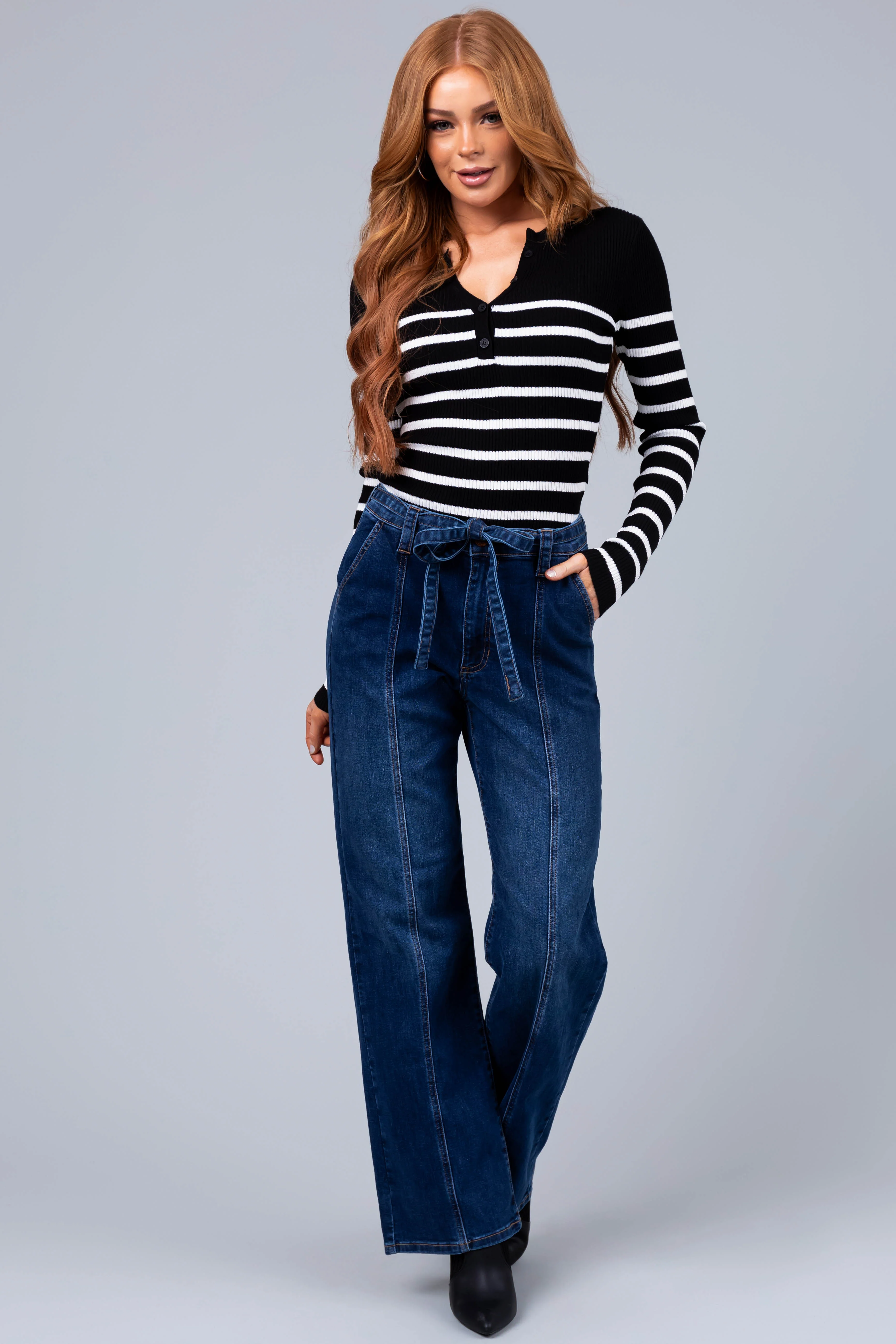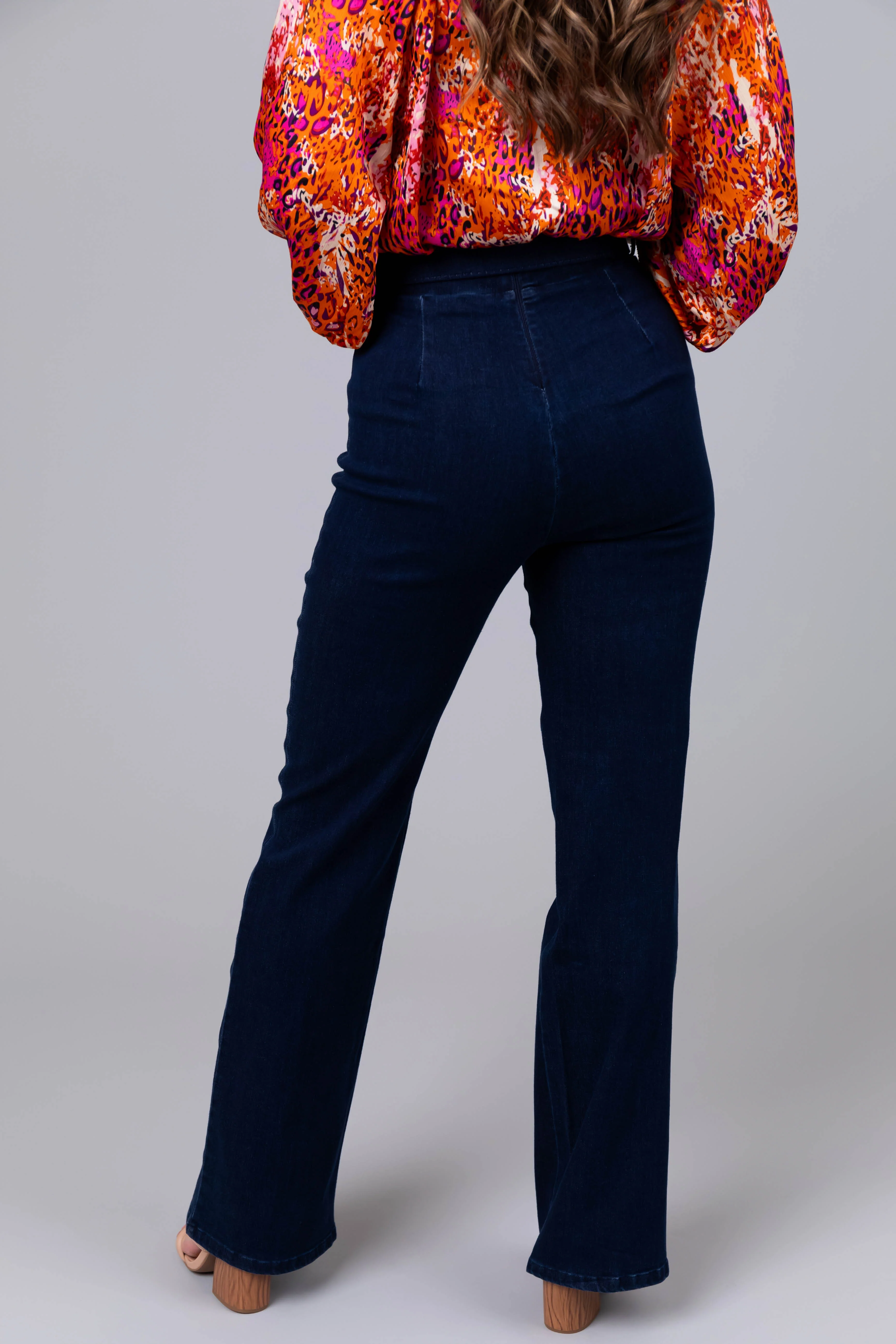 Dark Wash Denim High Waisted Pants with Belt