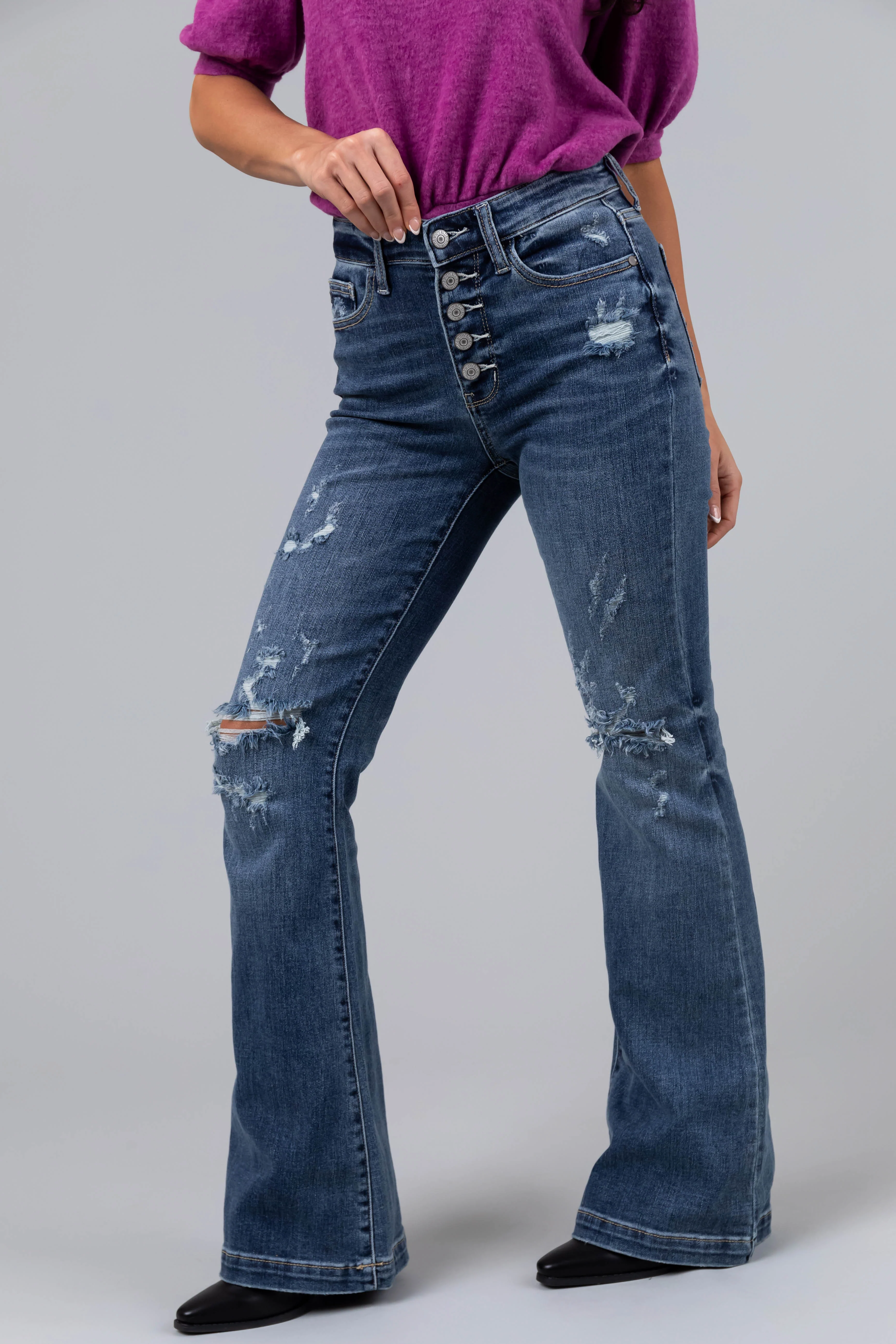 Judy Blue Dark Wash Distressed Flare Jeans