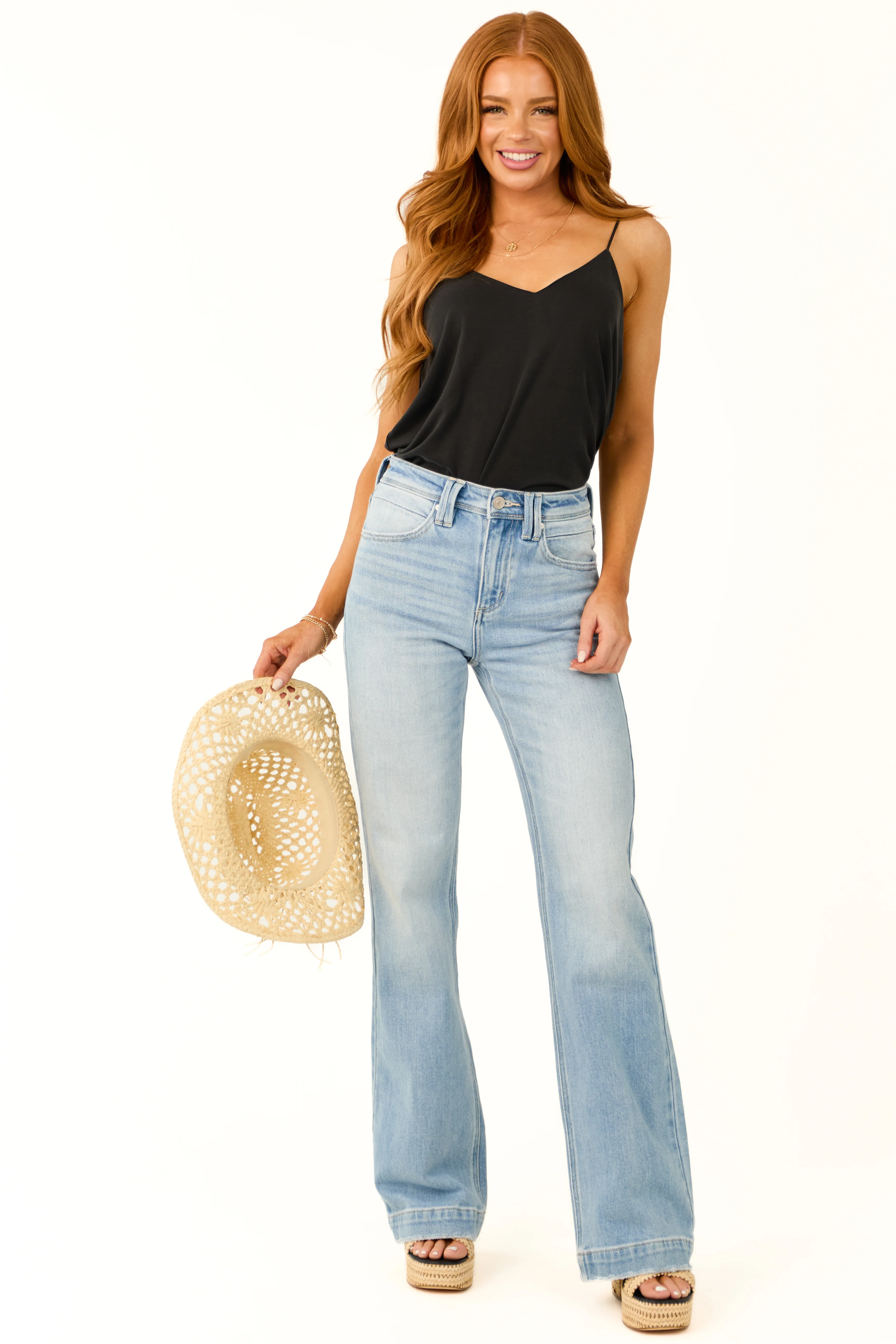 Judy Blue Light Wash Flare Leg Distressed Jeans