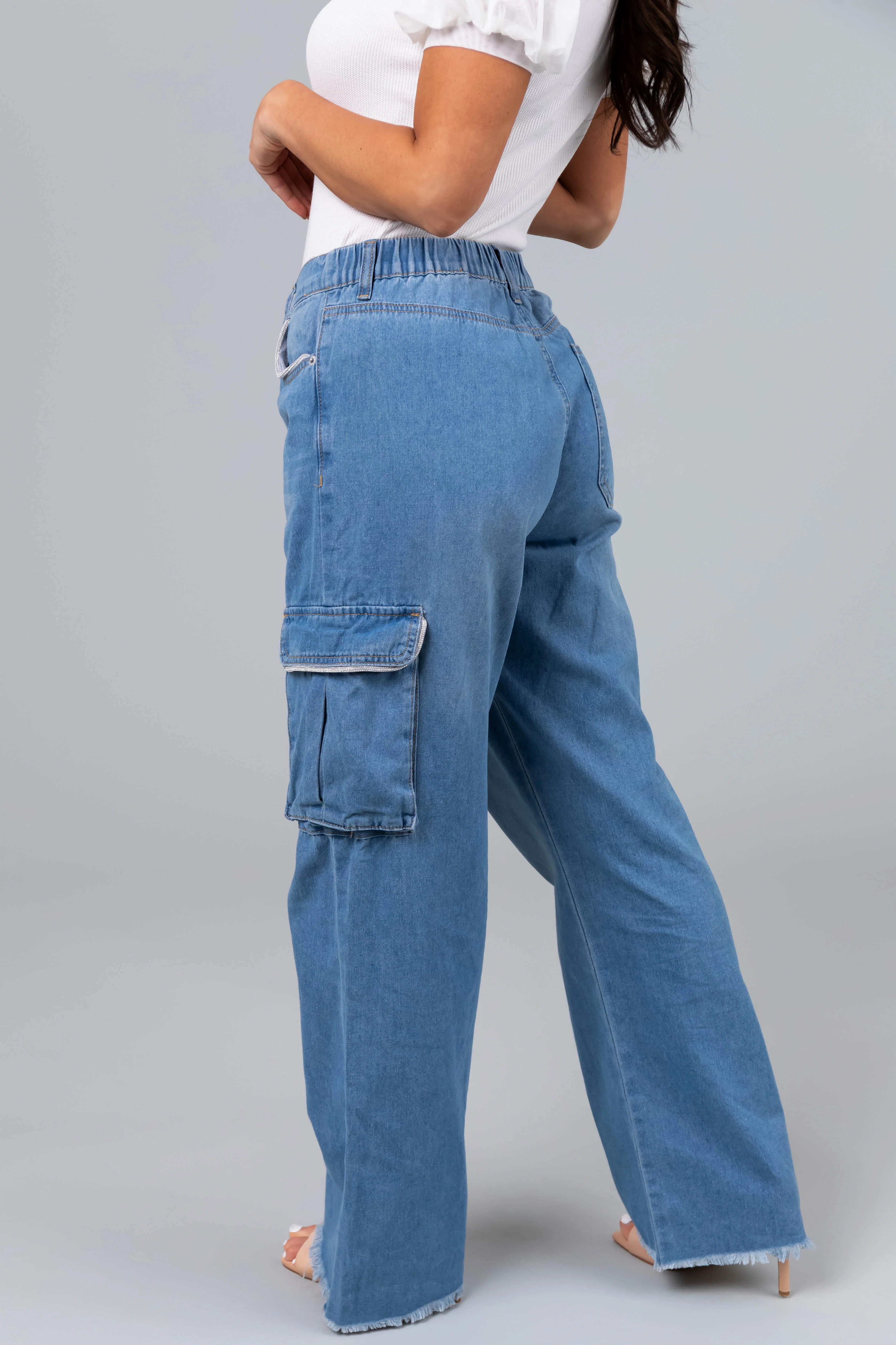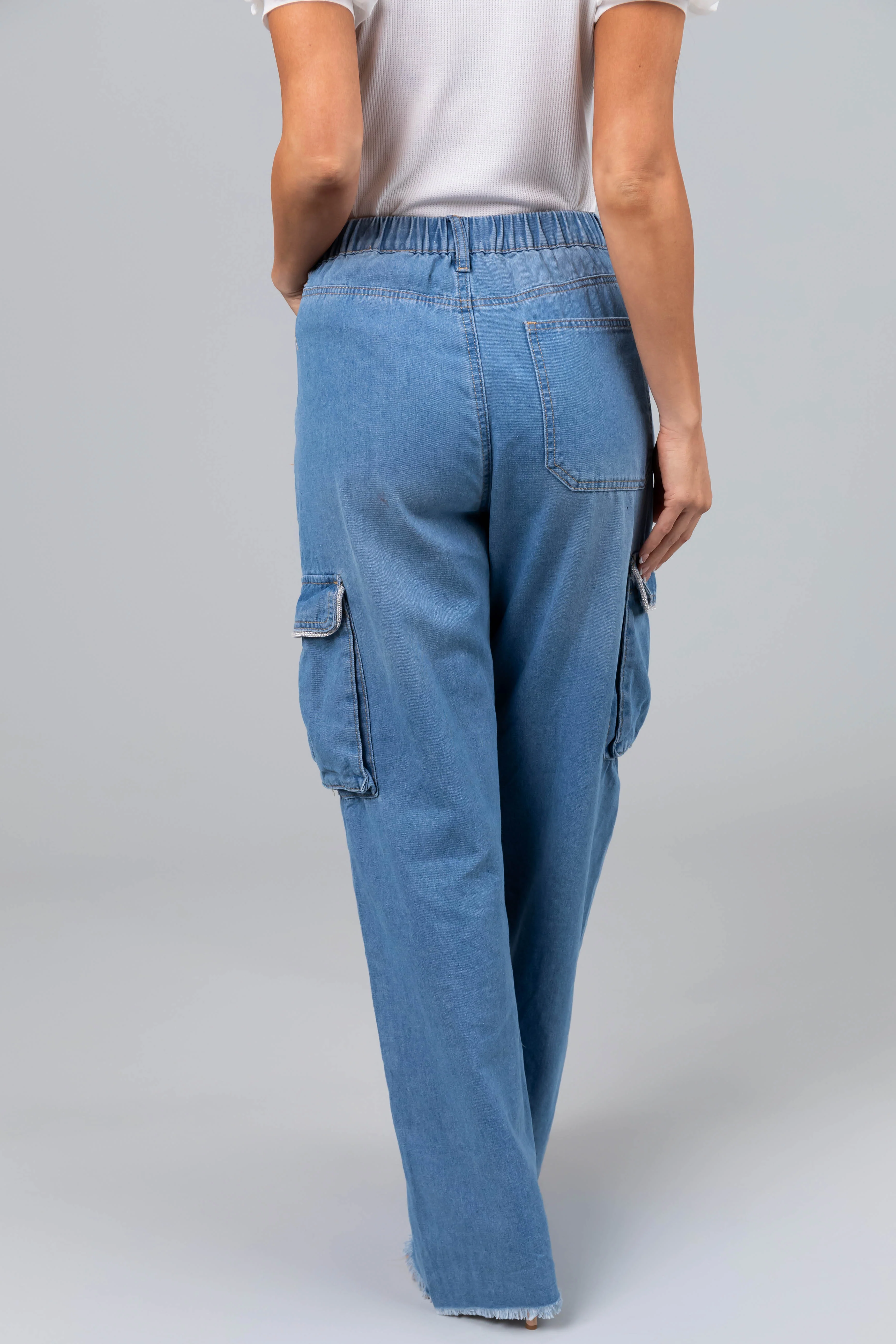 Boom Boom Light Wash Rhinestone Cargo Jeans