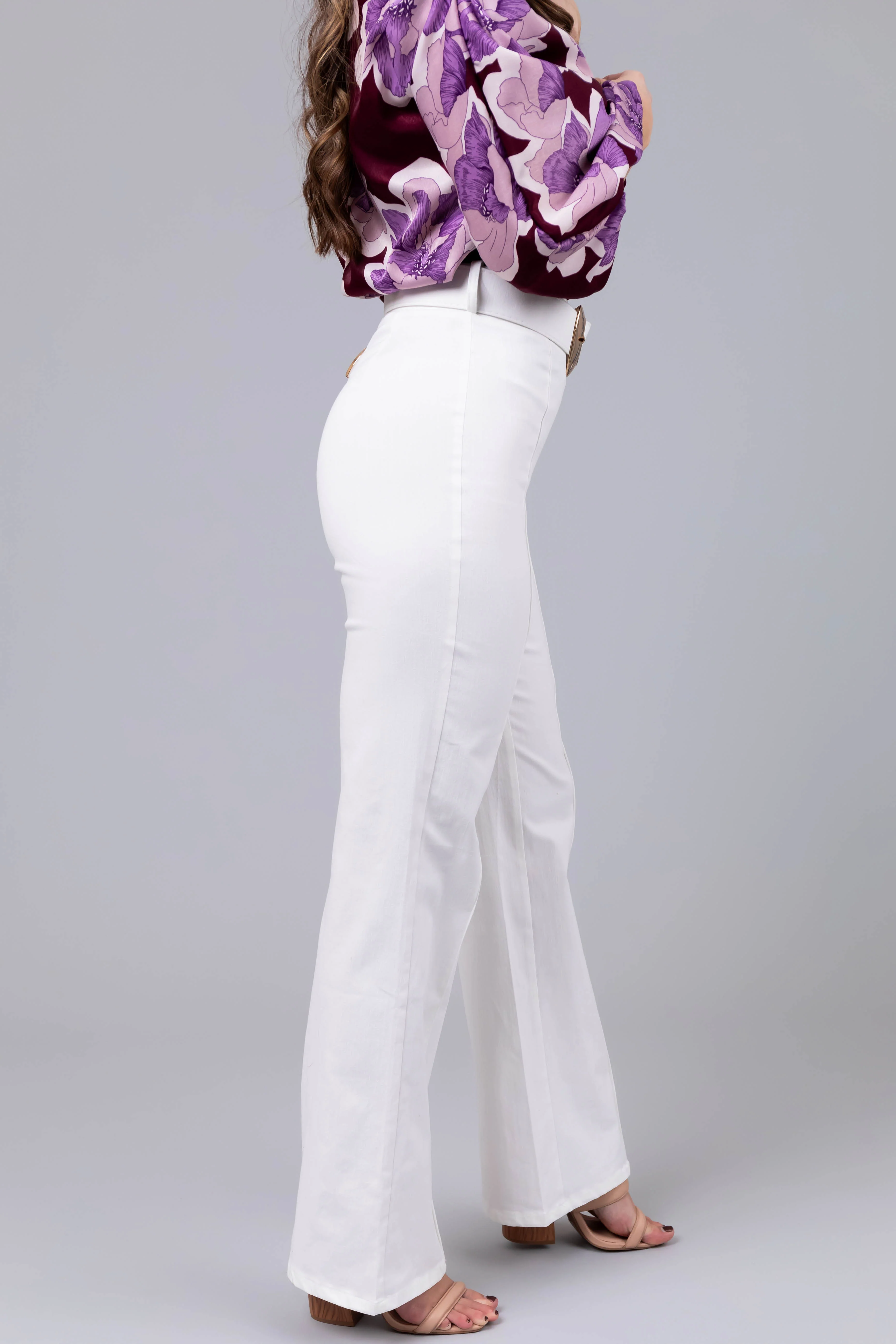 Off White Denim High Waisted Pants with Belt
