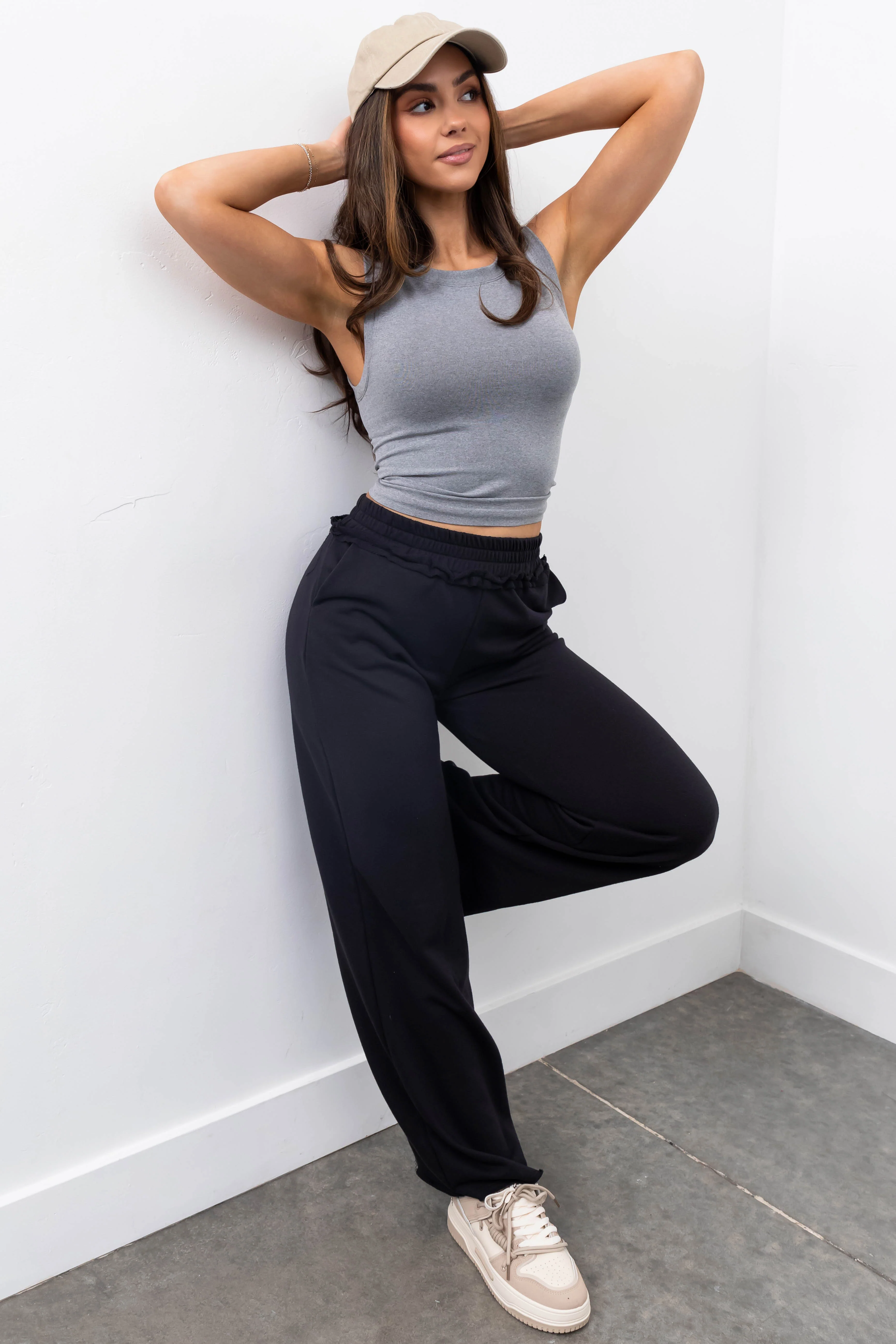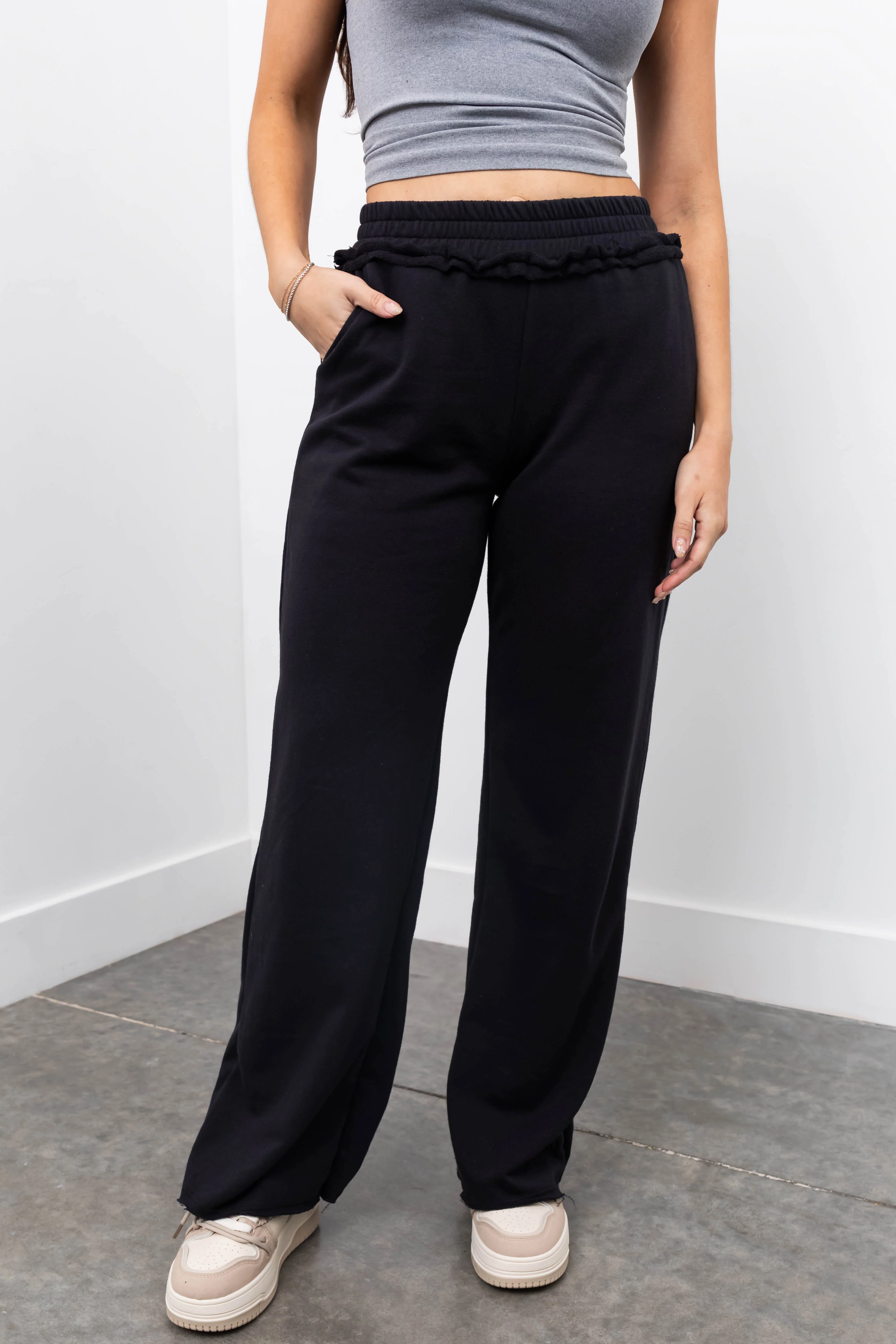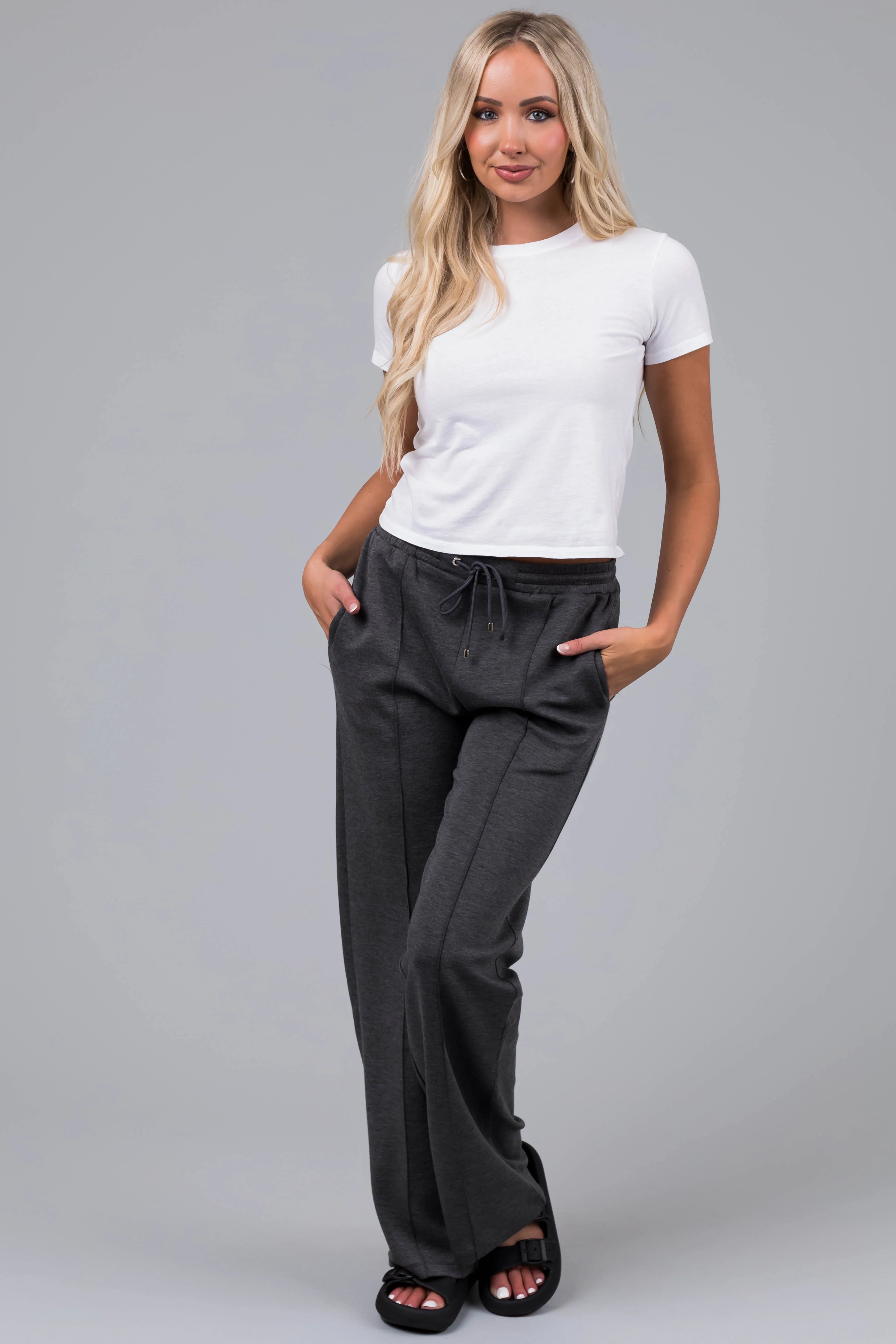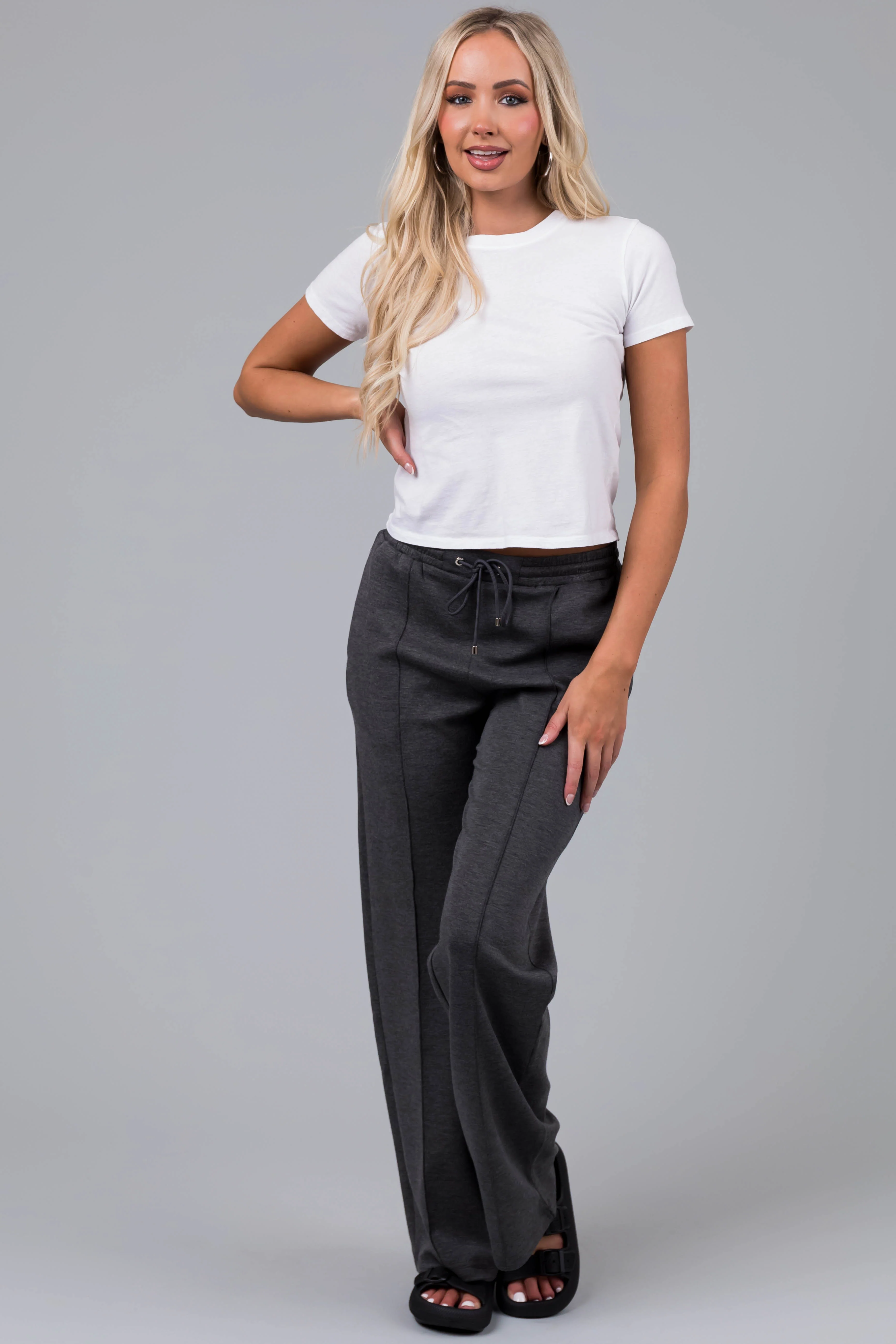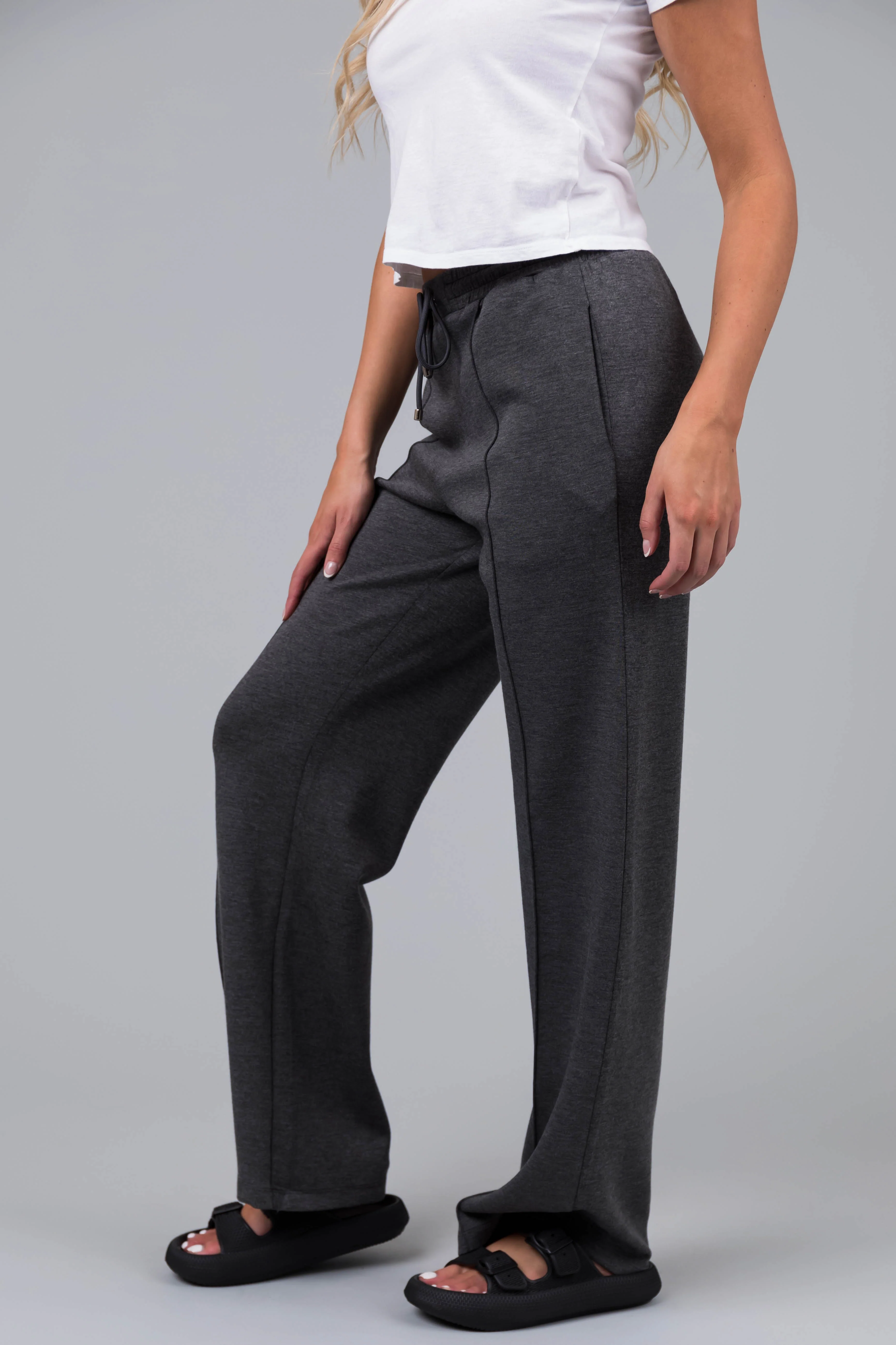Charcoal Straight Leg Drawstring Comfy Pants