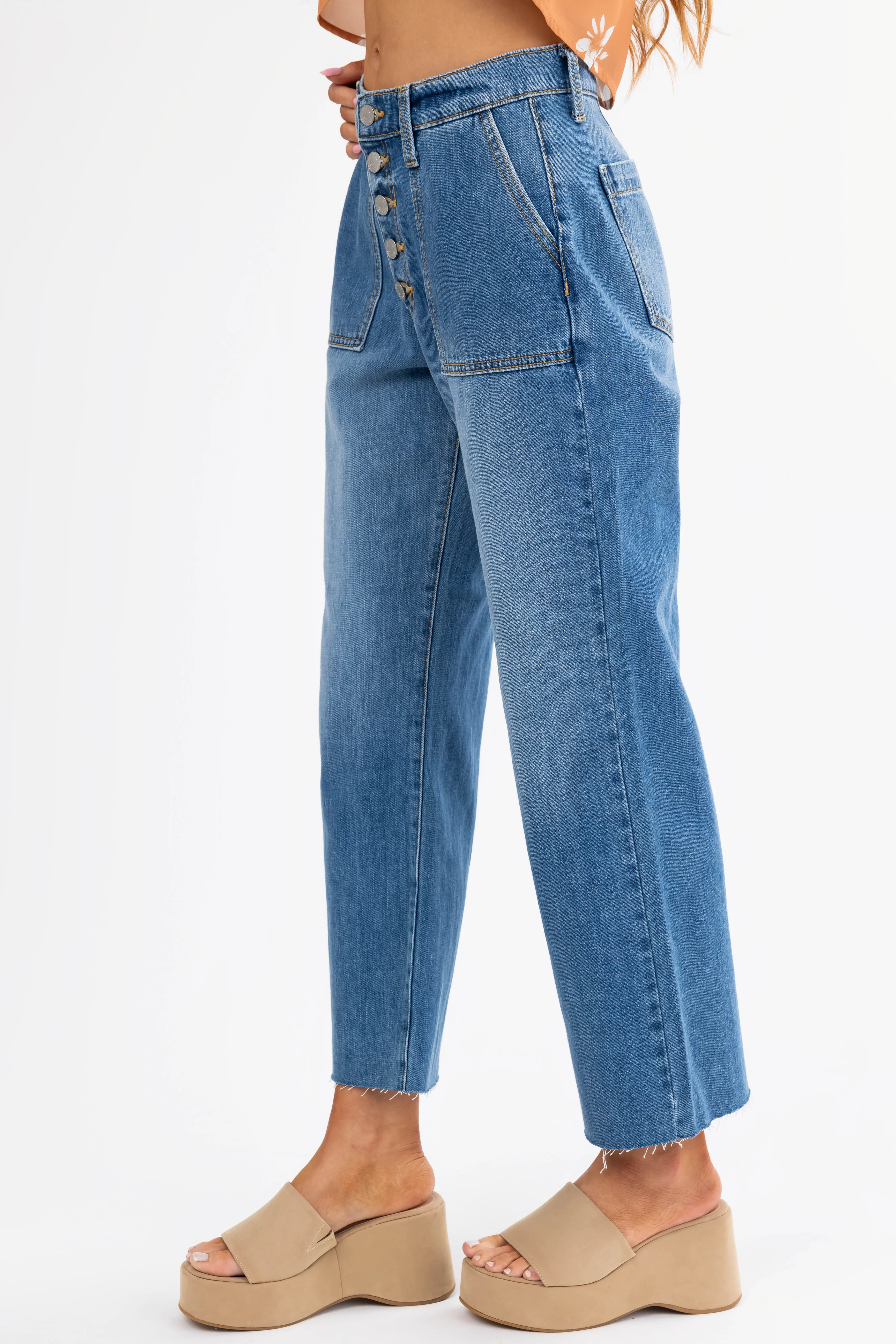 KanCan High Rise Wide Leg Button Up Jeans