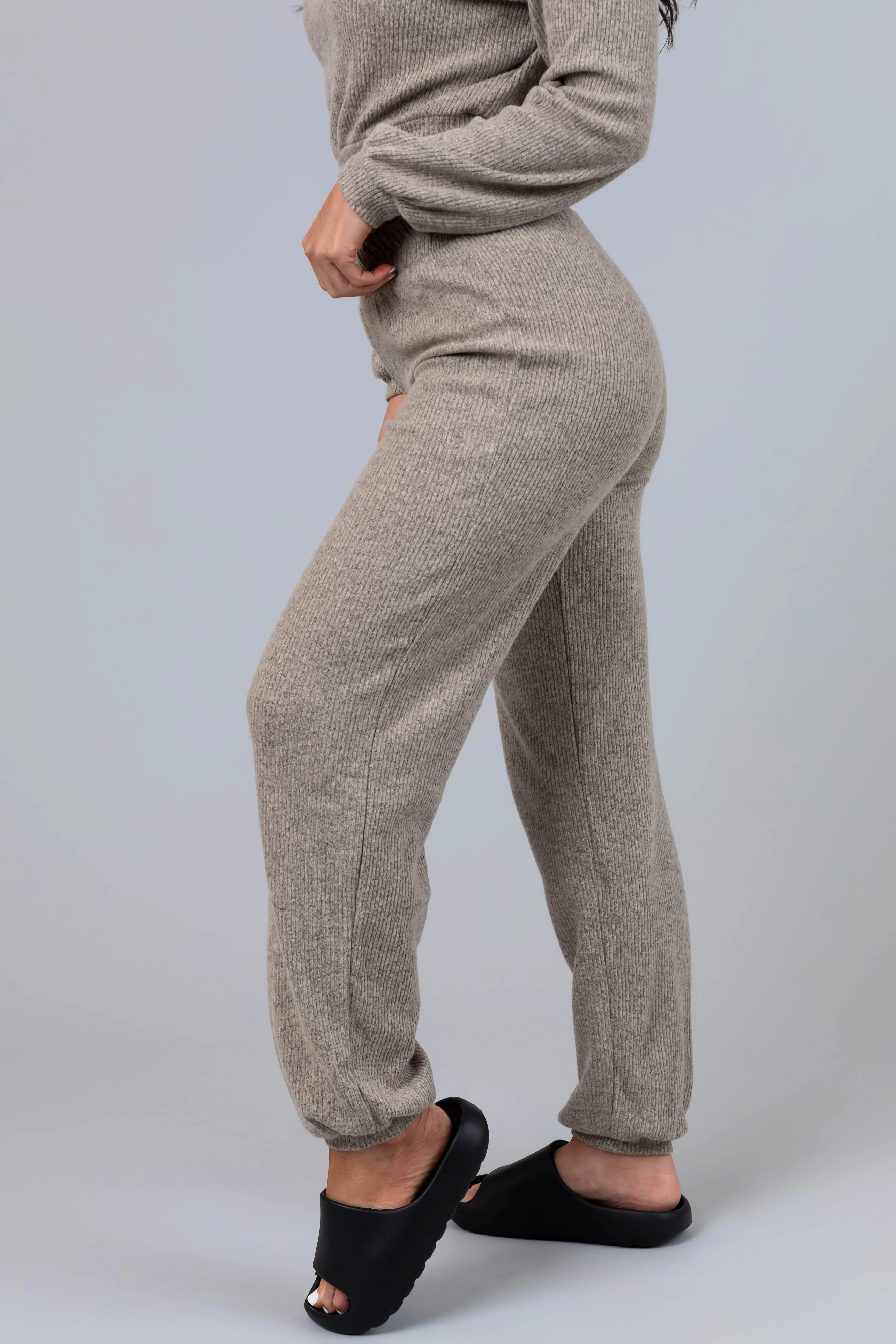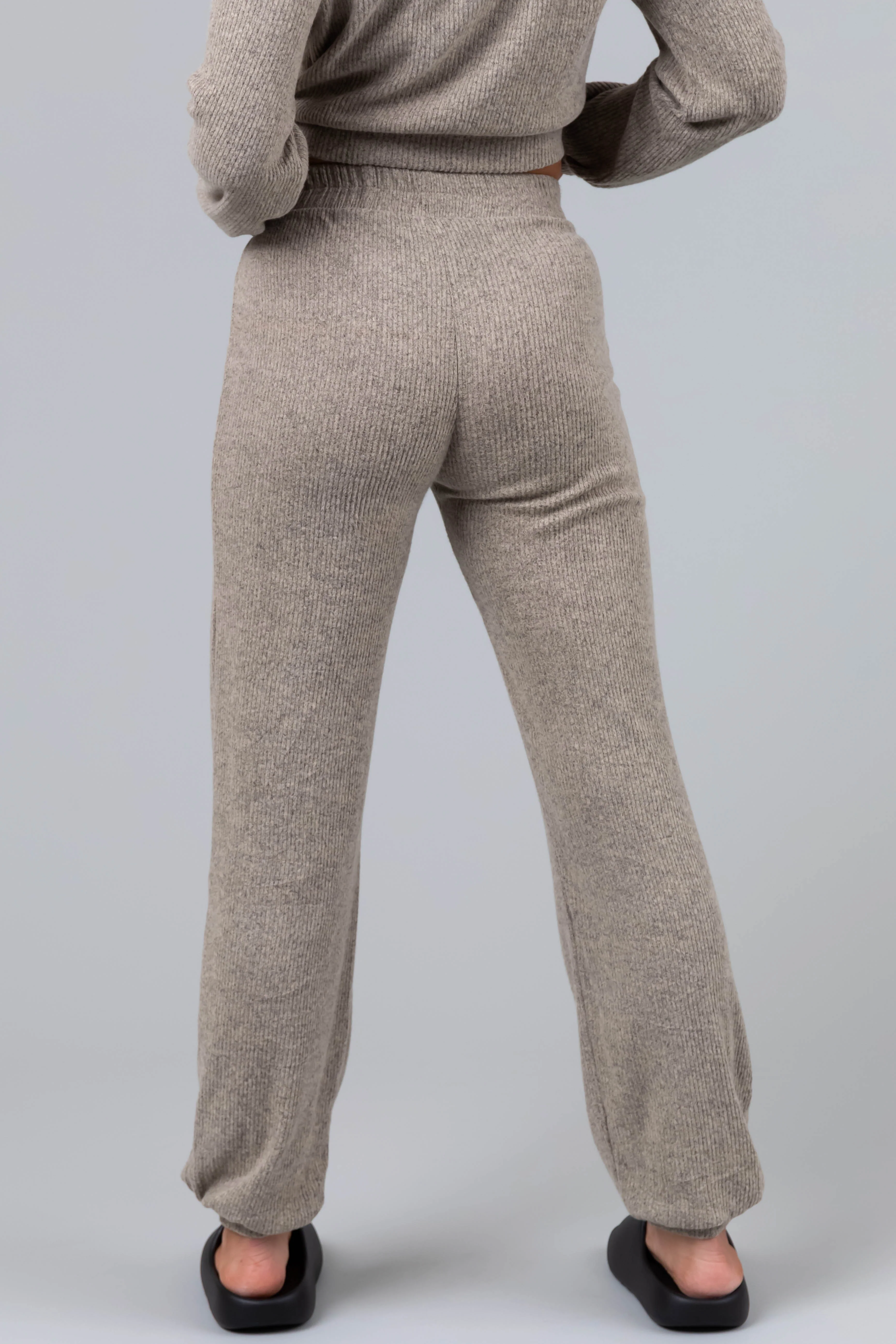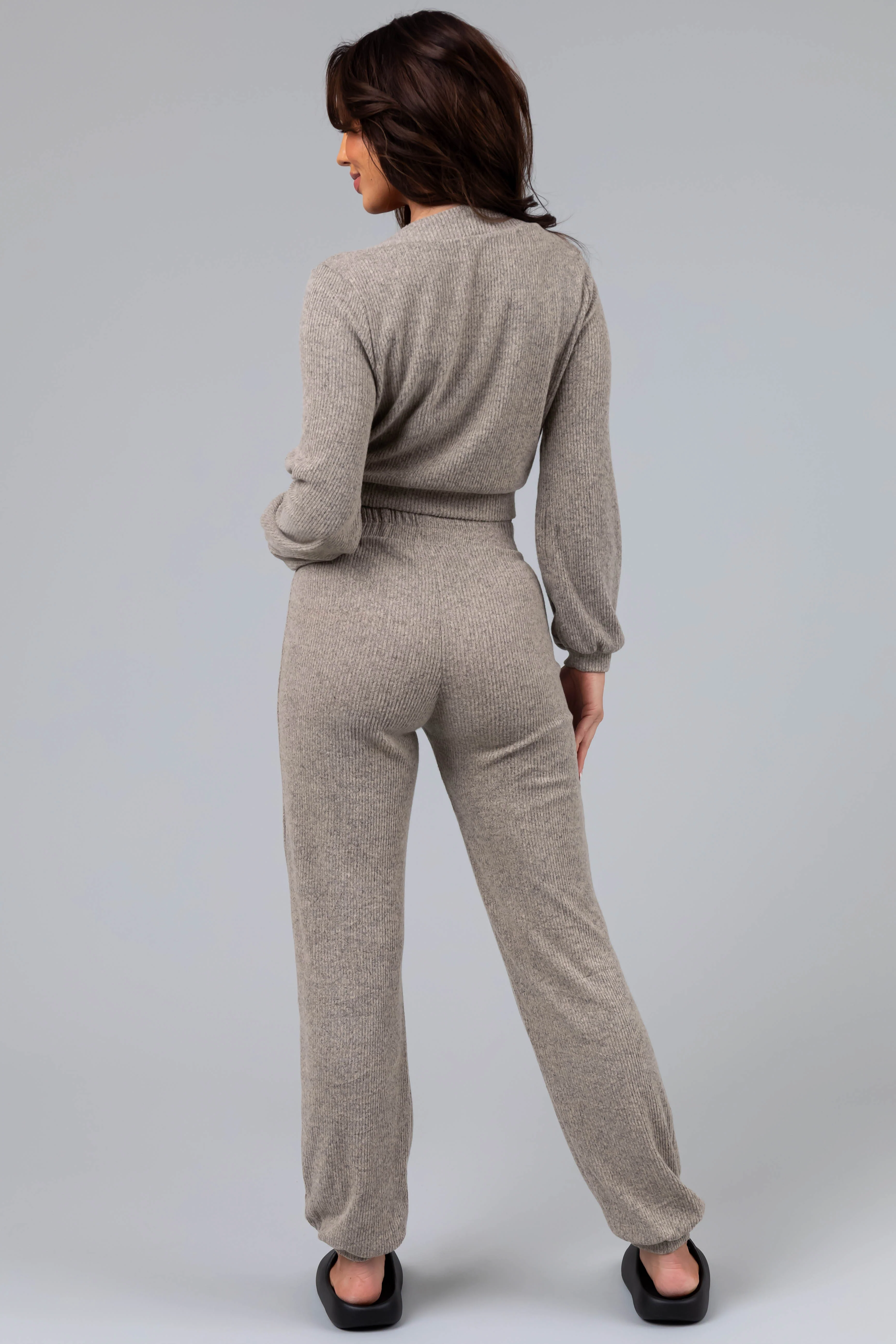 Taupe Soft Crop Top and Jogger Loungewear Set