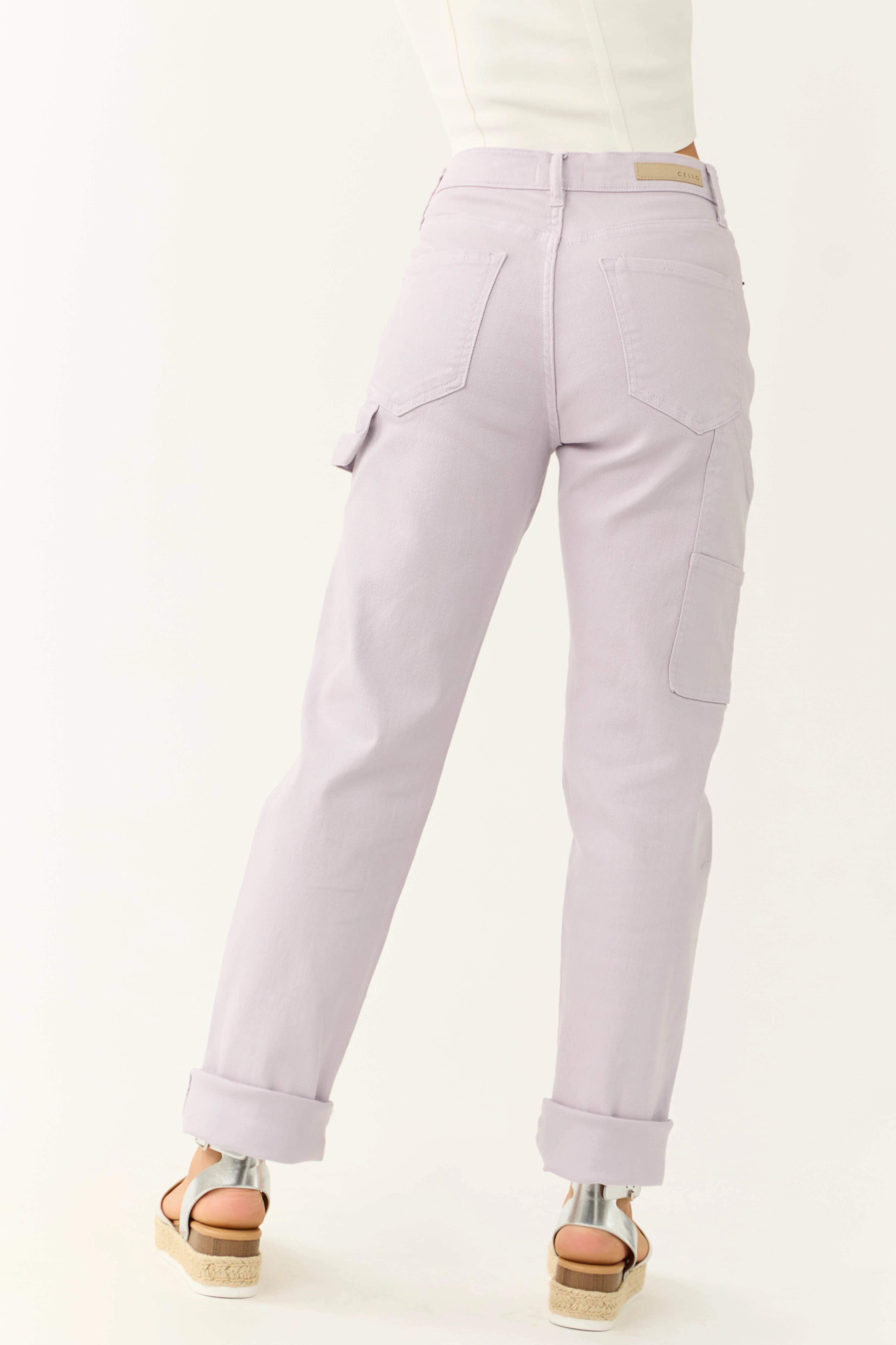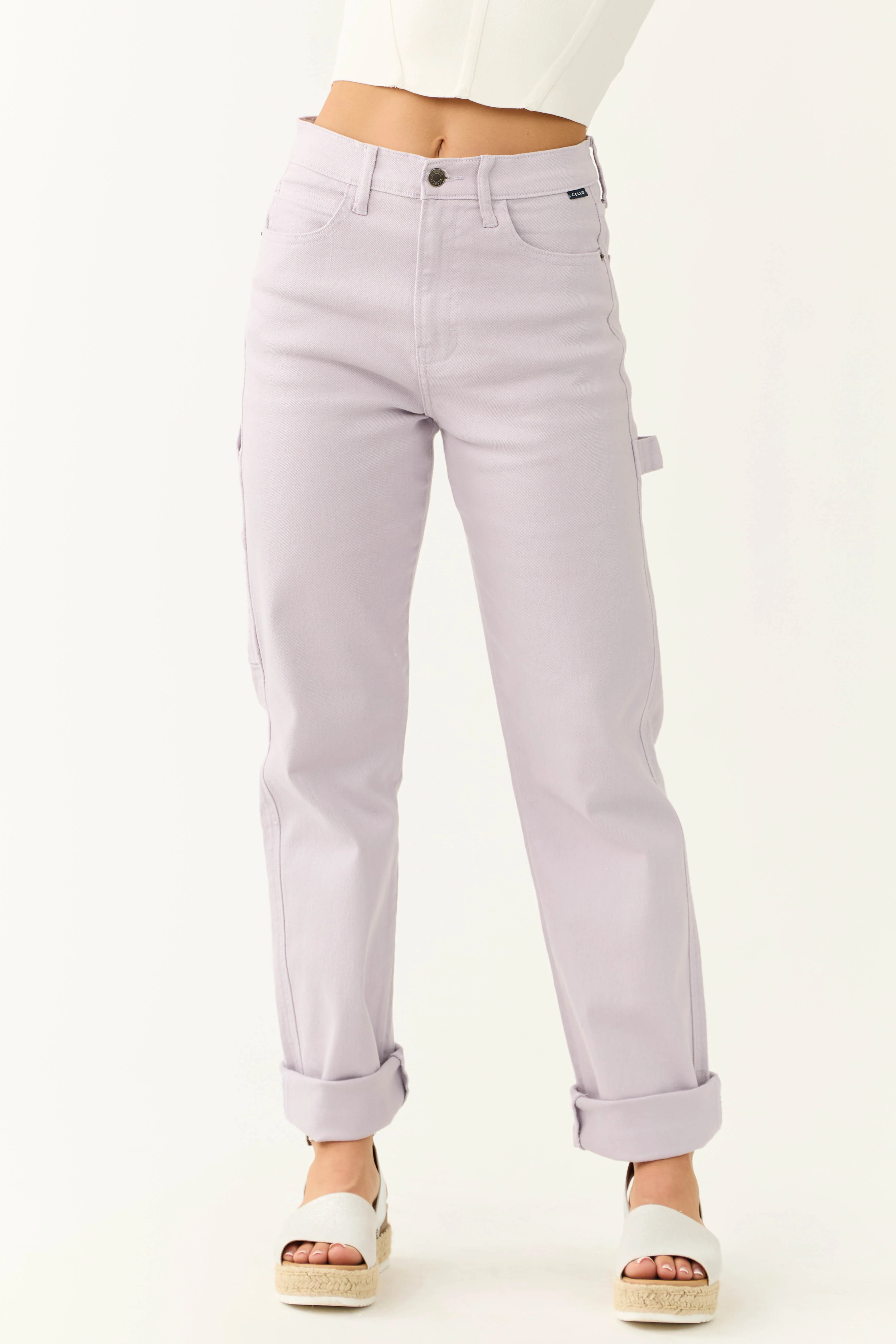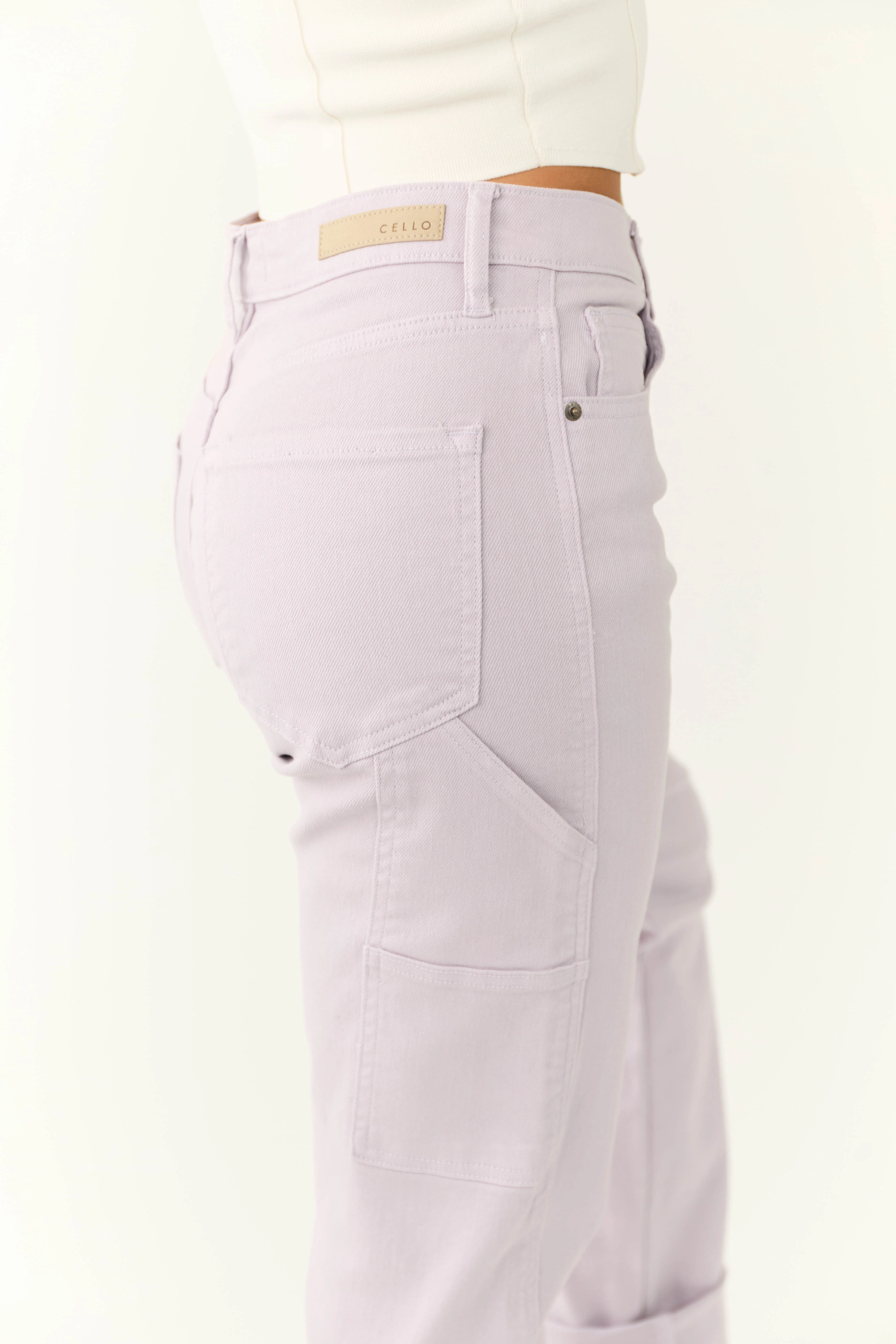 Cello Lavender Mid Rise Baggy Carpenter Jeans