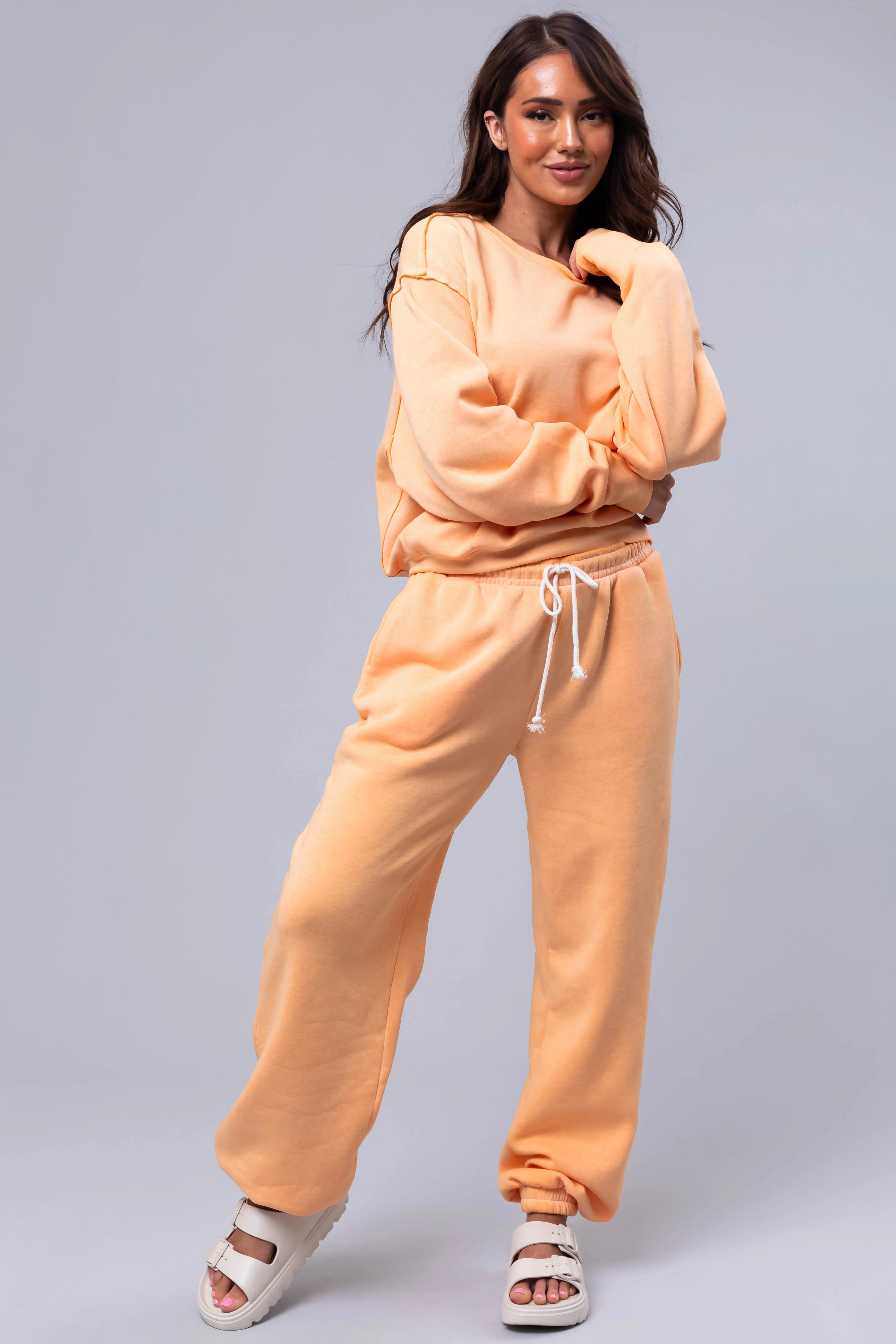 Bright Melon Washed High Rise Drawstring Joggers