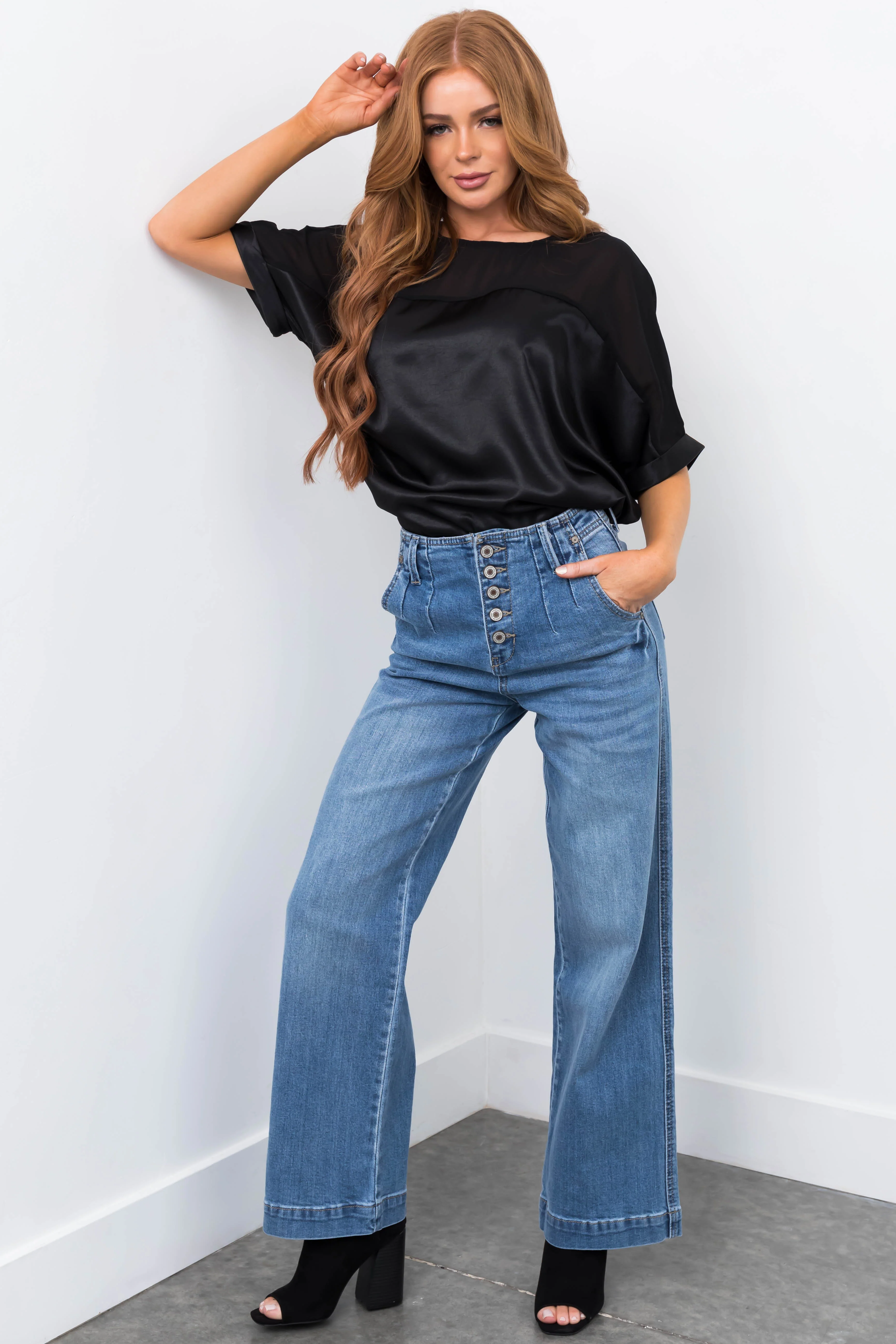 Sneak Peek Medium Wash High Rise Wide Jeans