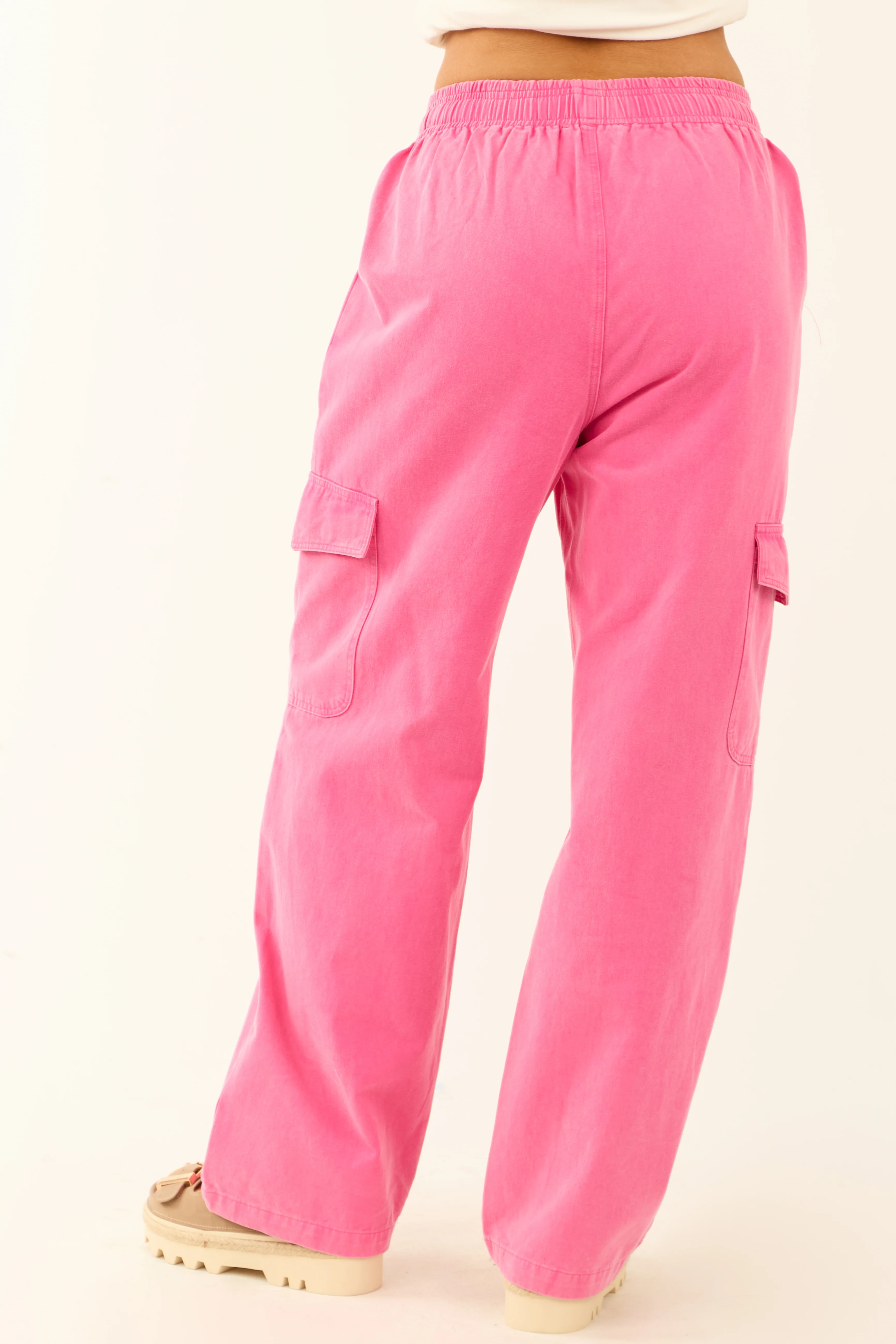 Fuchsia Washed Denim Wide Leg Cargo Pants
