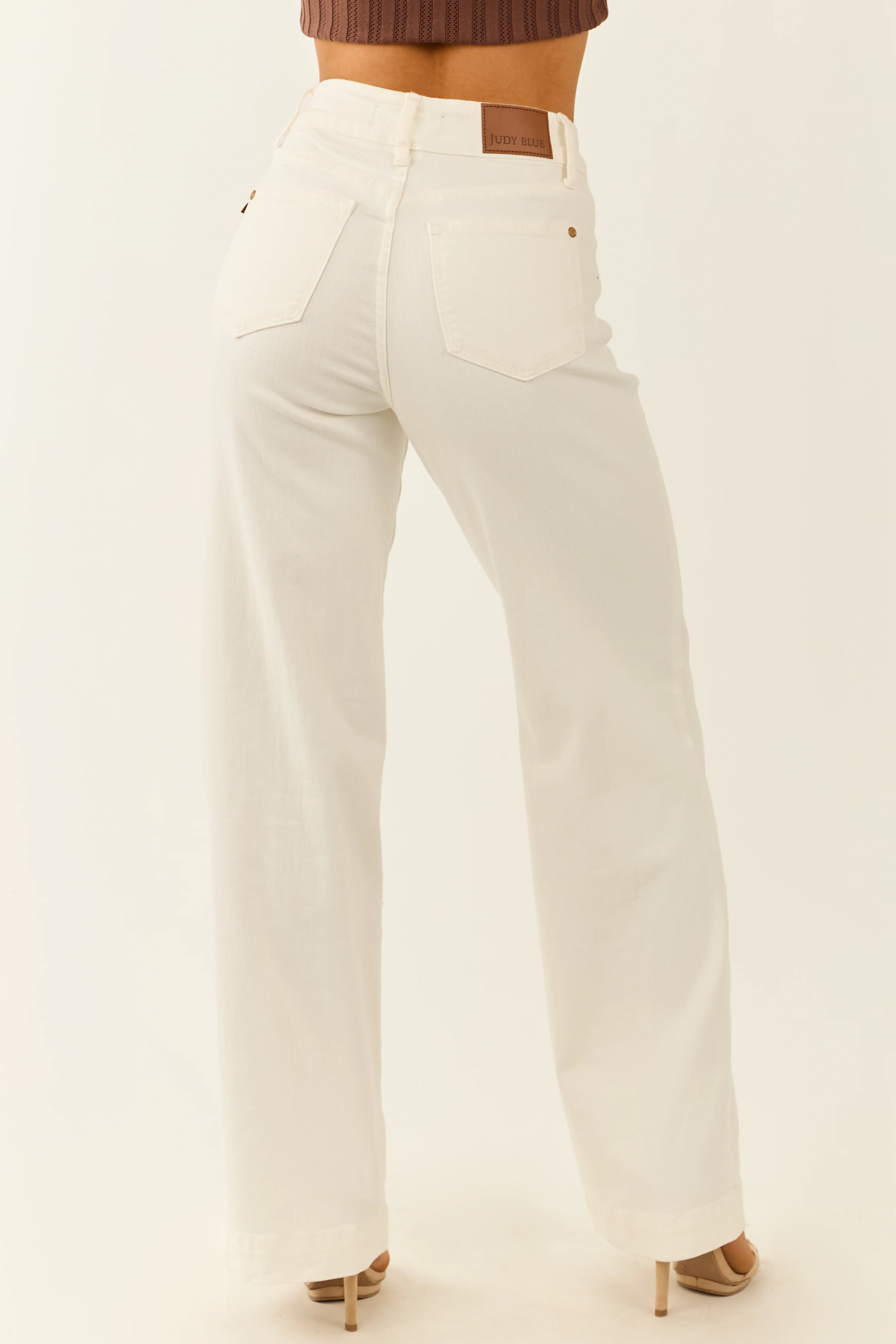 Judy Blue White Stretchy Wide Leg Denim Jeans