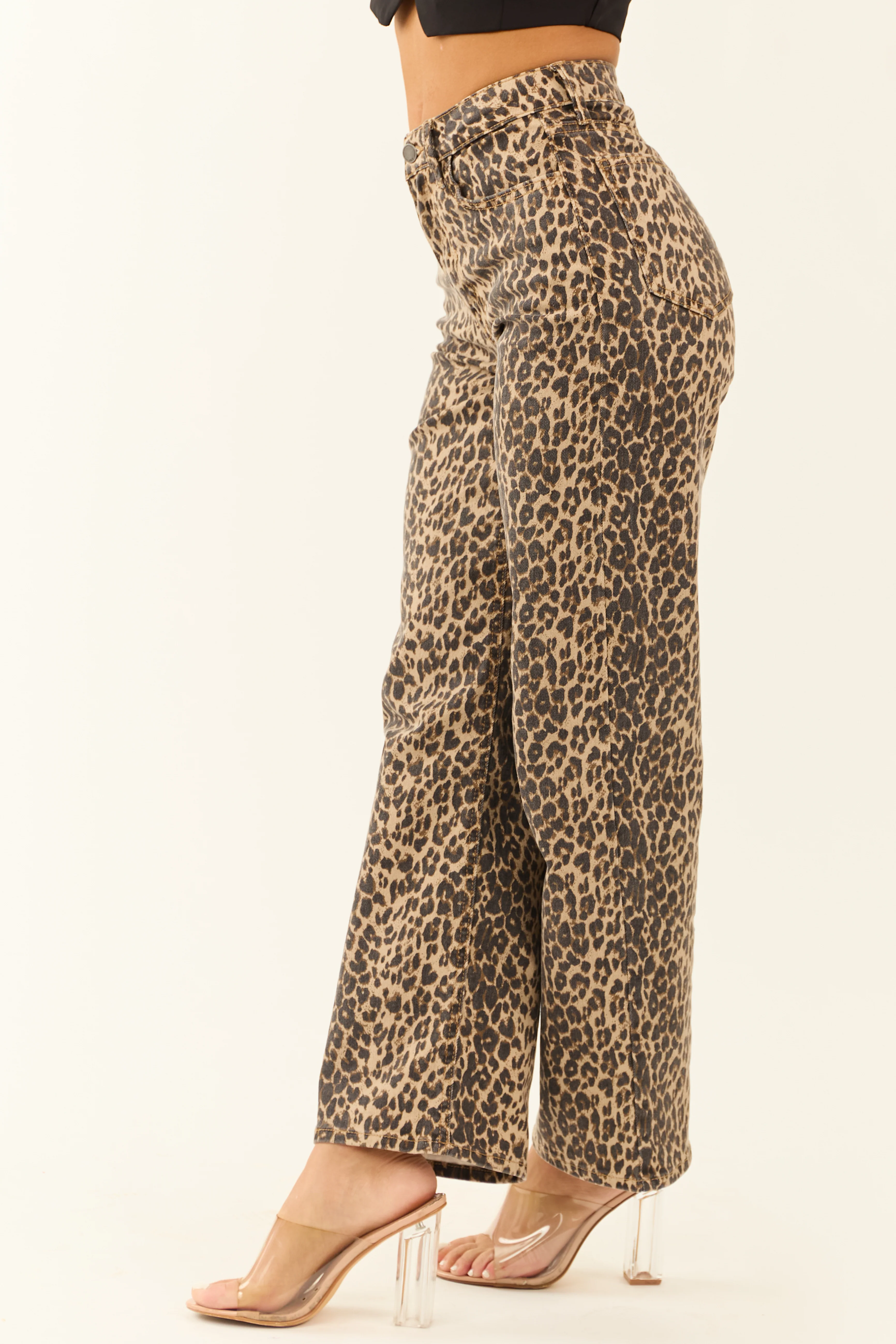 Oatmeal Leopard Stretchy Straight Leg Jeans