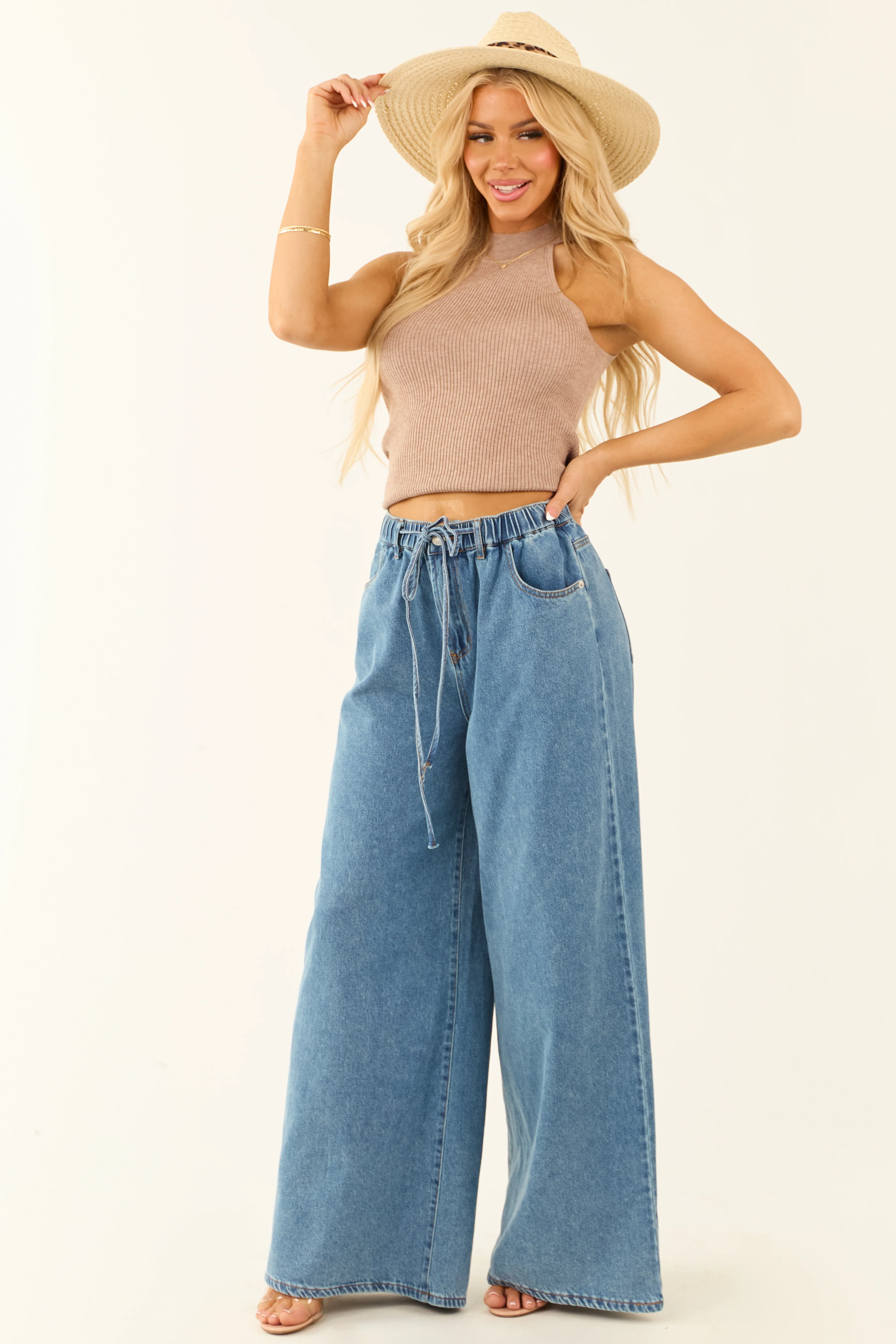Flying Tomato Medium Wash Super Wide Leg Denim Pants