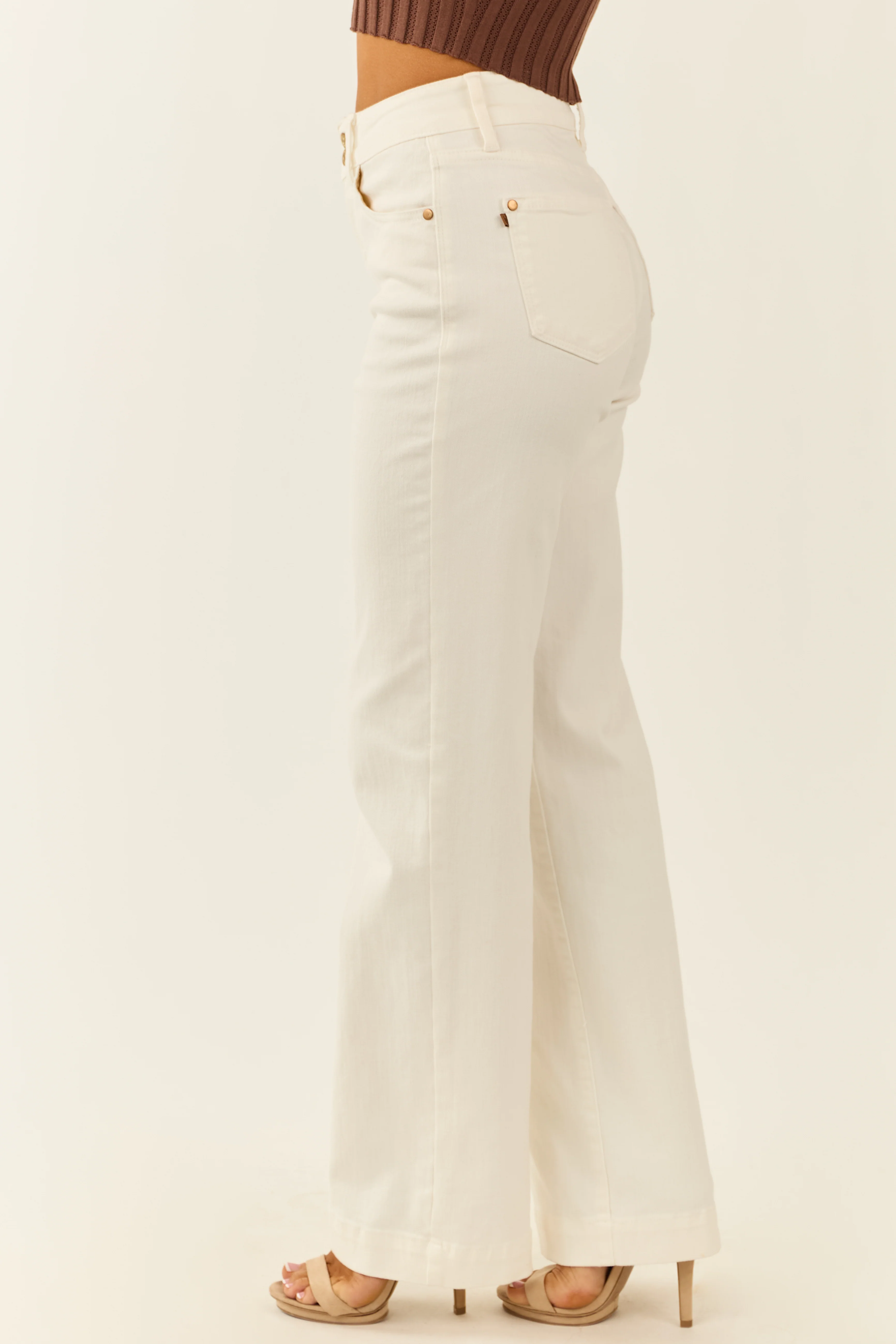 Risen White Tummy Control Wide Leg High Rise Jeans