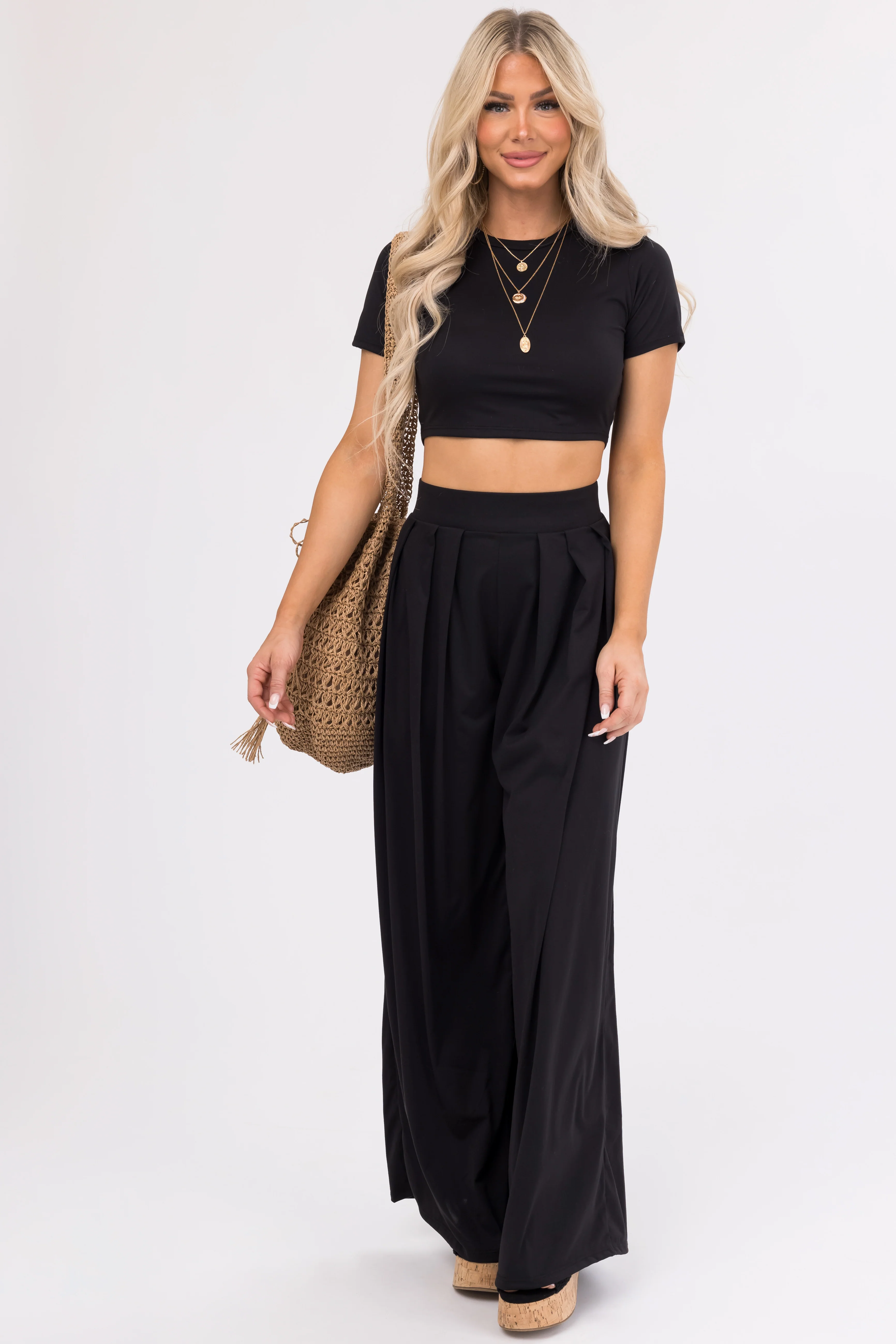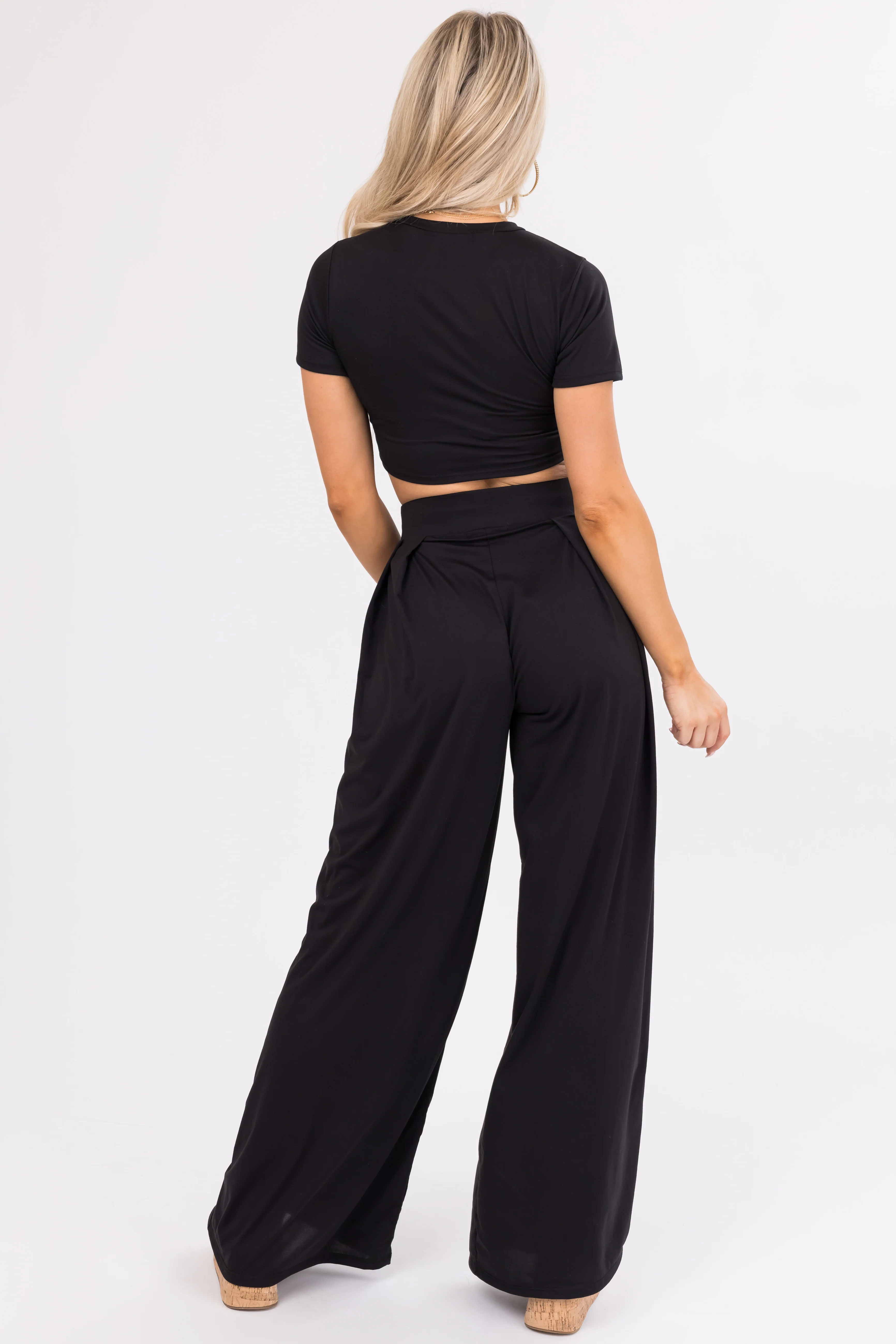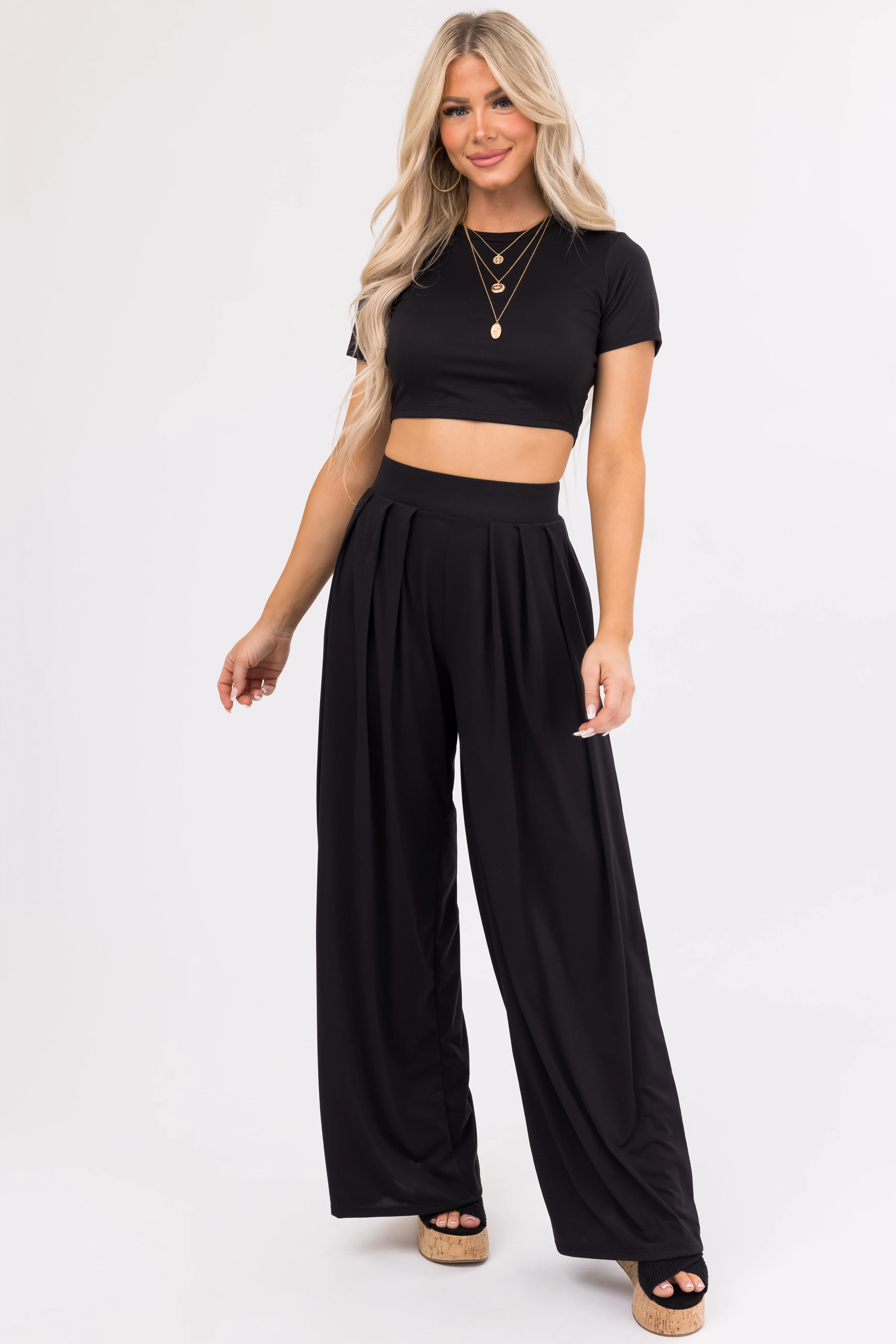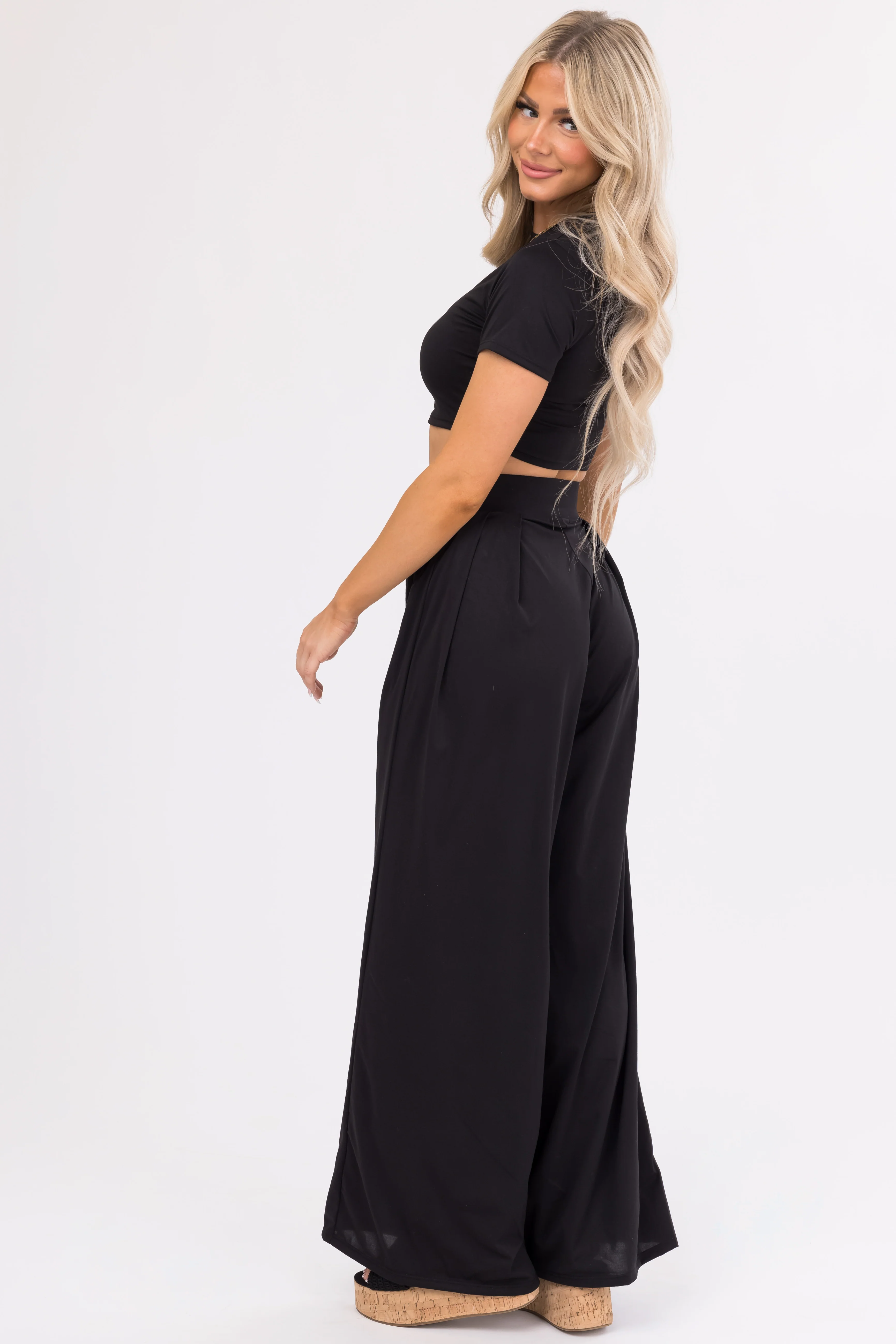 Black Wide Leg Pants with Crop Top Set