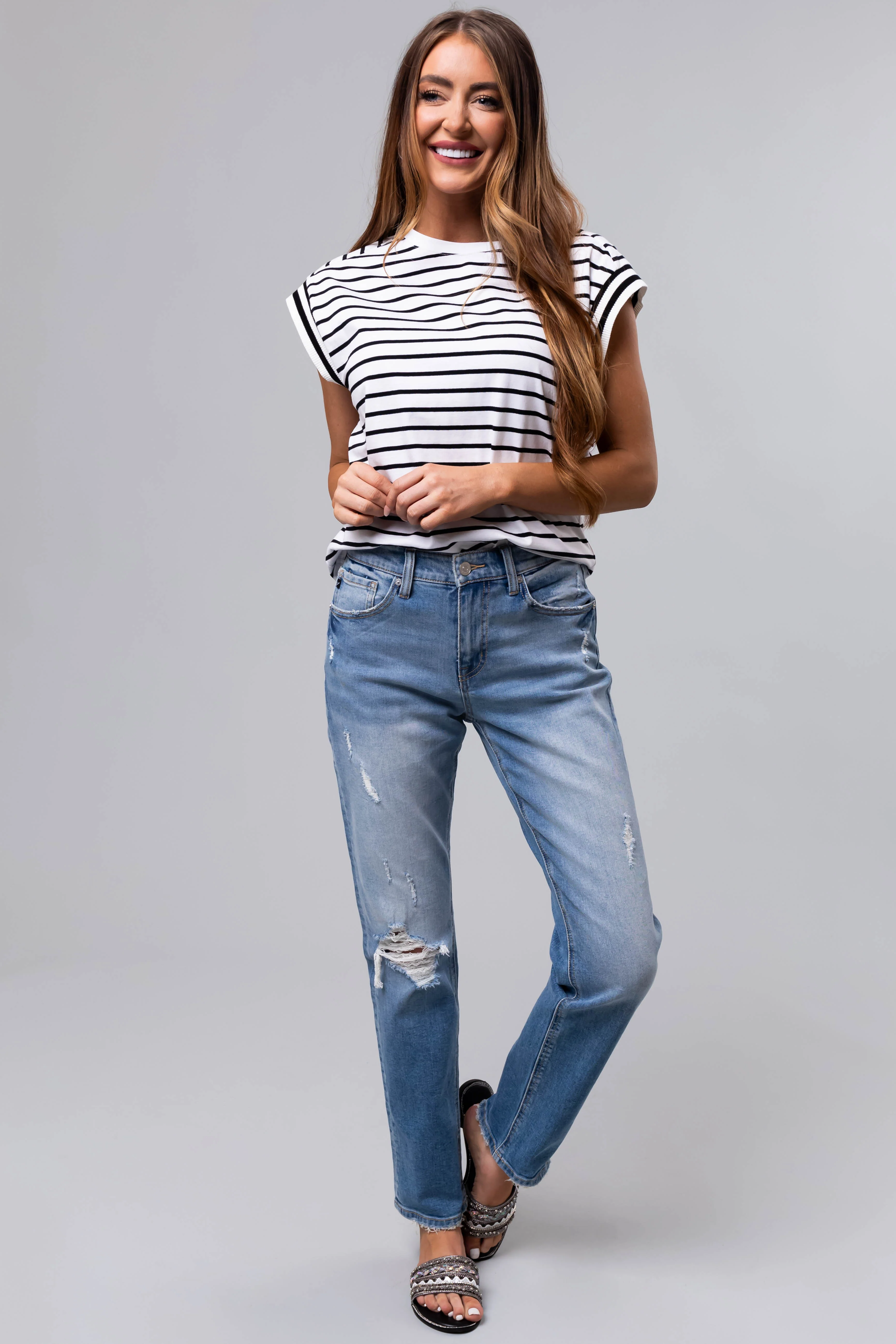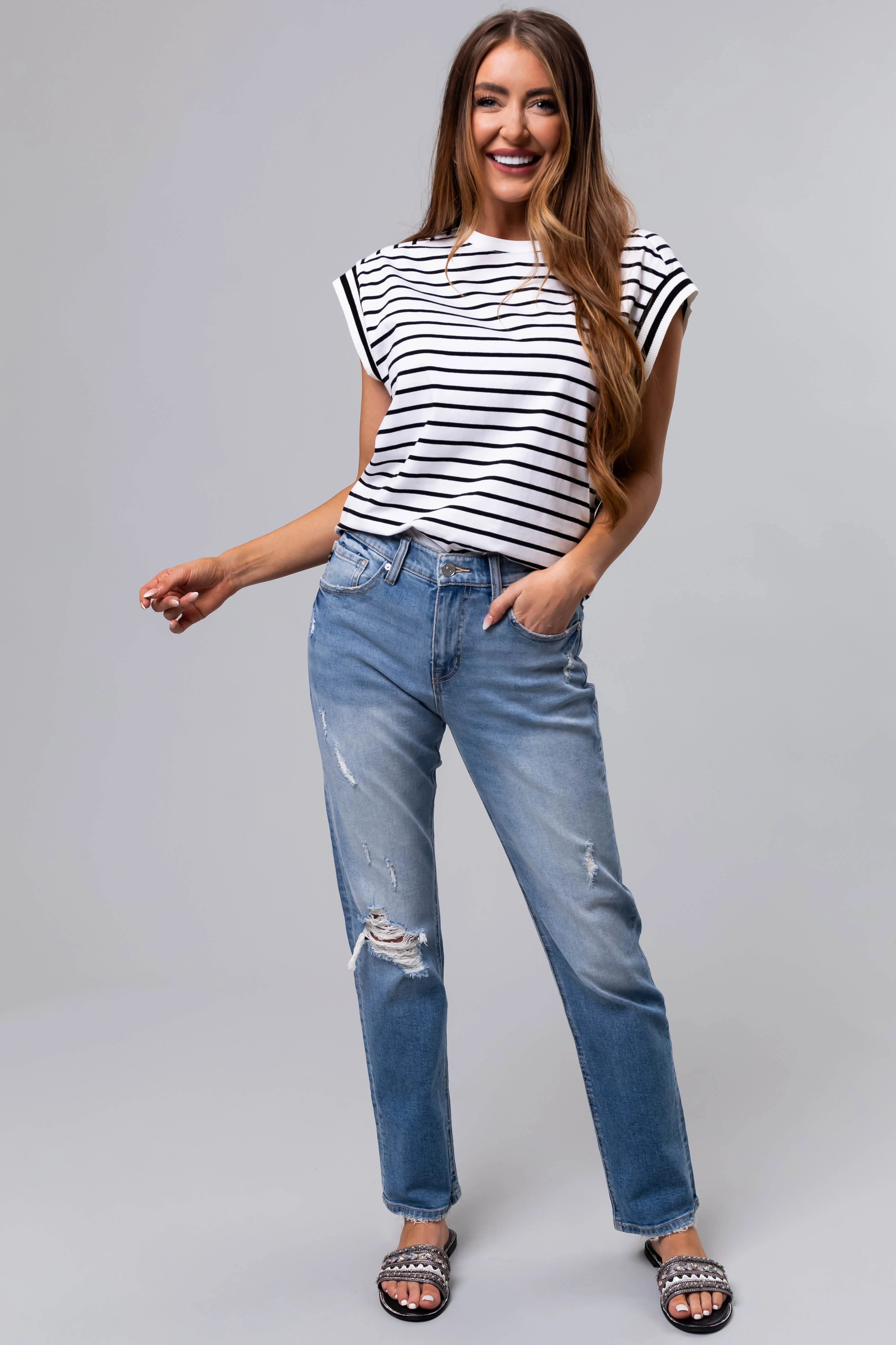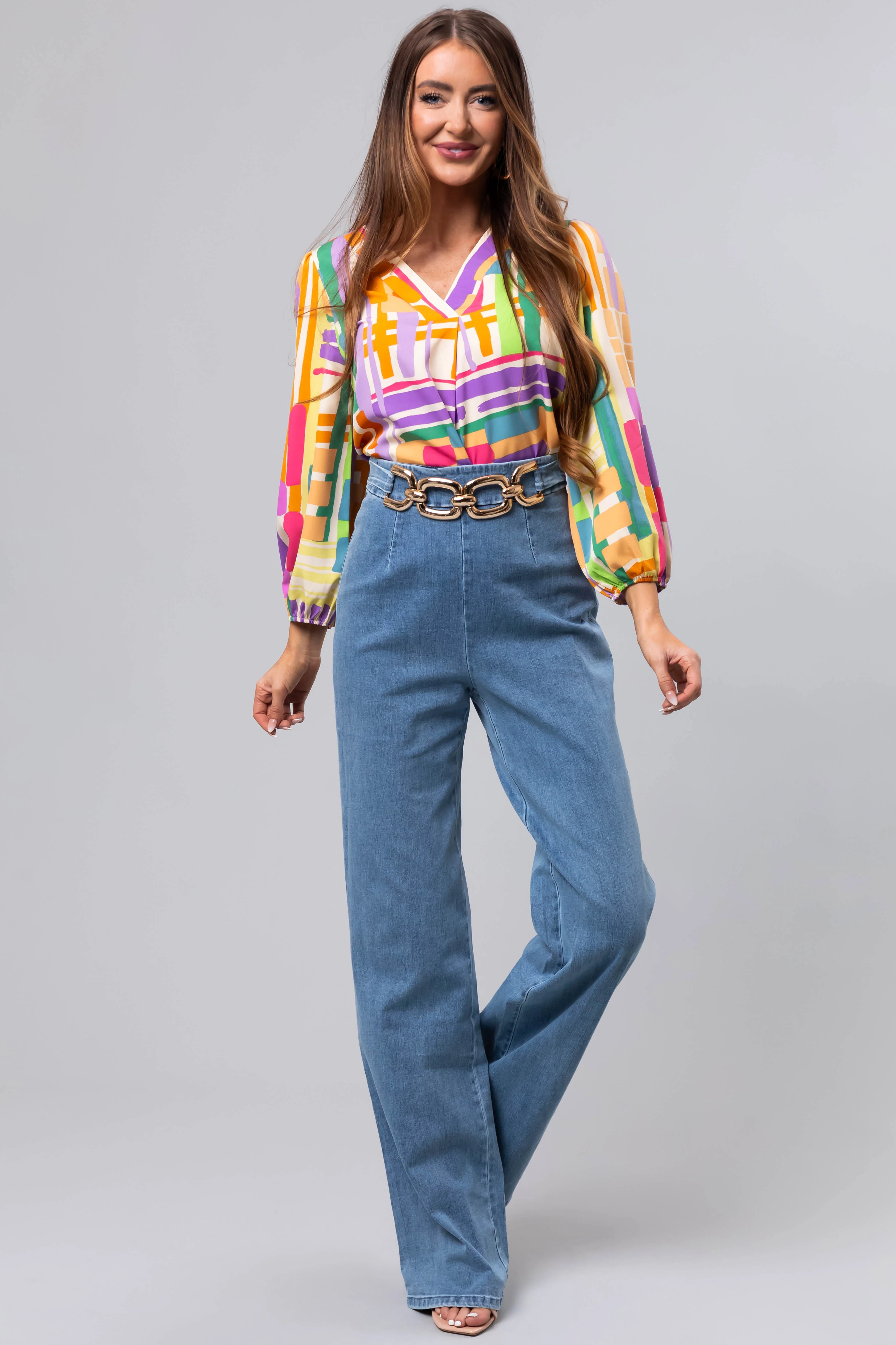 Medium Wash Denim Gold Belt High Waisted Jeans