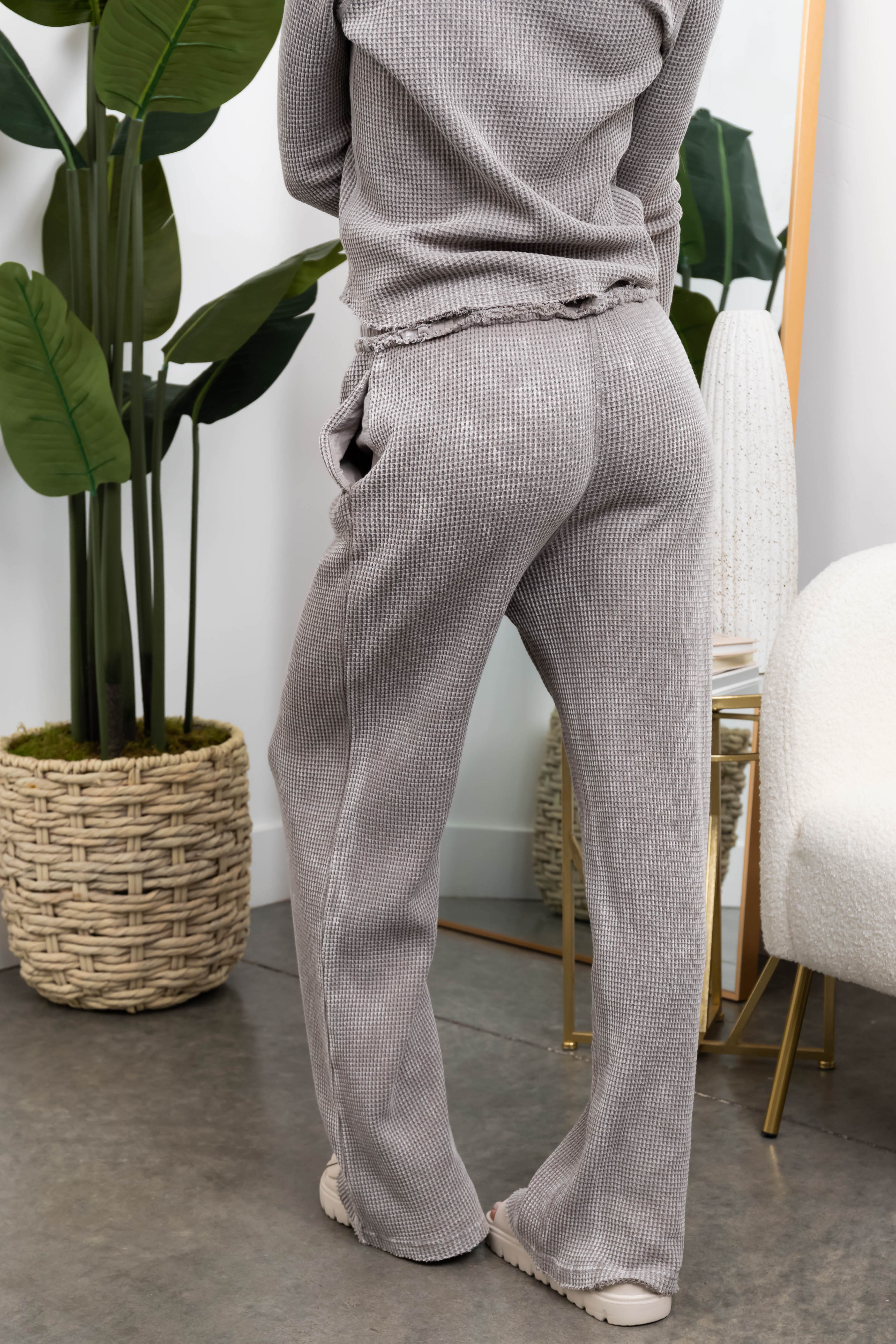 Steel Mineral Wash Waffle Knit Pants