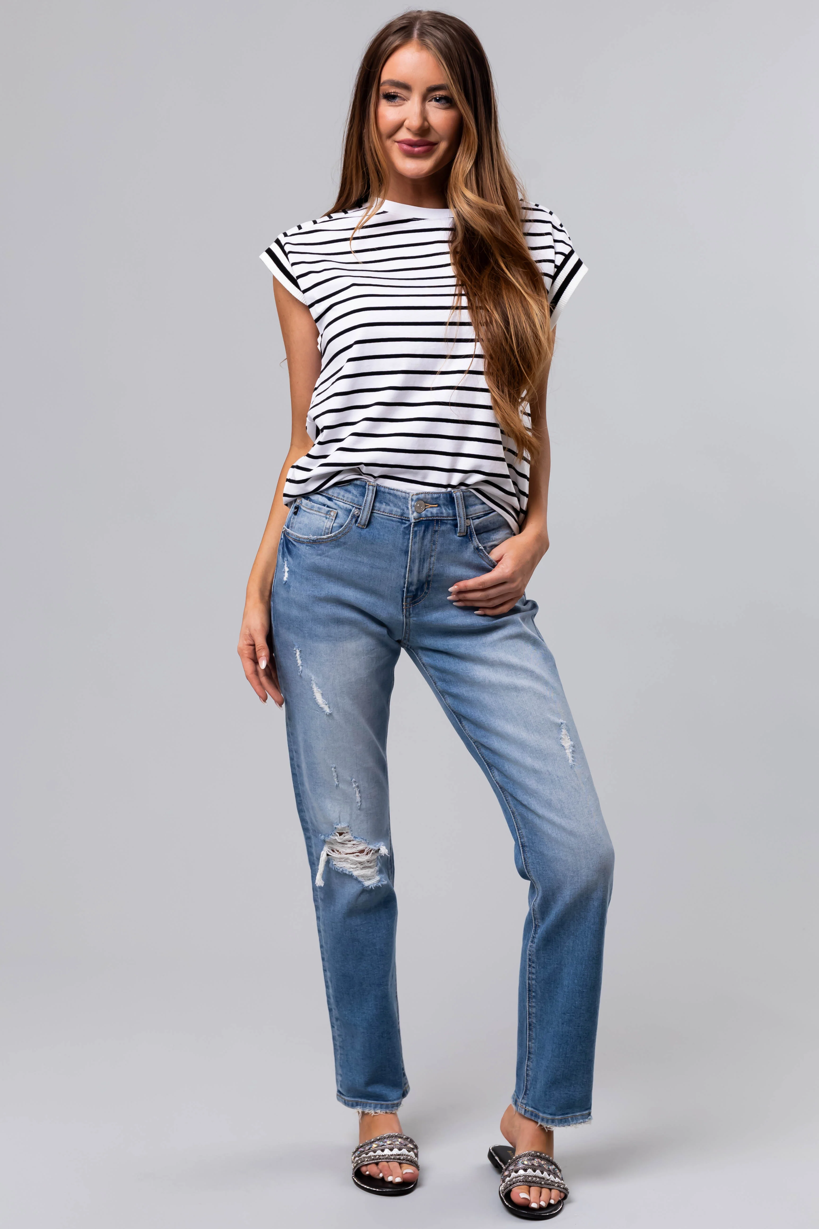 KanCan Medium Wash Straight Leg High Rise Jeans