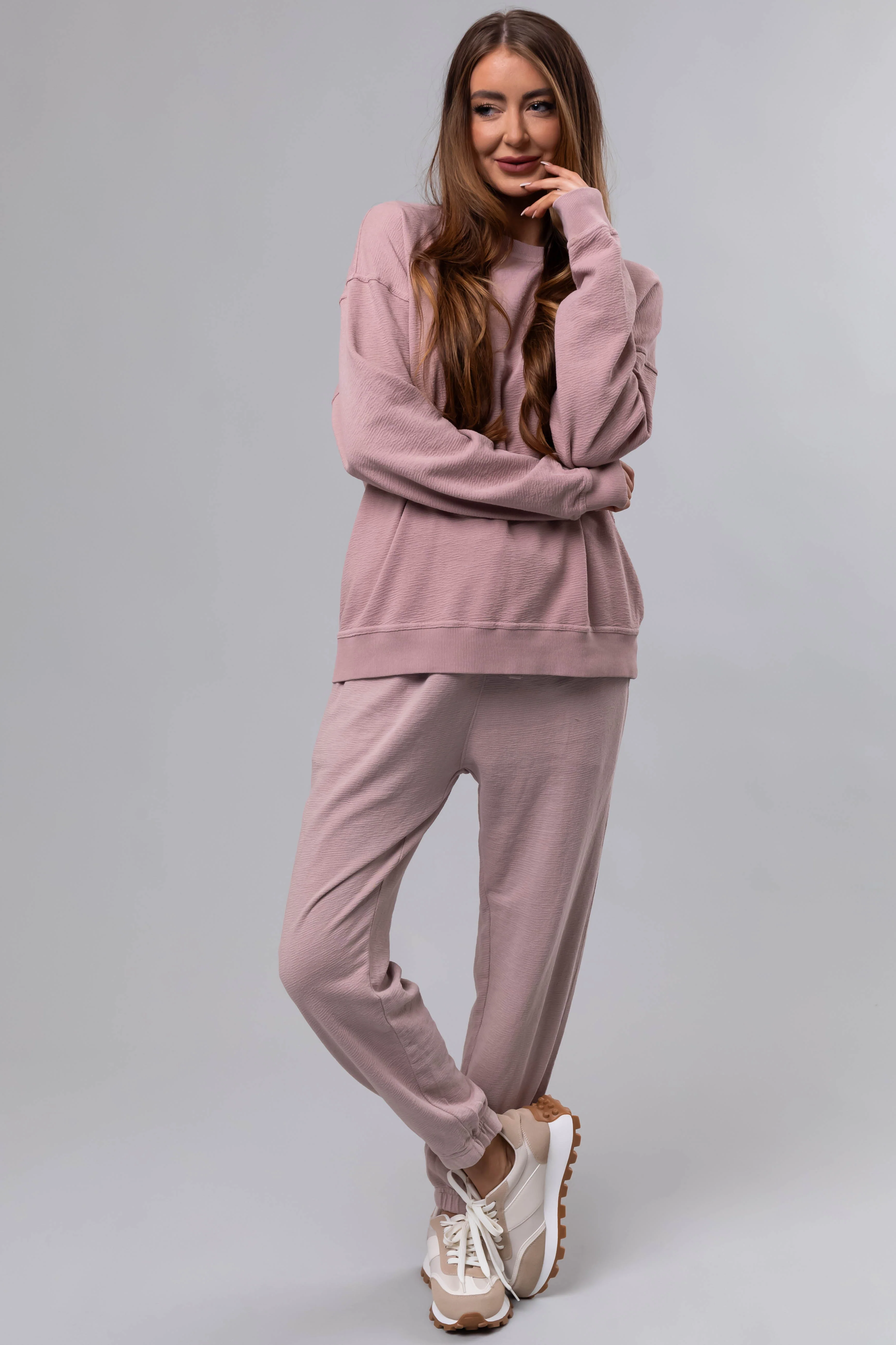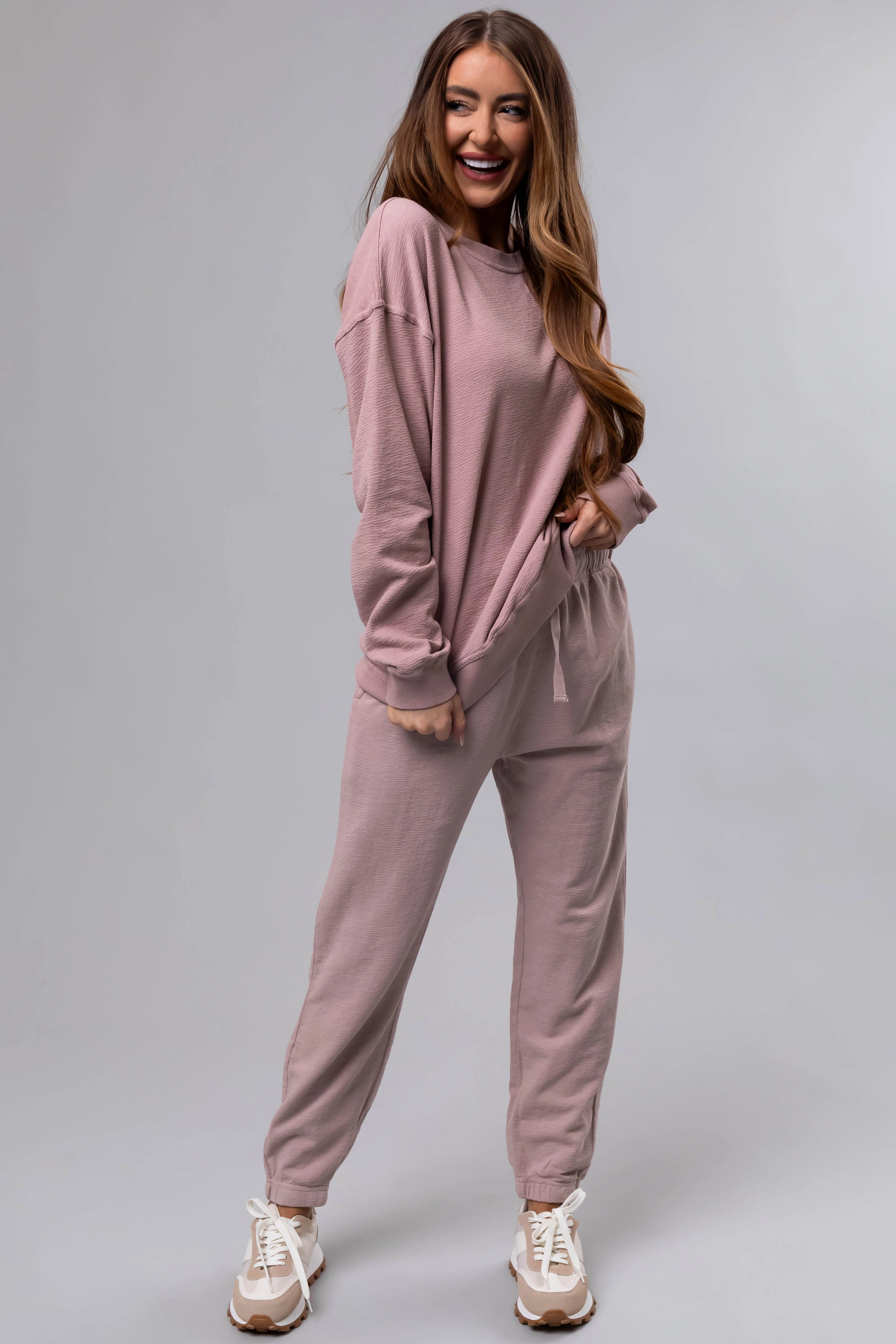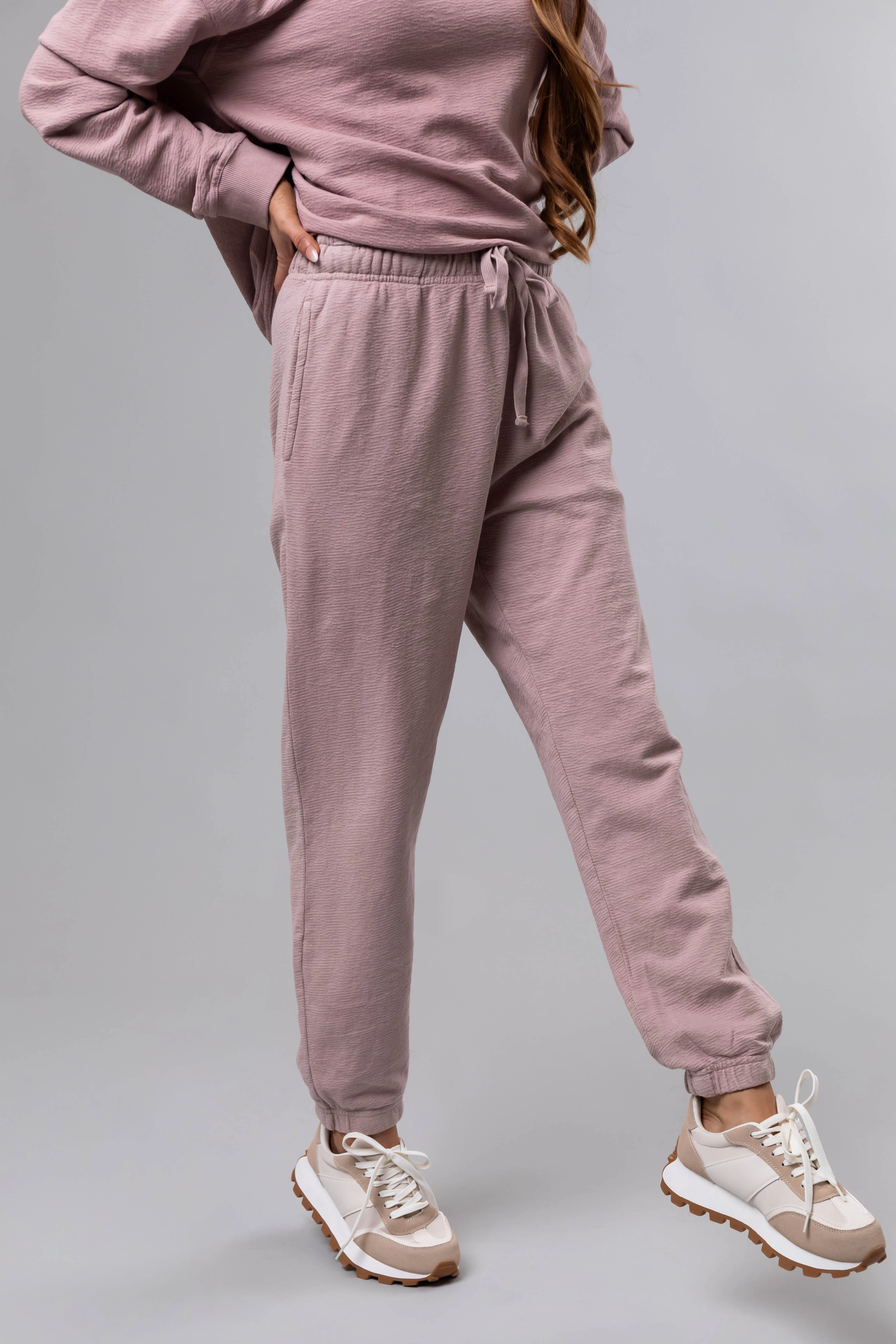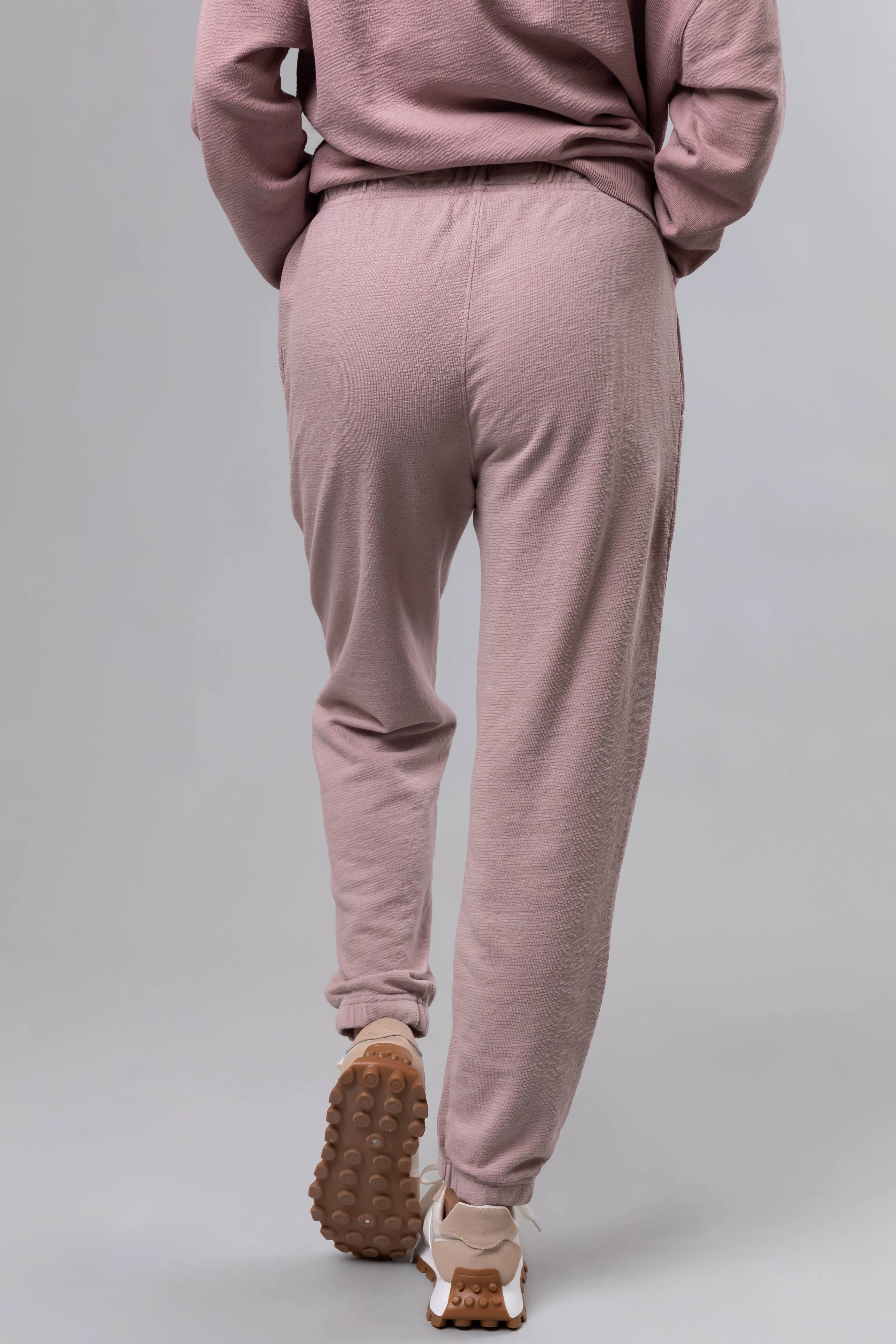 Dusty Blush Textured Knit Drawstring Joggers