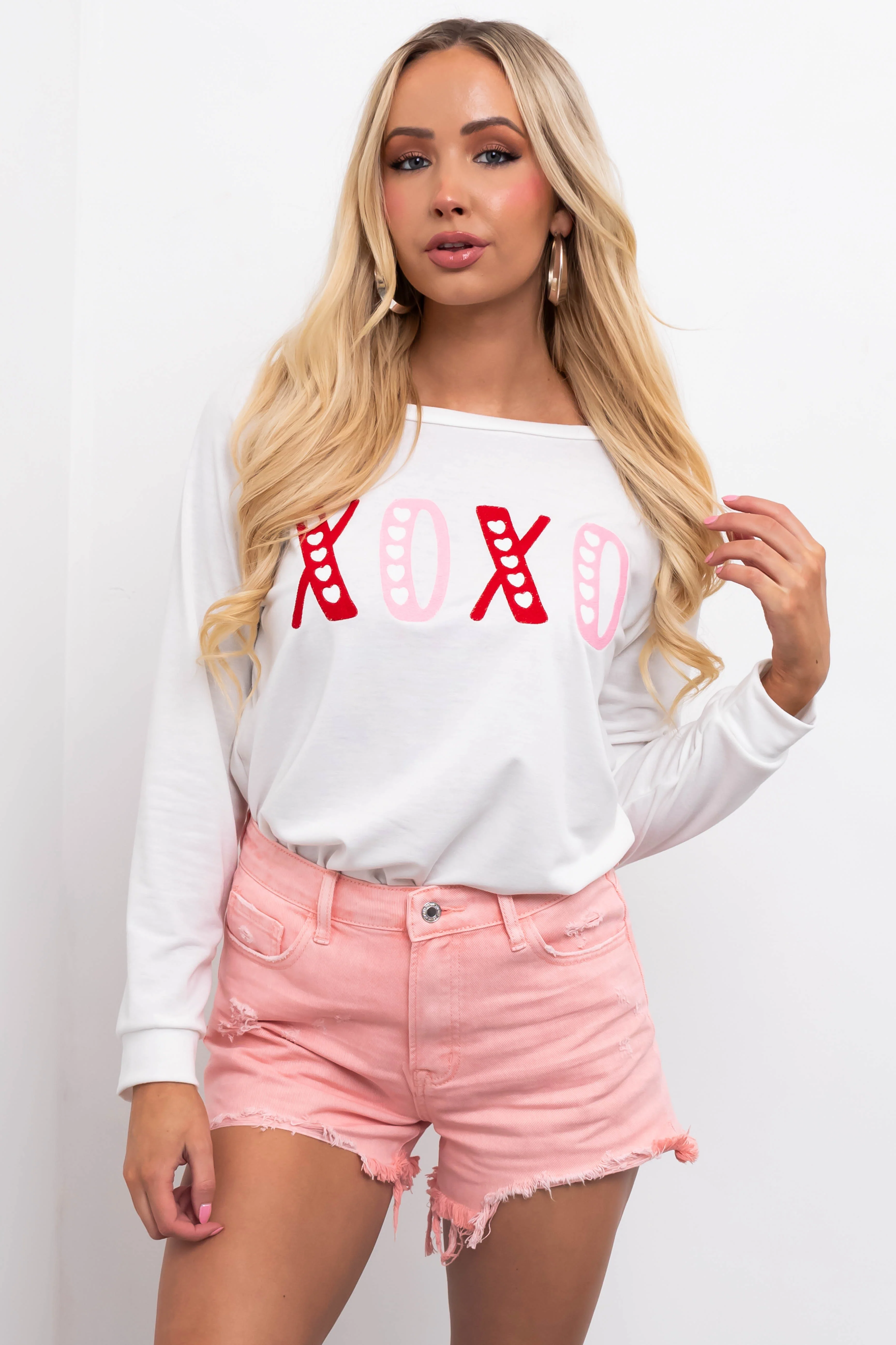 KanCan Off White High Rise Frayed Shorts