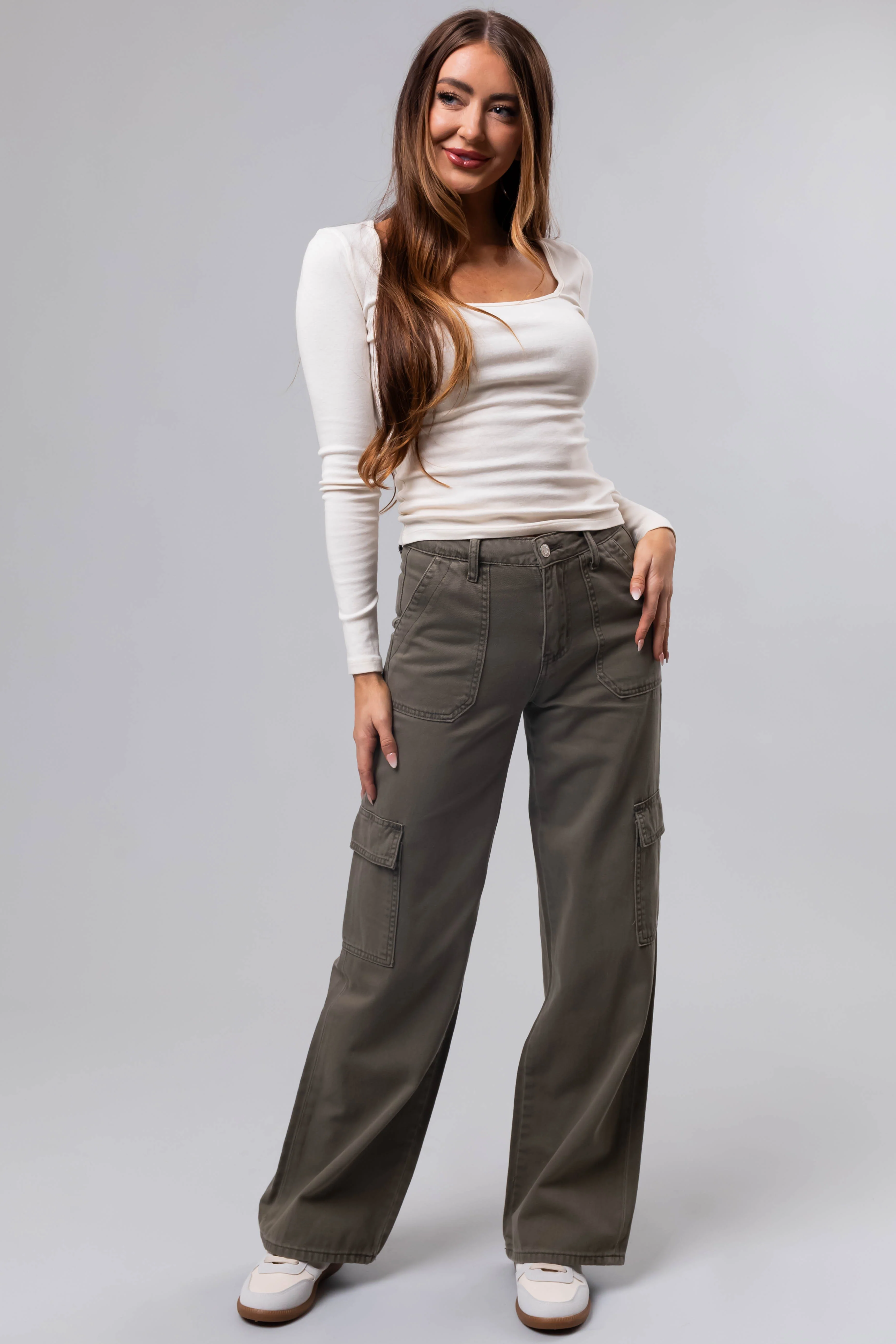 Vervet Olive High Rise Cargo Wide Leg Jeans