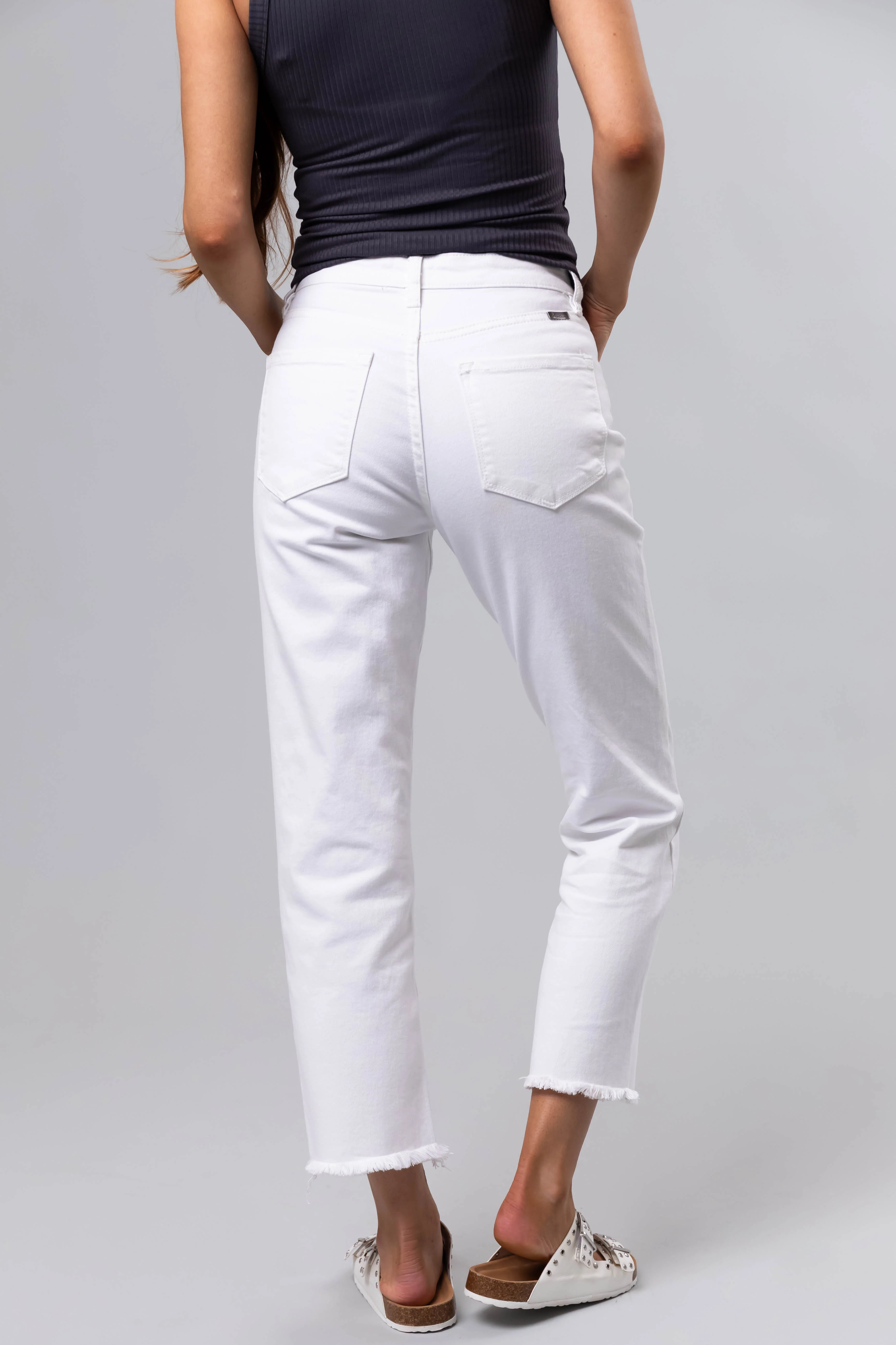 KanCan Off White Cropped Straight Leg Jeans
