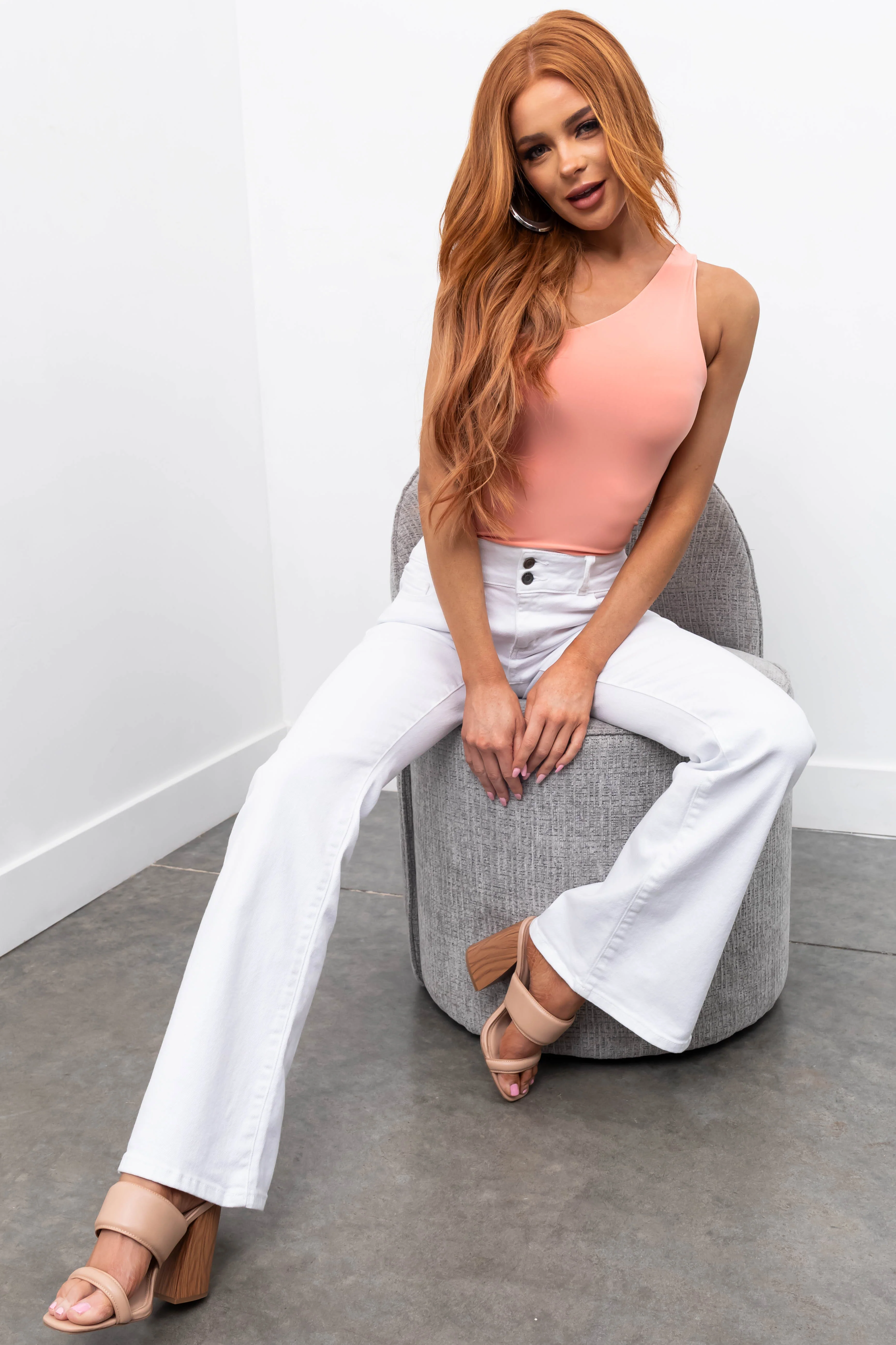 Cello White Low Rise Flare Leg Two Button Jeans