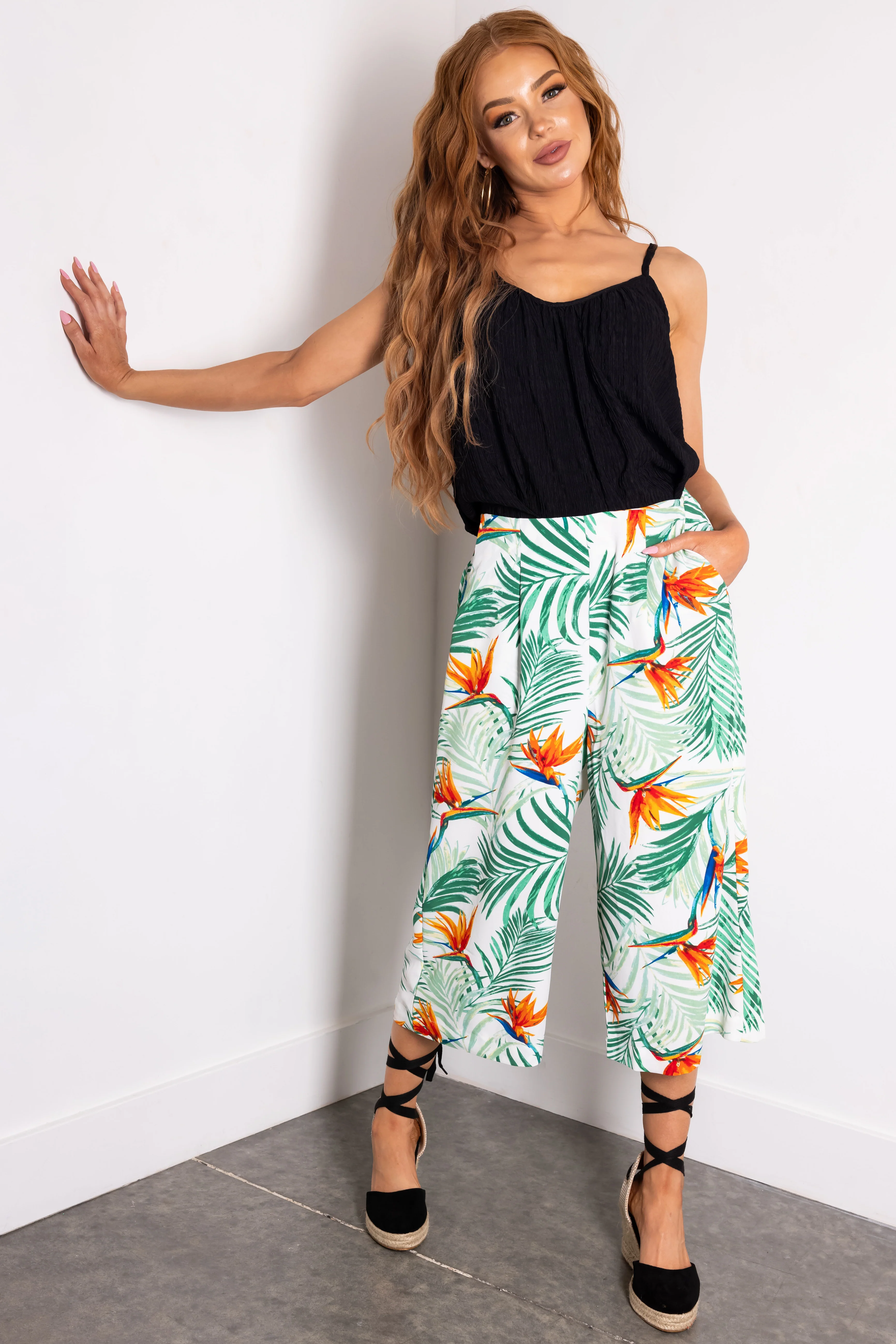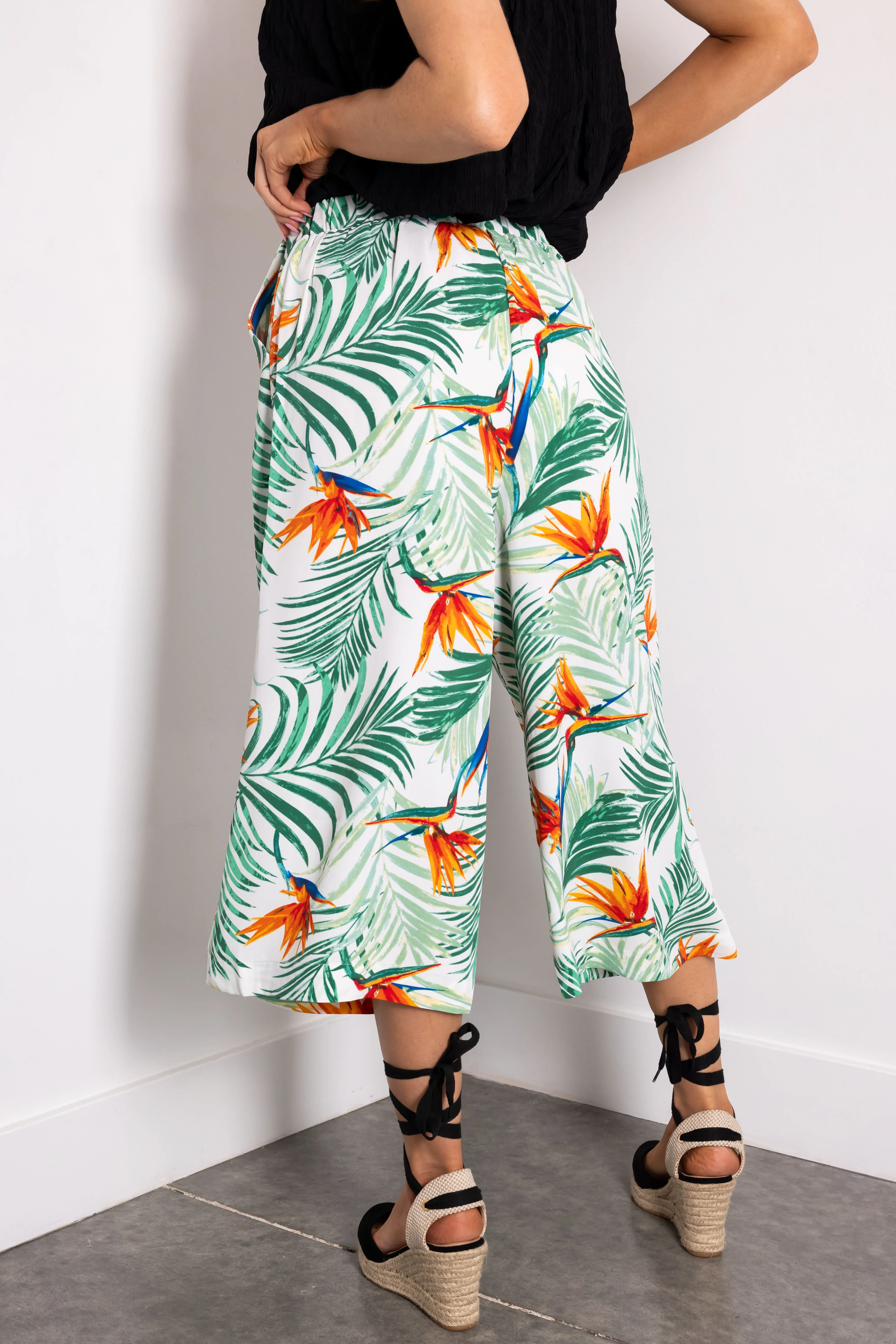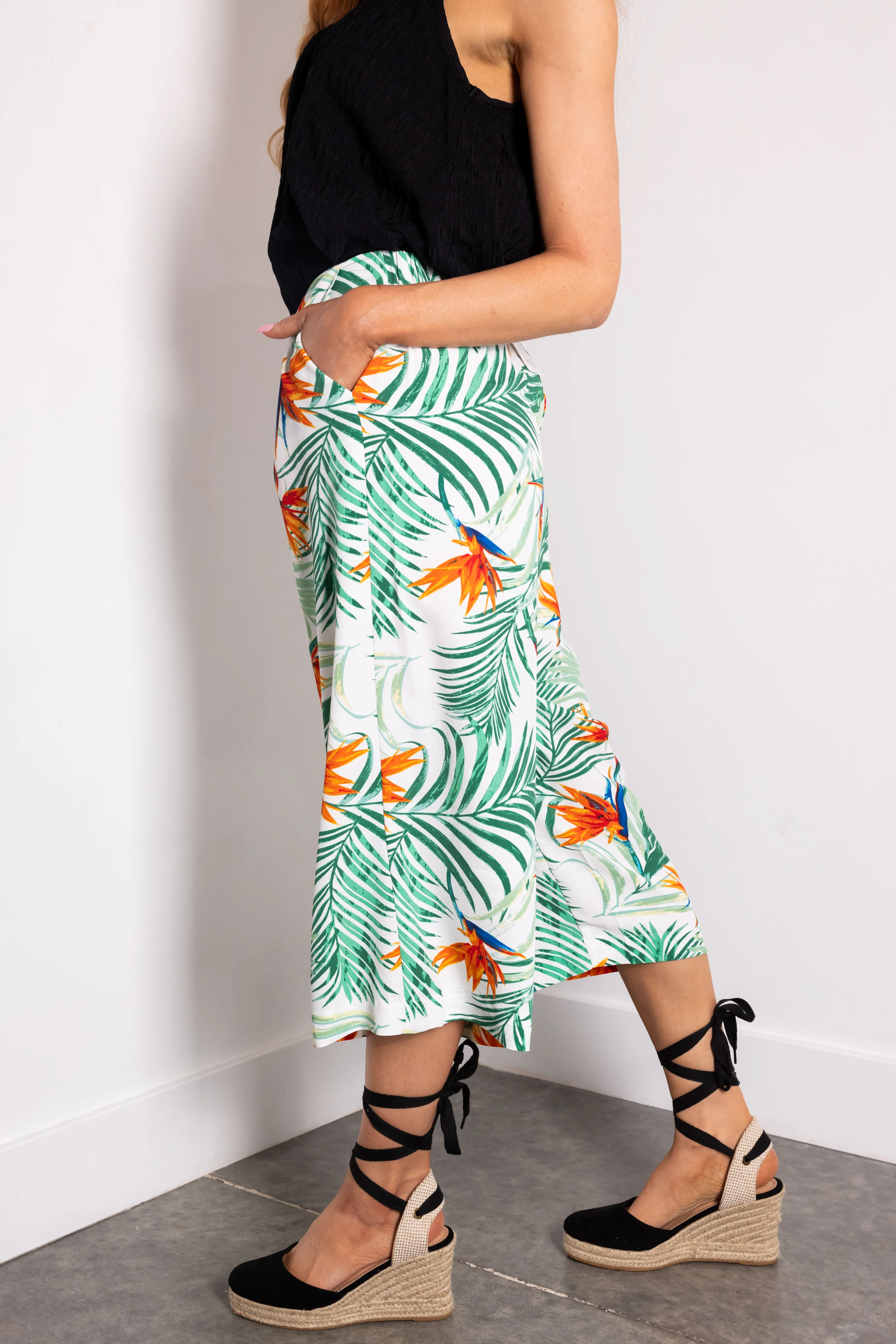 Jade Tropical Print Cropped Wide Leg Pants