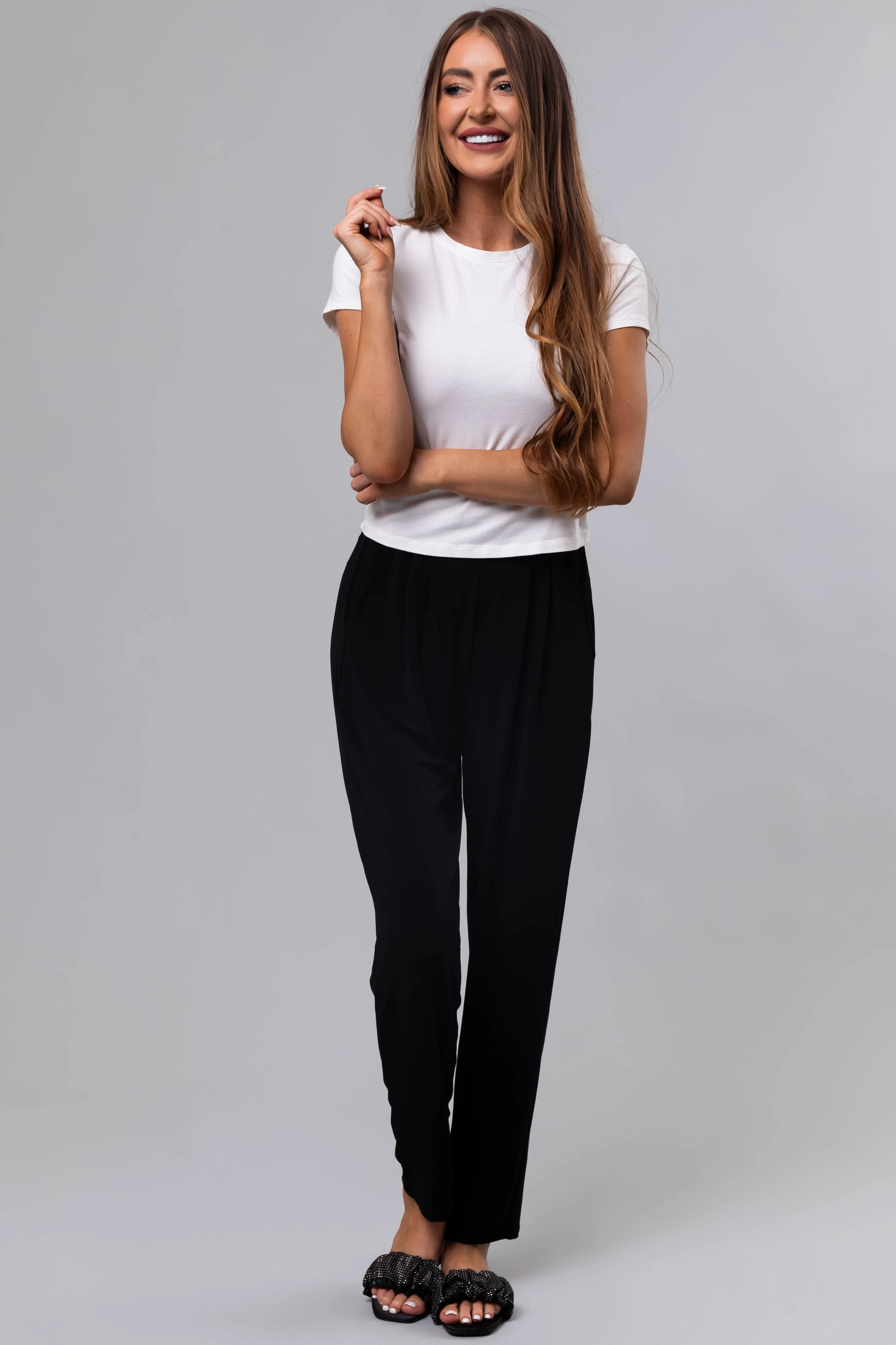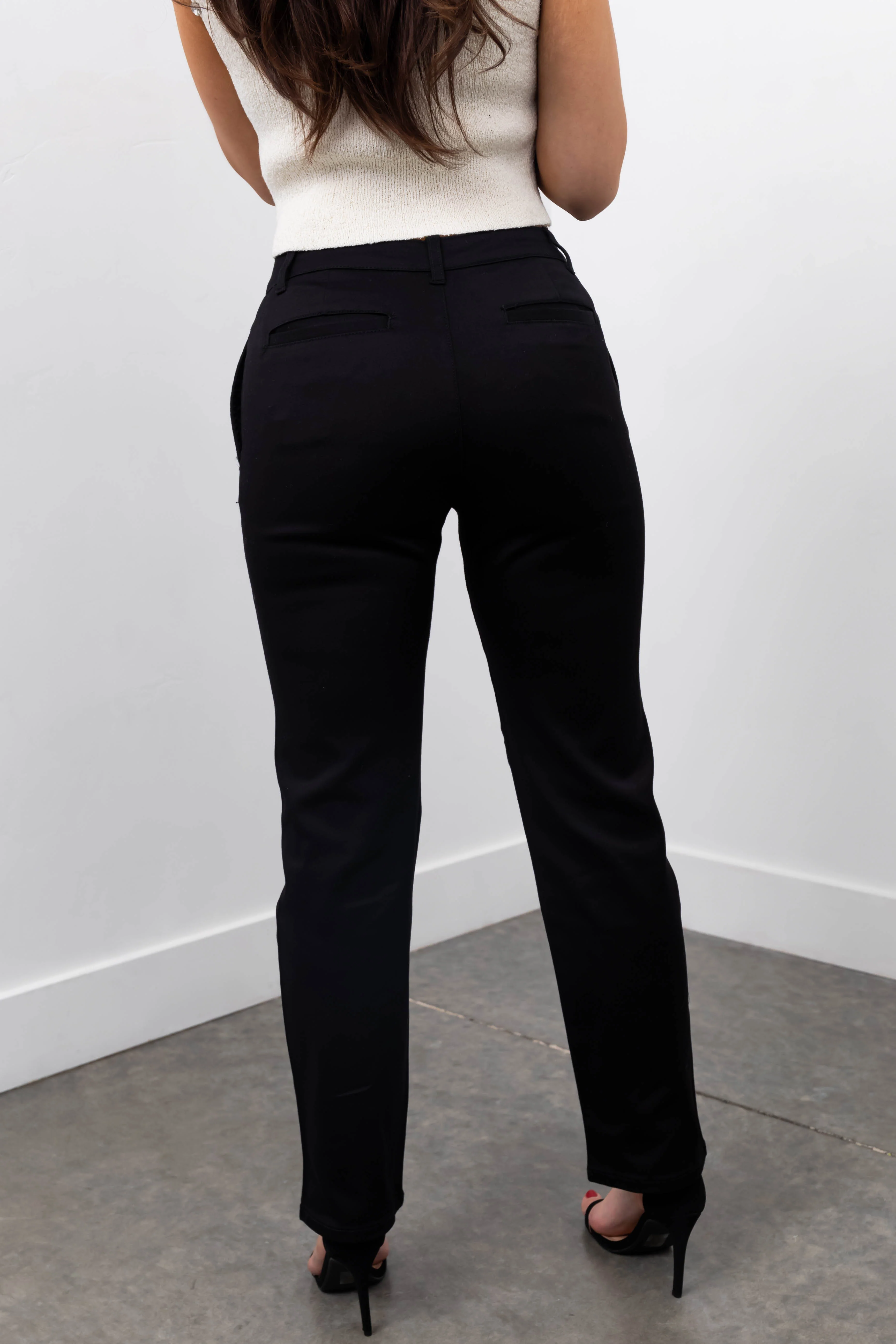 Black High Waist Pleated Straight Leg Pants