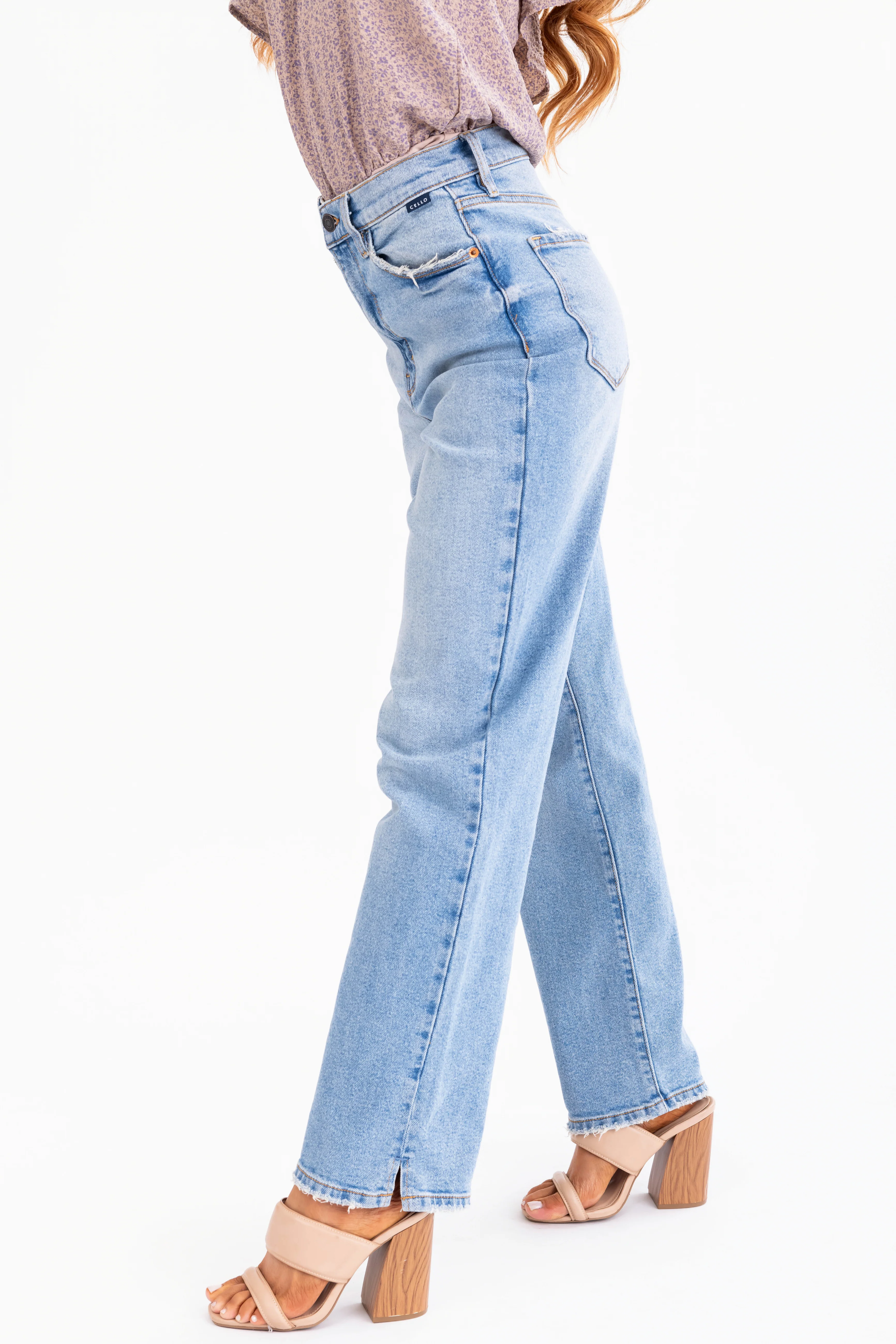 Cello Super High Rise Dad Jeans with Mini Slit