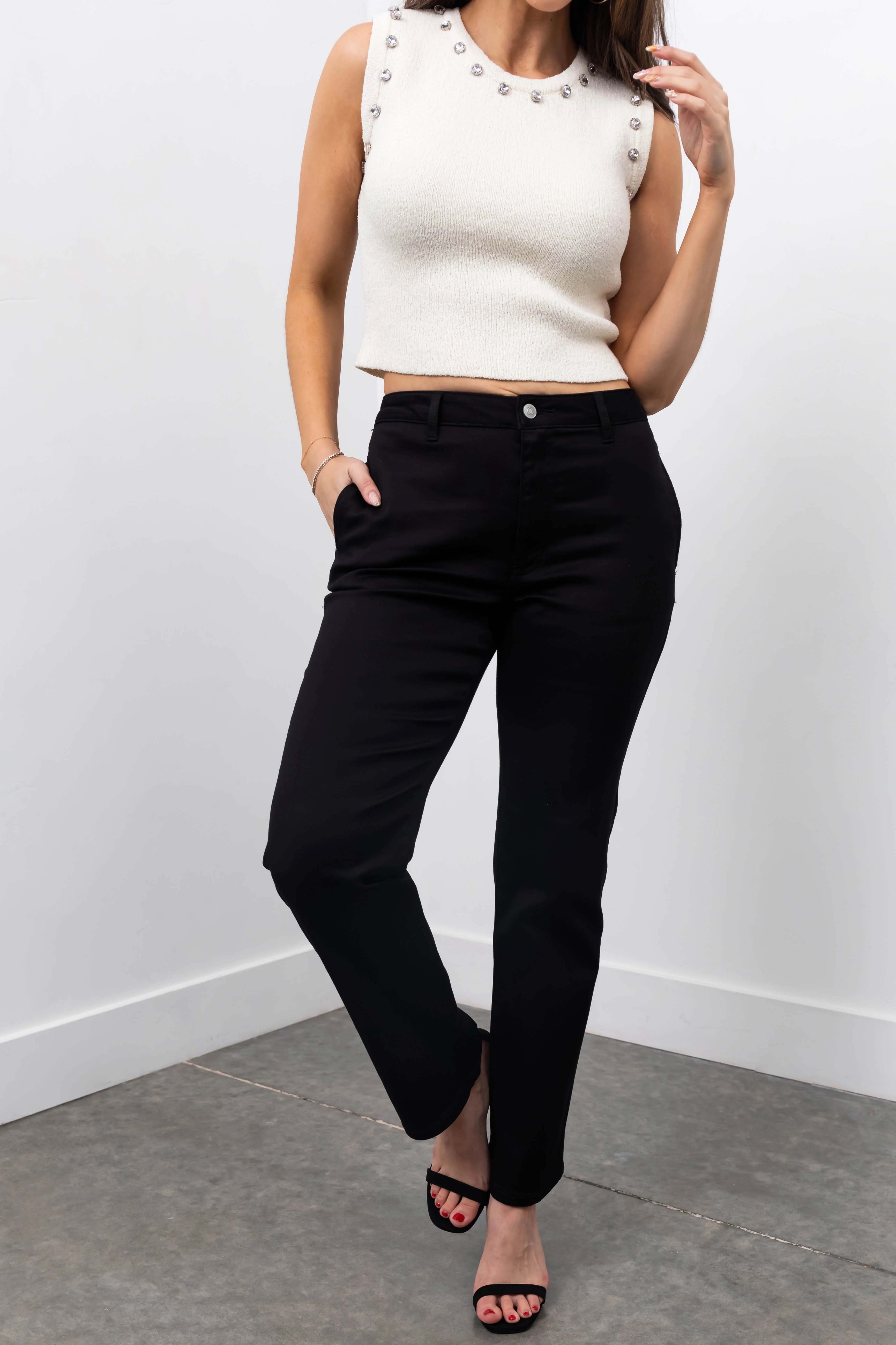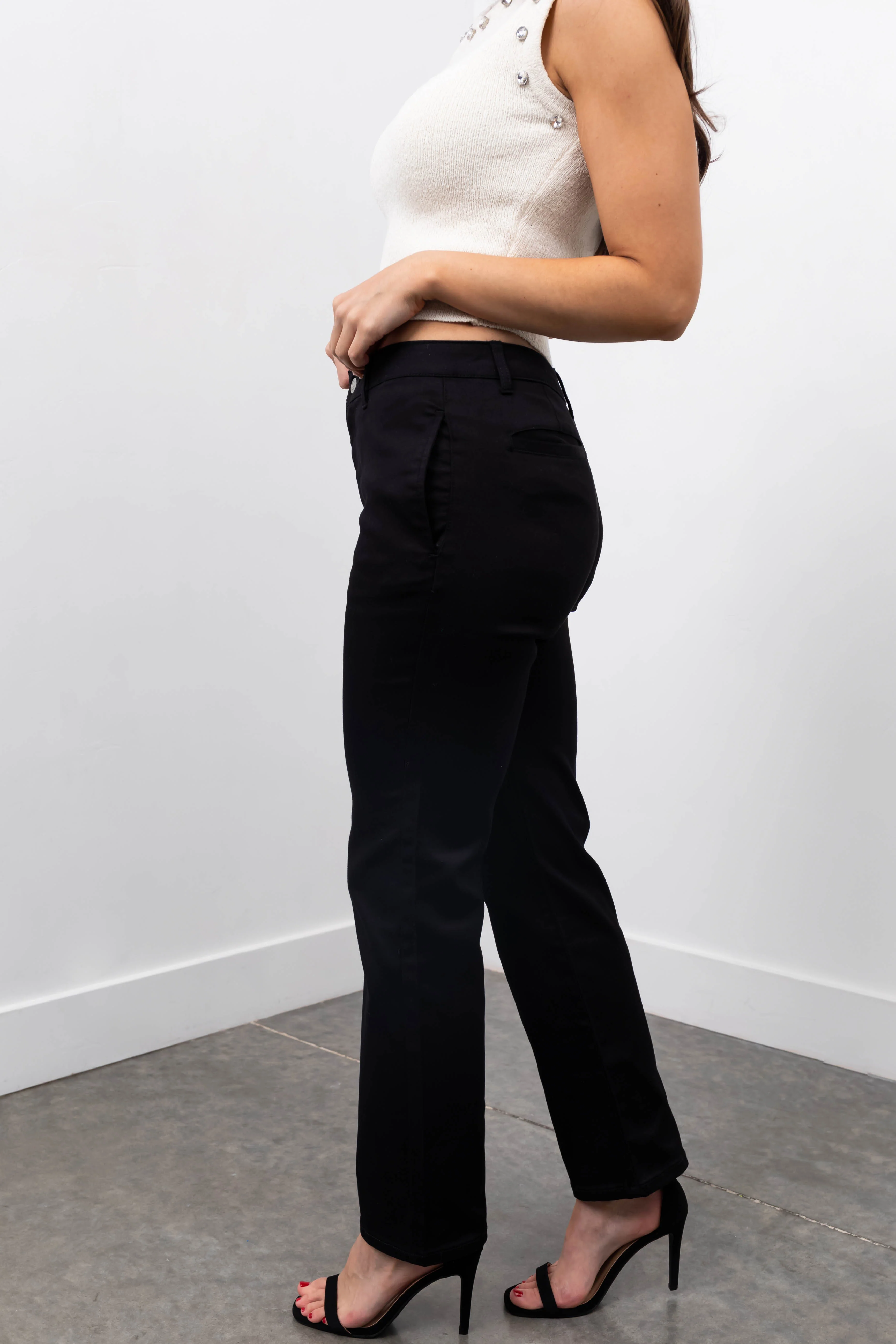 Black Straight Fit High Waisted Twill Jeans