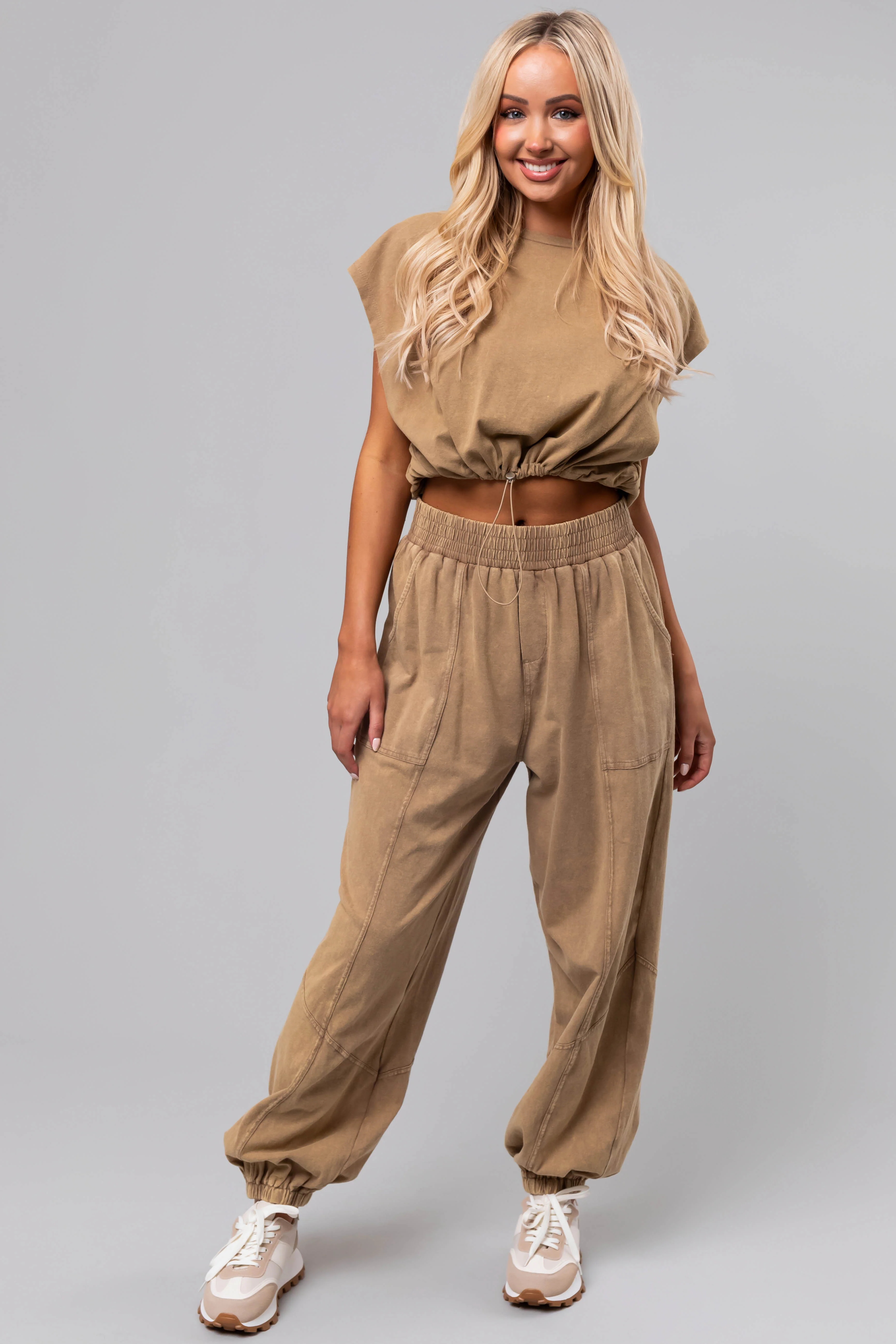 Peanut Mineral Wash Elastic Joggers