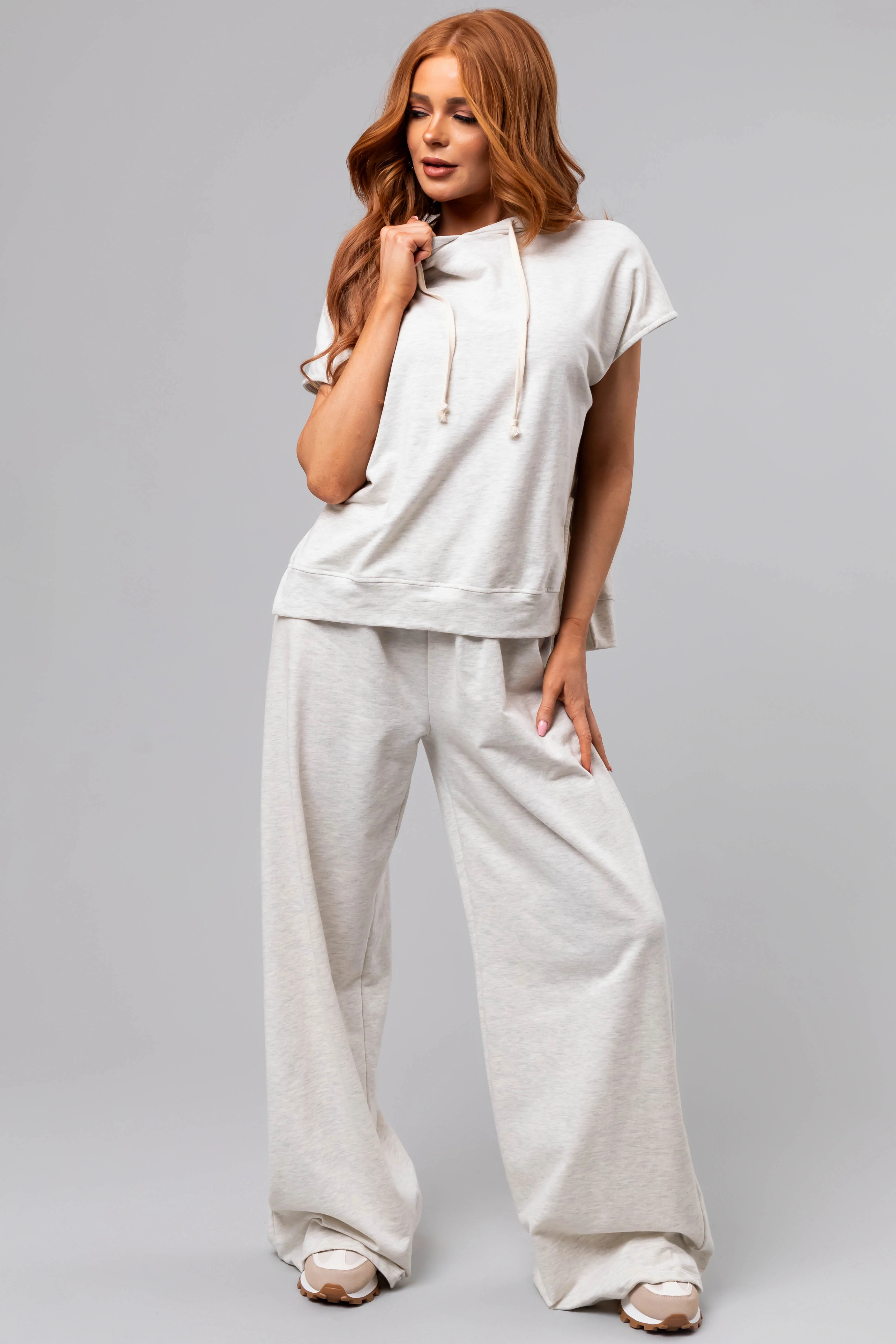 Coconut Short Sleeve Hooded Lounge Set
