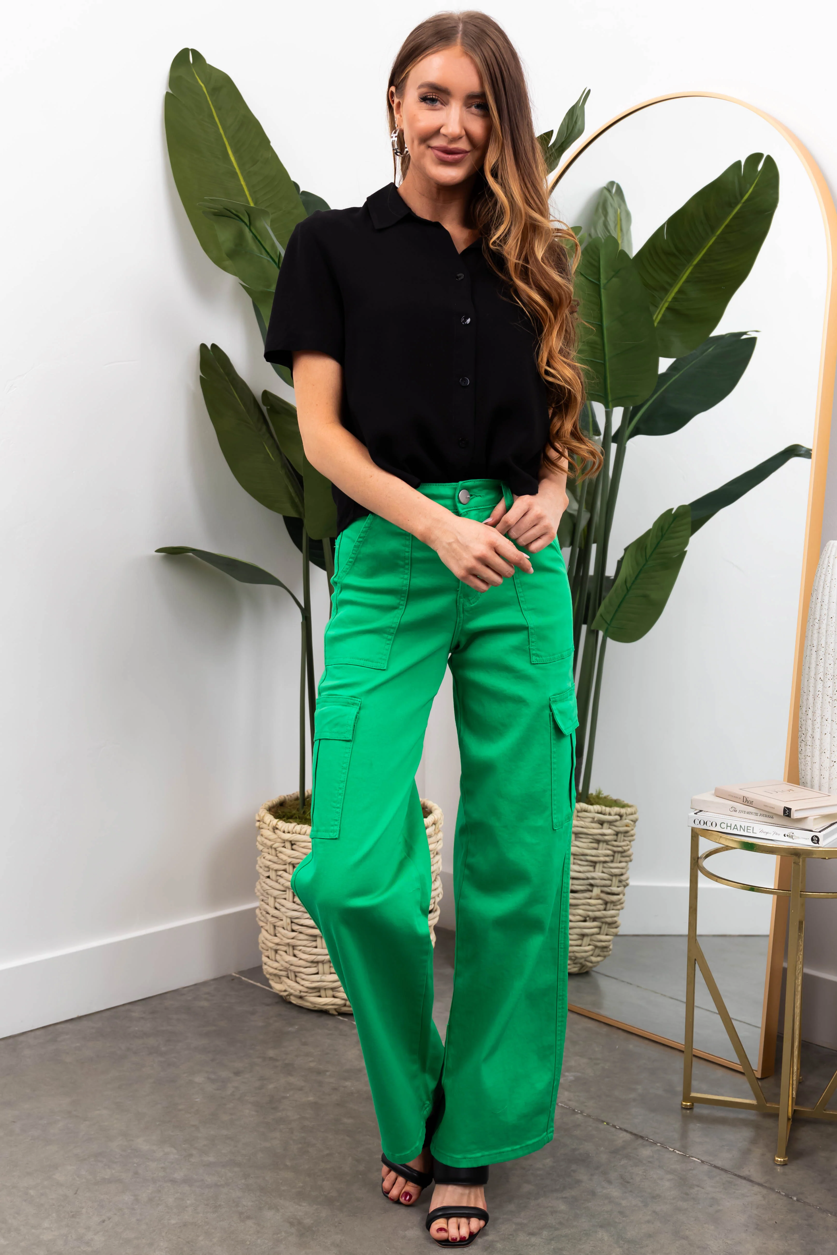 Denim Zone Kelly Green Super Stretchy Cargo Jeans